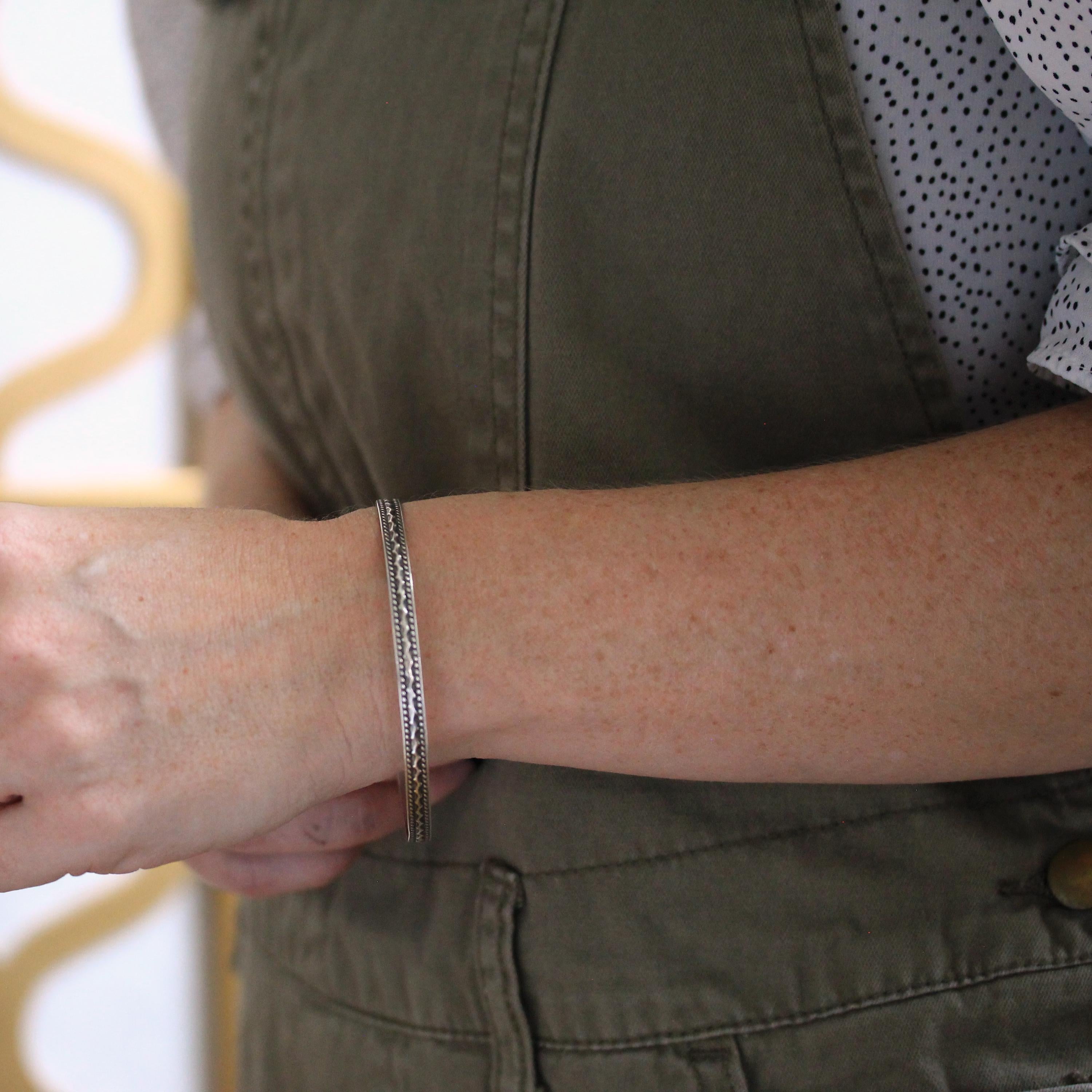Vintage Sterling Silver Bracelet - Retro Engraved Eternity Designs Skinny Bangle - Circa 1960s Era Statement Stacking Accessory 60s Jewelry