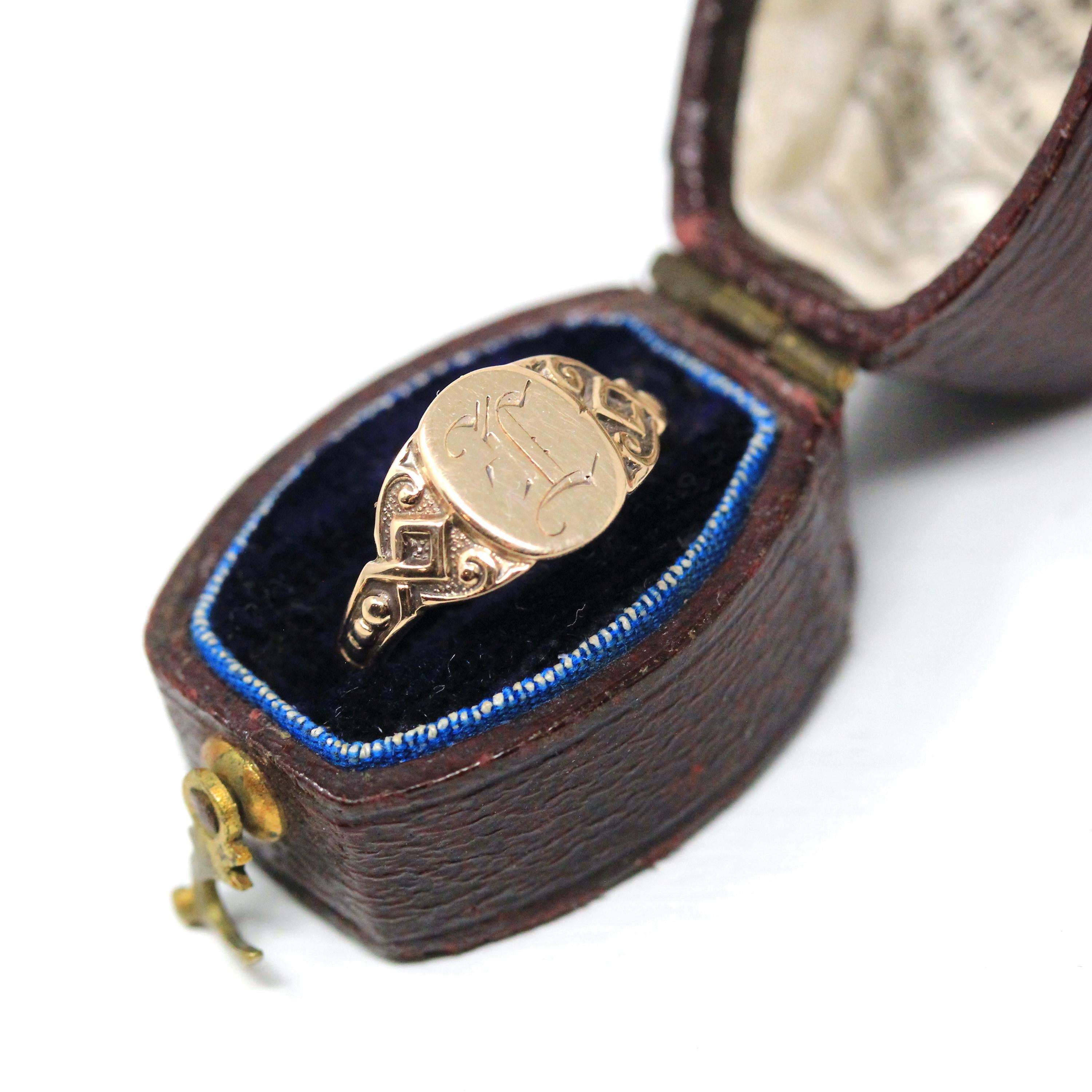 Antique "L" Signet Ring - Edwardian 10k Yellow Gold Engraved Single Letter Initial Pinky Midi - Vintage Circa 1910s Children's Fine Jewelry
