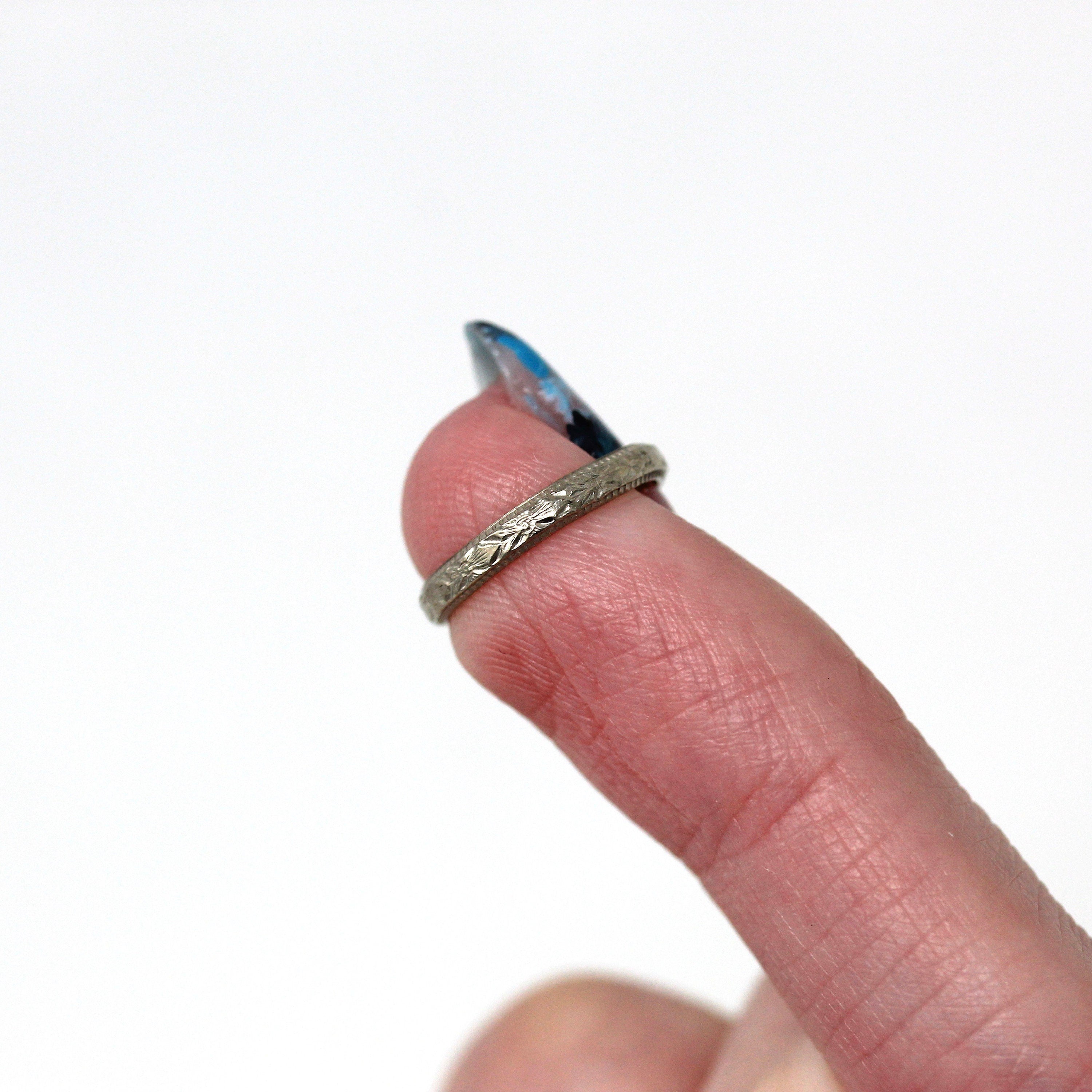Vintage Baby Band - Art Deco 10k White Gold Raised Eternity Design Ring - Circa 1930s Era Size 1/2 Dainty Fine Children's 30s Fine Jewelry