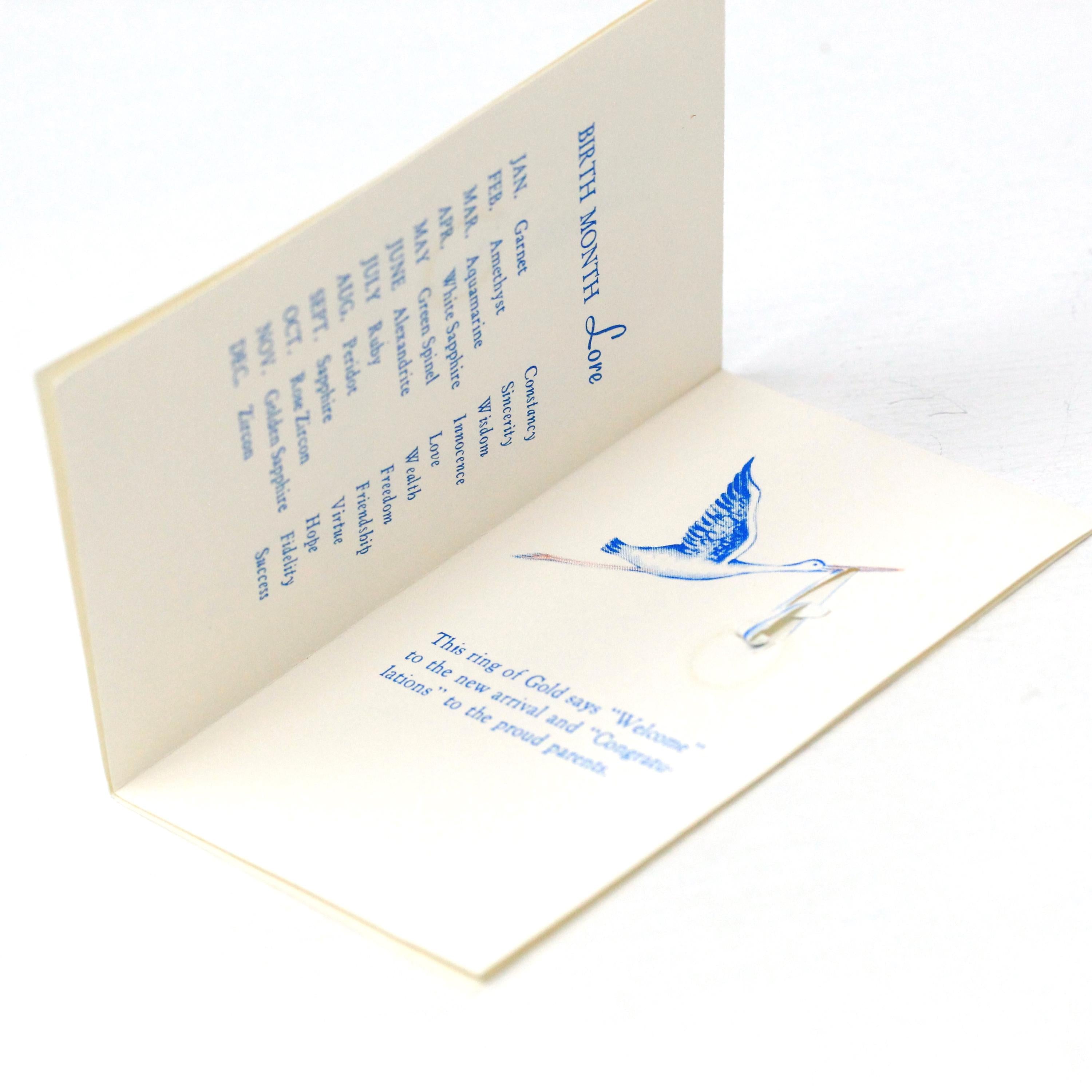 Vintage Baby Ring - 10k Yellow Gold Midi Charm Ring on Original Card - Circa 1940s Size 1/4 Shower New Mother Greetings Birth Fine Jewelry