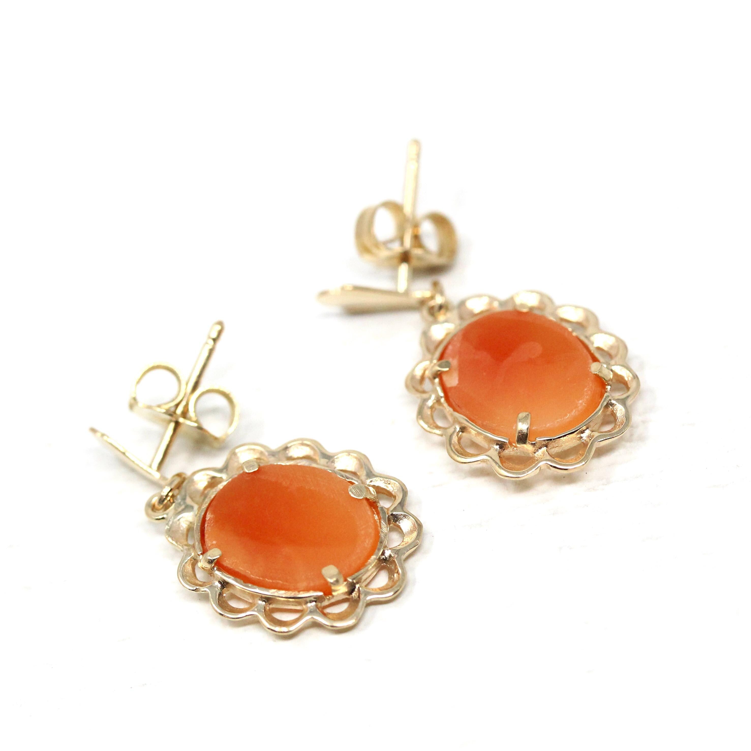 Vintage Cameo Earrings - Retro 10k Yellow Gold Oval Carved Shell Portrait Push Backs - Circa 1960s Era Fashion Accessories 60s Fine Jewelry