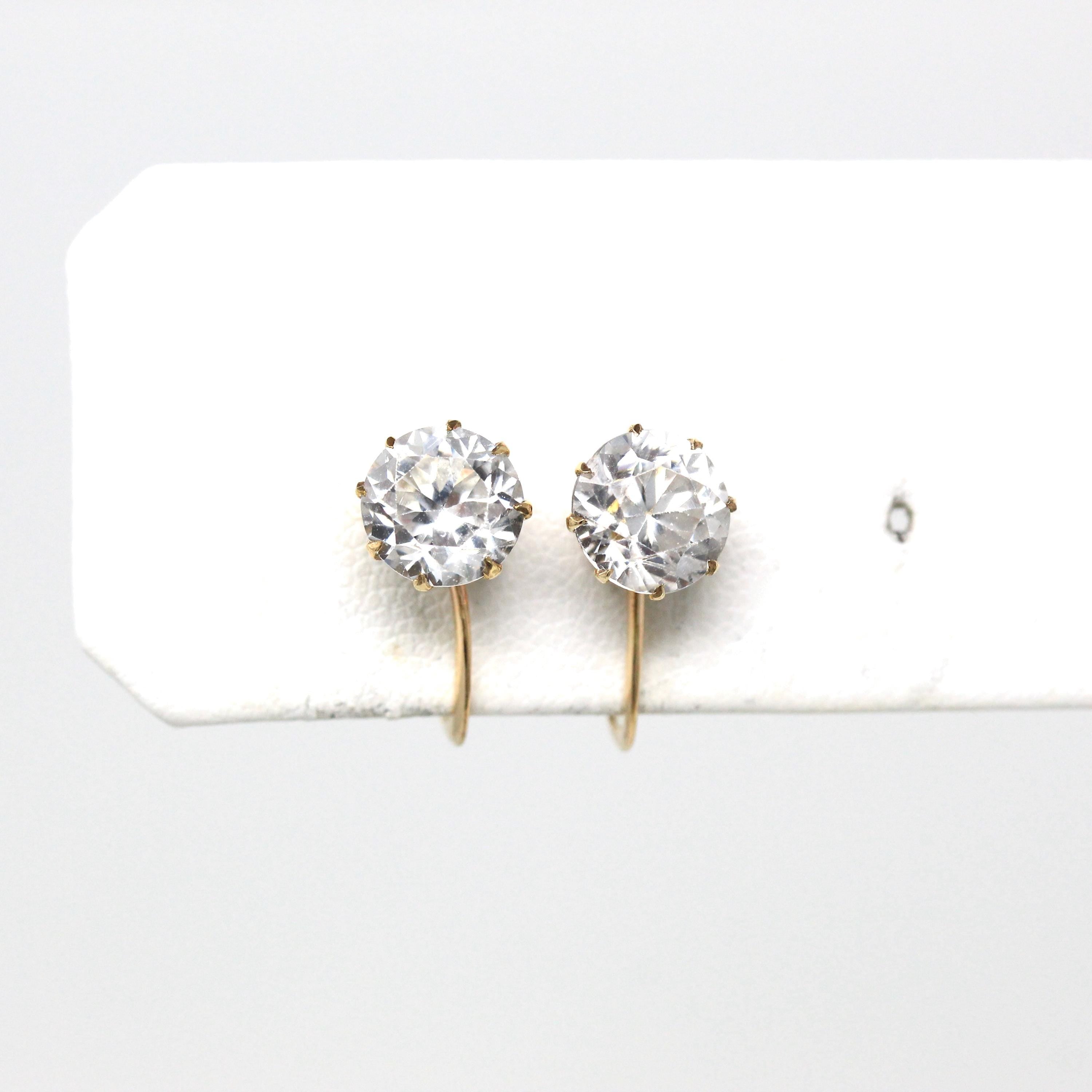 Cubic Zirconia Earrings - Modern 10k Yellow Gold Pierced Push Backs Dangle Drop Style - Estate Circa 2000's Era Fashion Accessory Jewelry