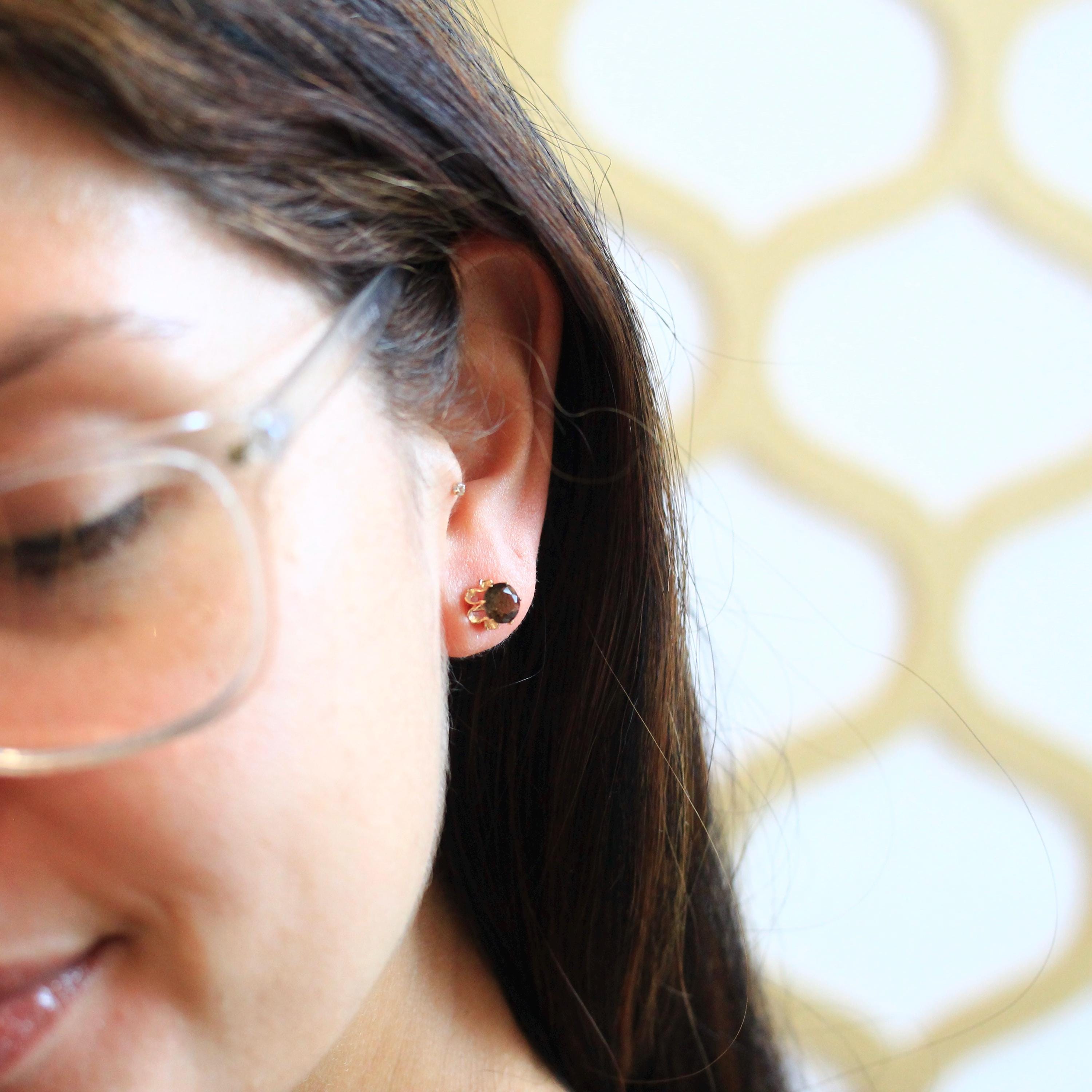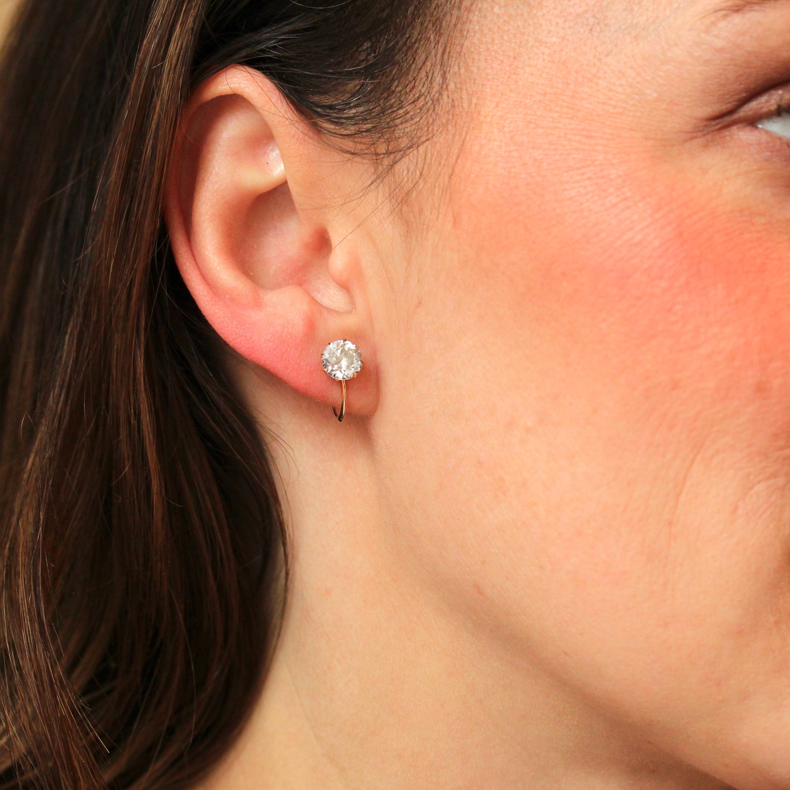 Antique Paste Earrings - Edwardian 14k Yellow Gold Buttercup Flower Pierced Posts Studs - Vintage 1910s White Gray Stone Bridal Fine Jewelry