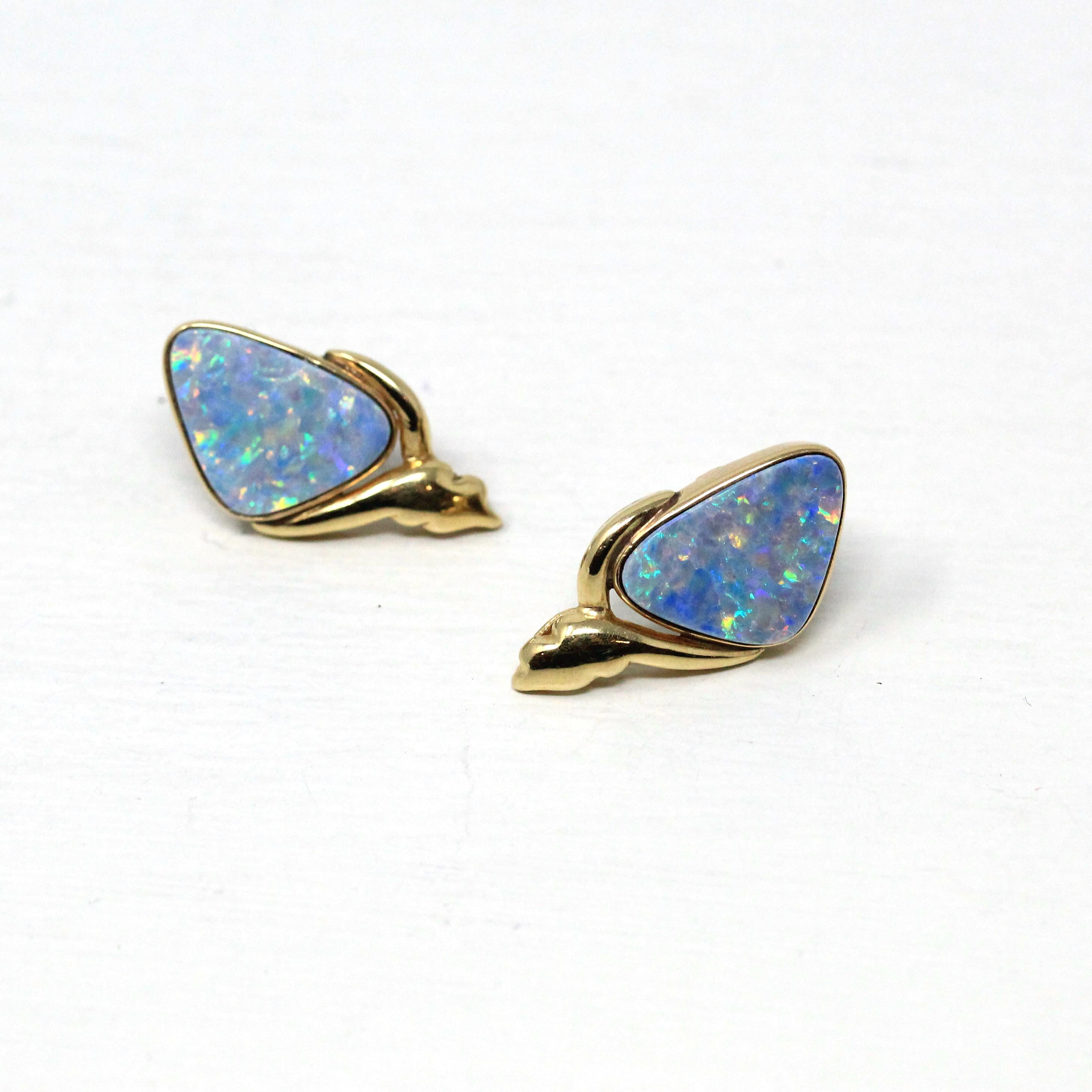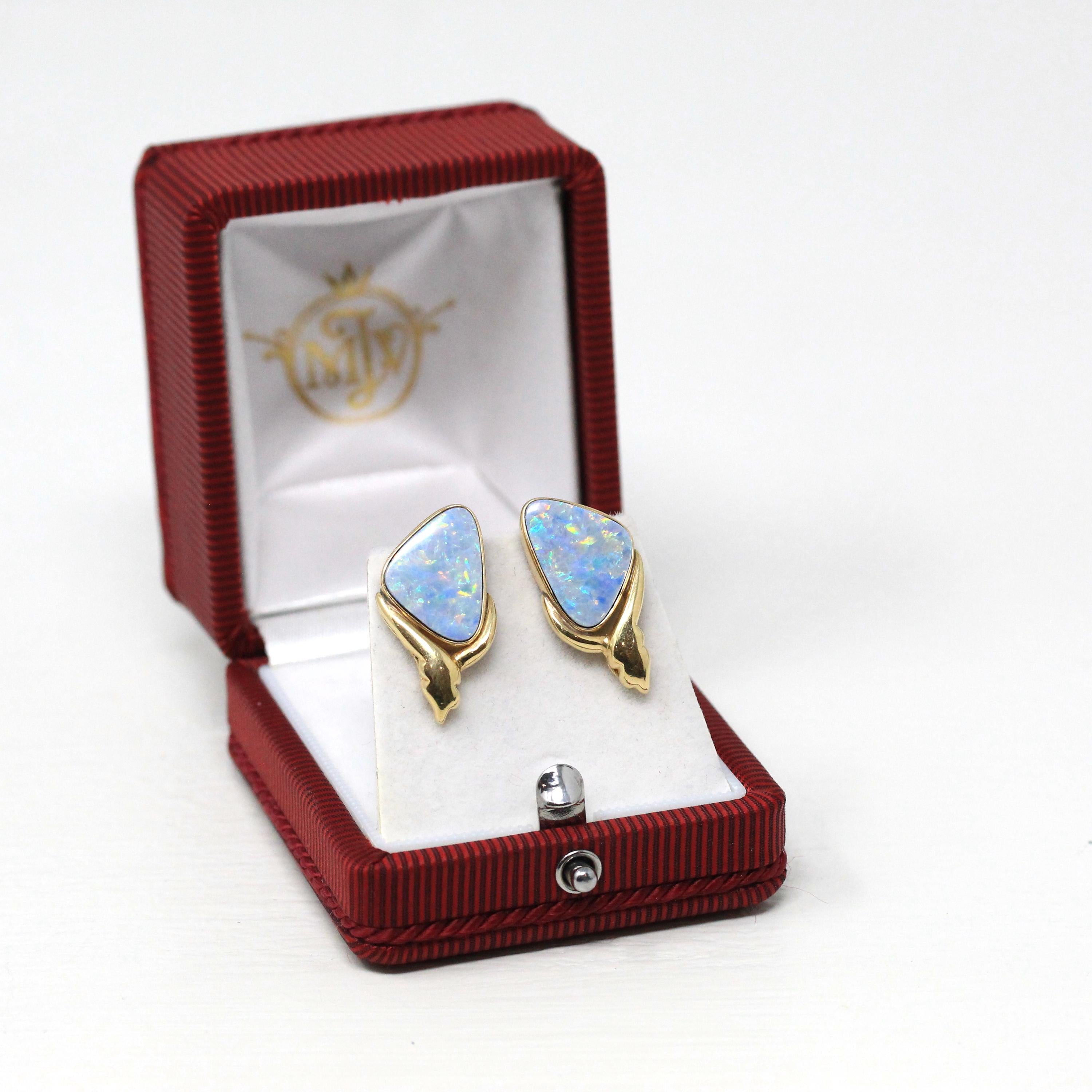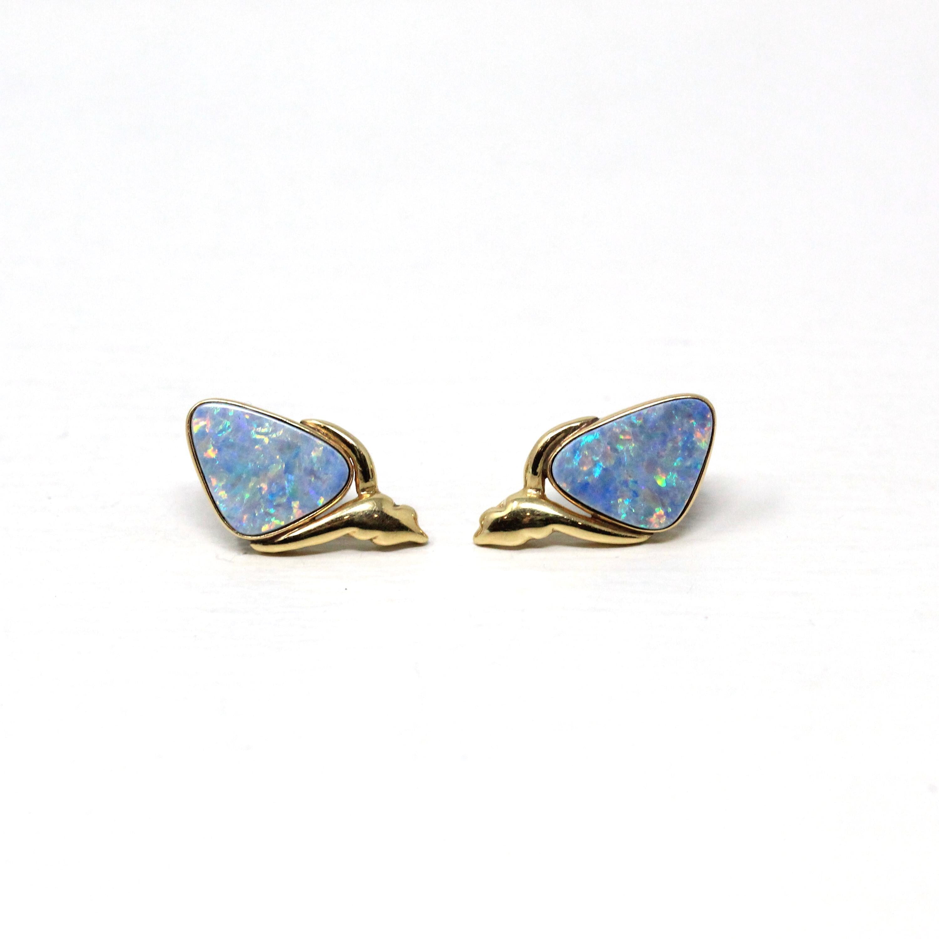 London Blue Topaz Earrings - Estate 14k Yellow Gold Natural Pear Shape Gemstone Studs - Modern 2000s Era Pierced Push Back Fine Jewelry