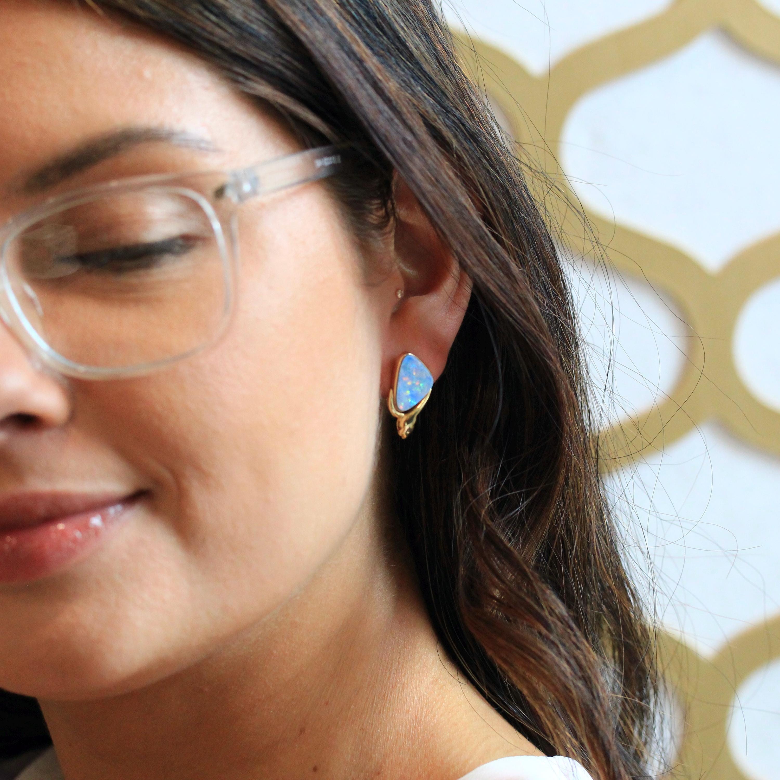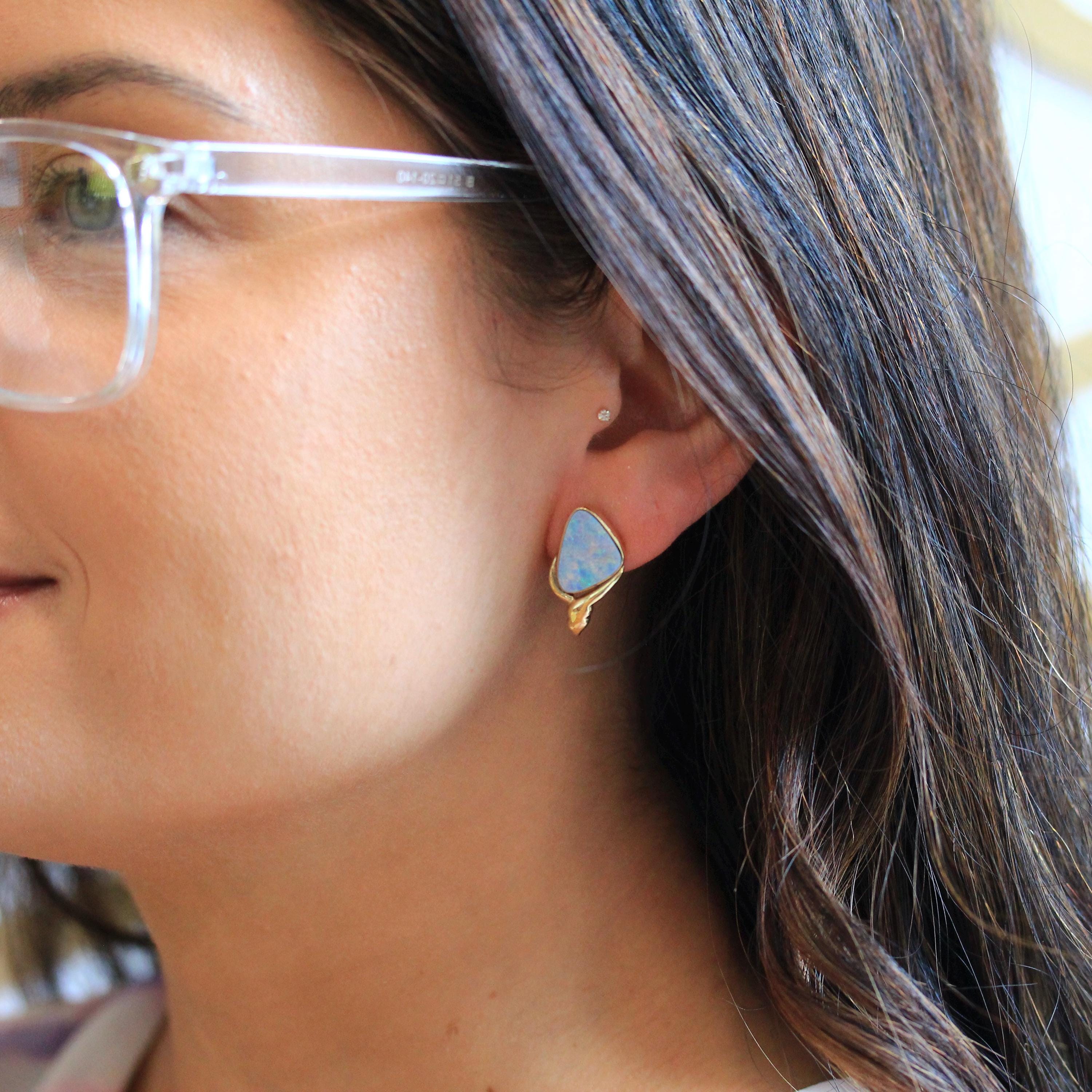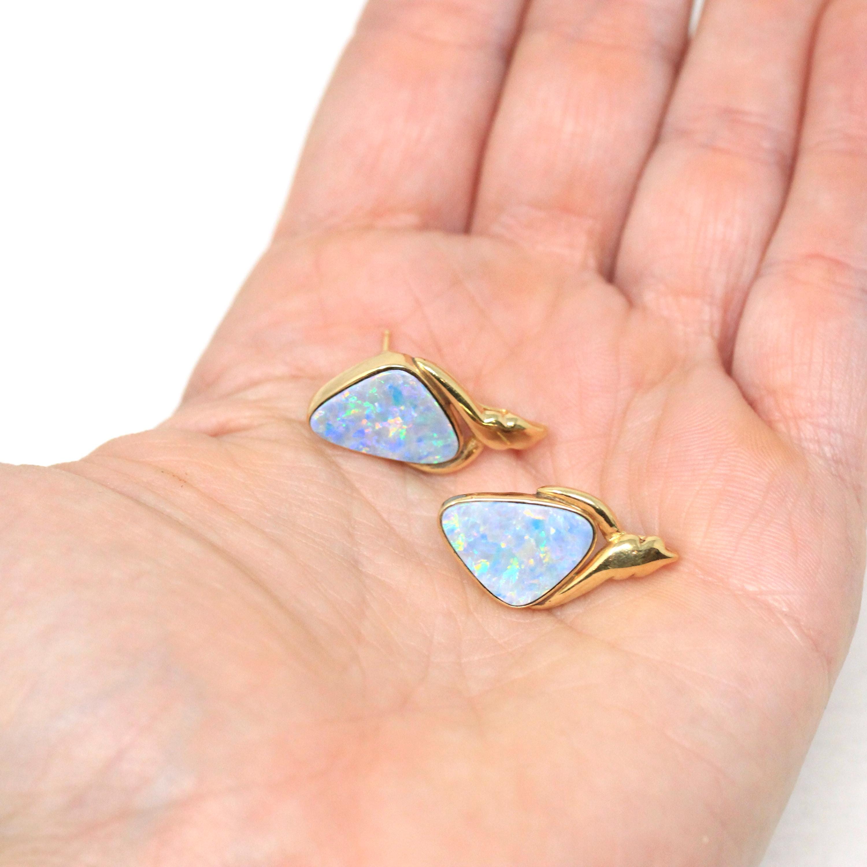London Blue Topaz Earrings - Estate 14k Yellow Gold Natural Pear Shape Gemstone Studs - Modern 2000s Era Pierced Push Back Fine Jewelry