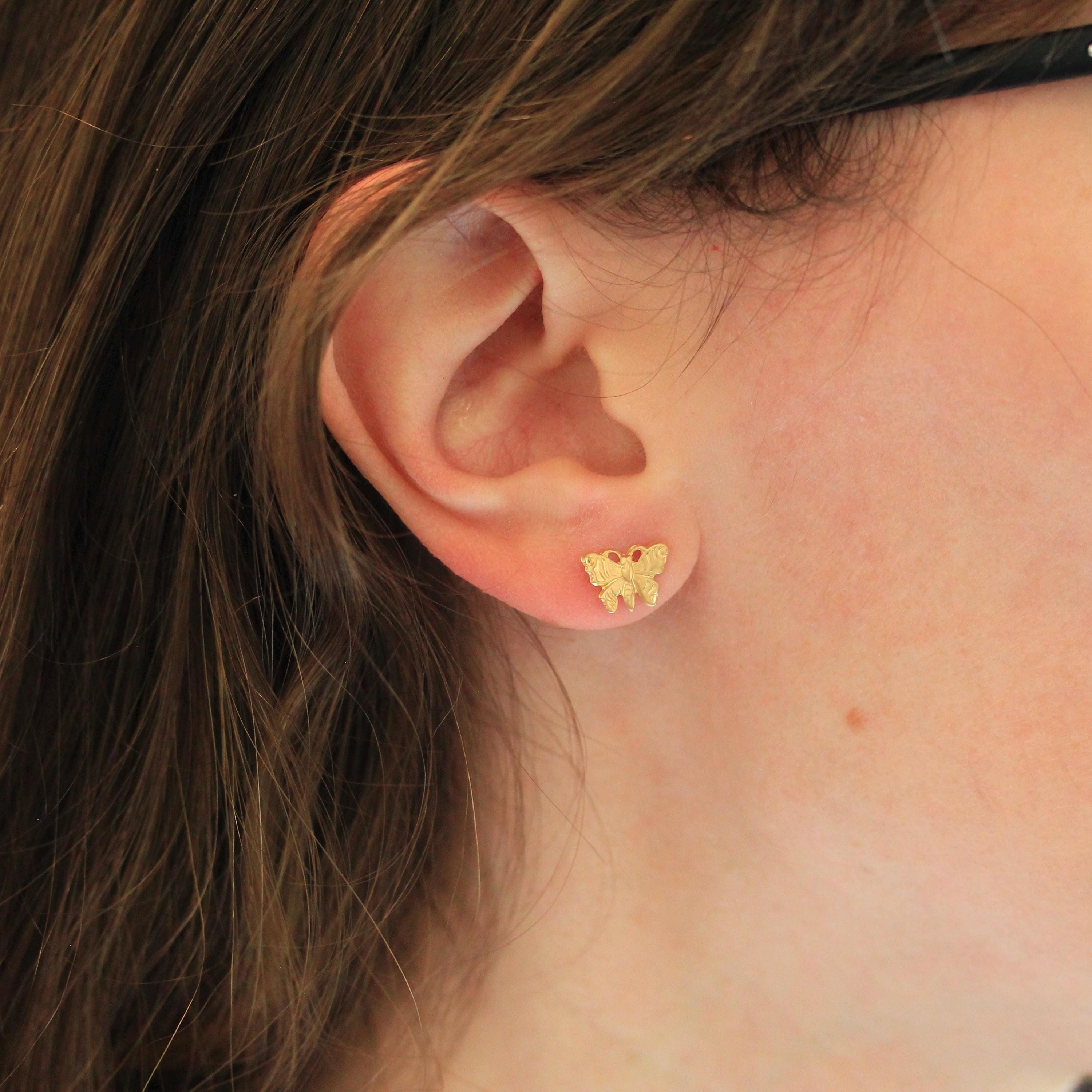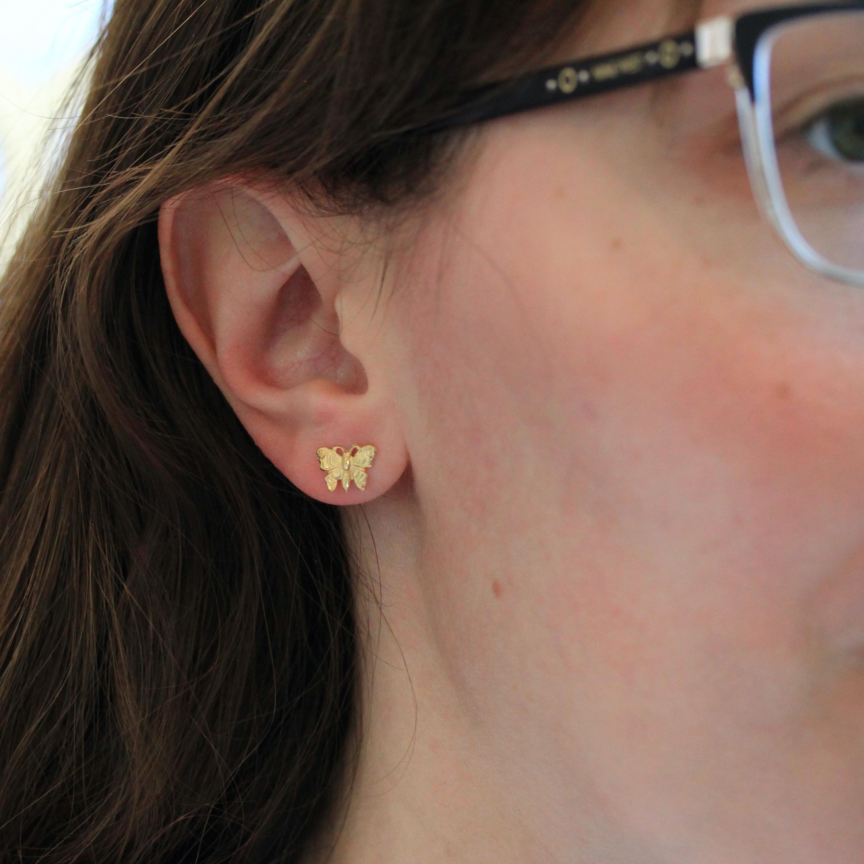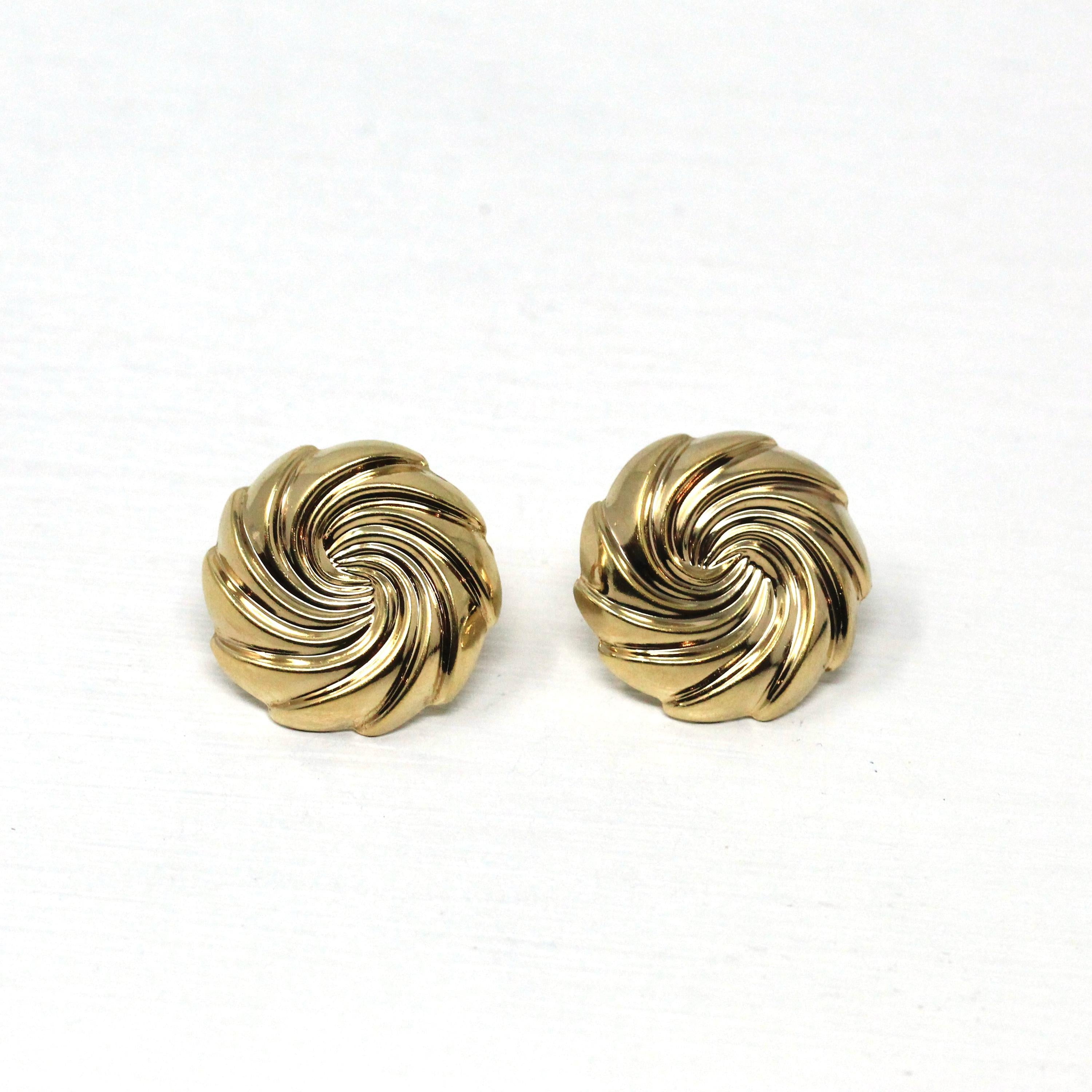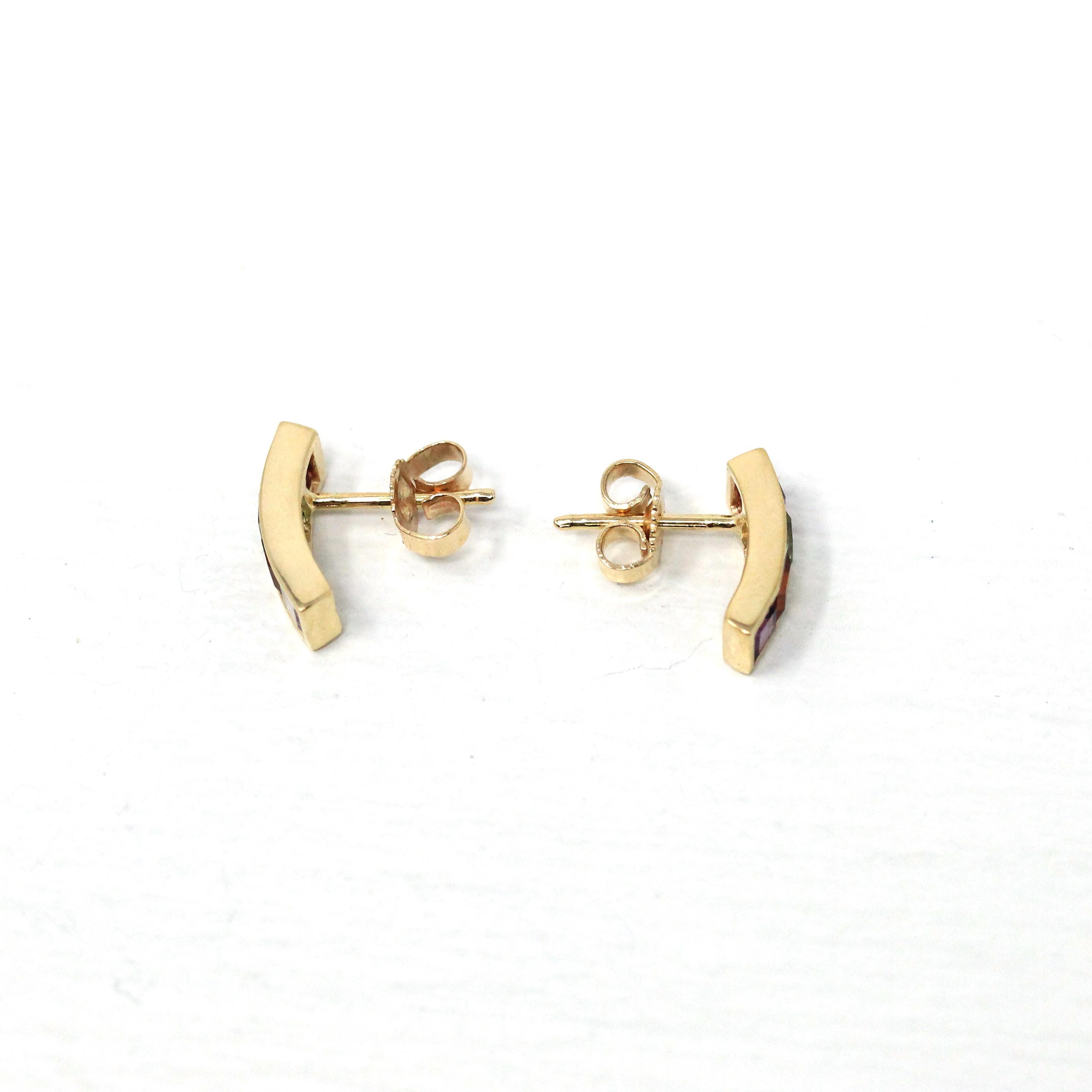 Retro Cameo Earrings - Vintage 14k Yellow Gold Bezel Set Clipback Post Pierced Studs - Circa 1970s Push Back Woman's Profile Fine Jewelry