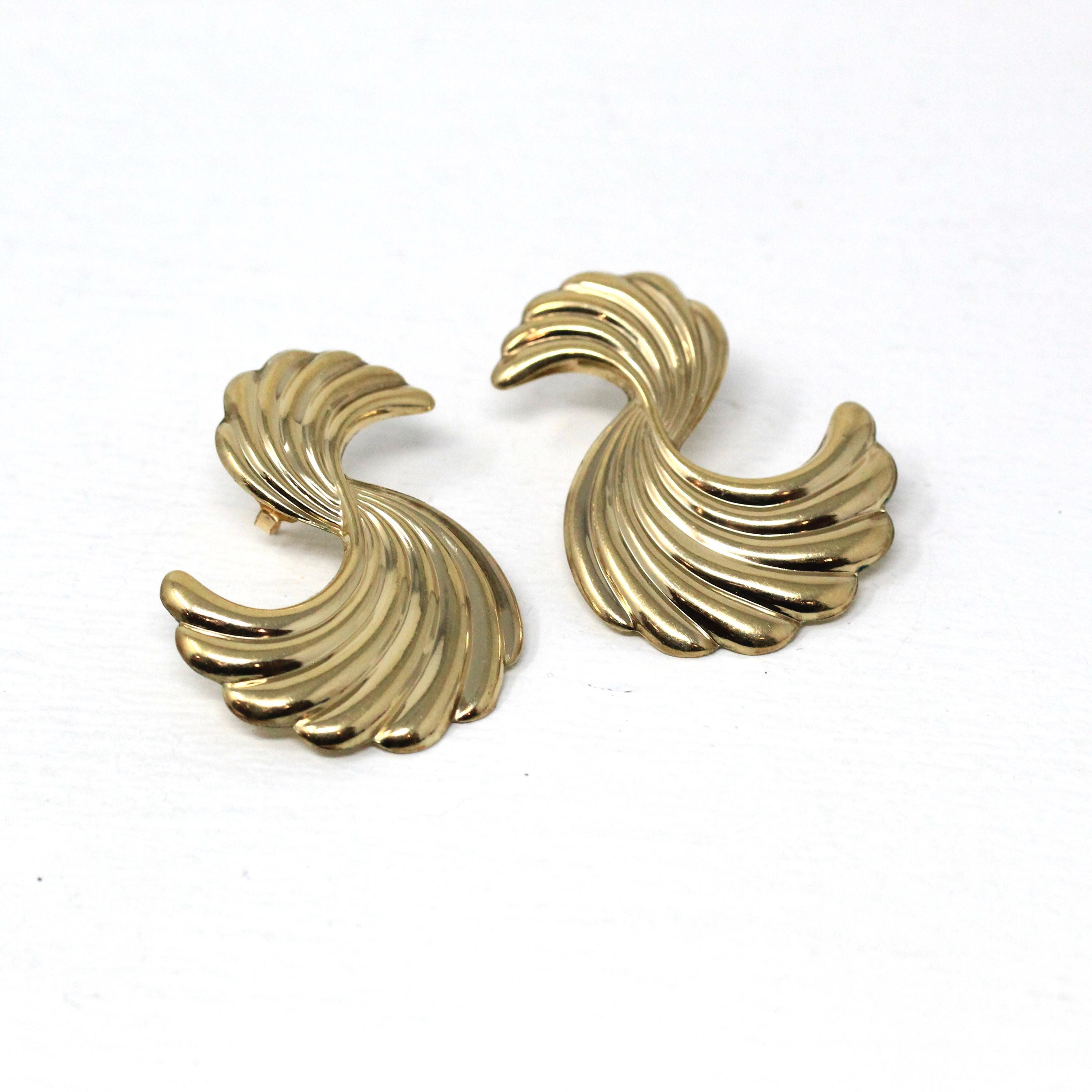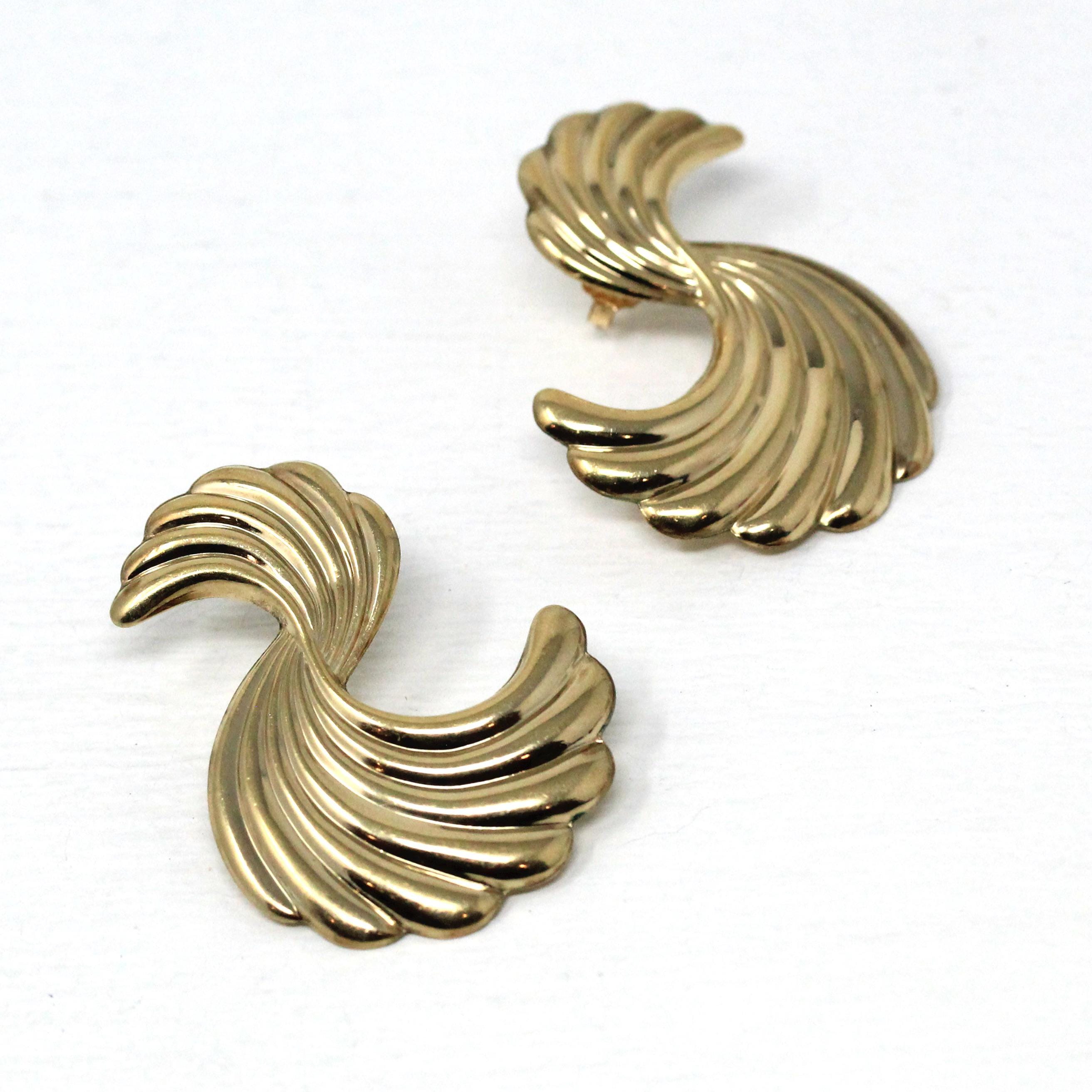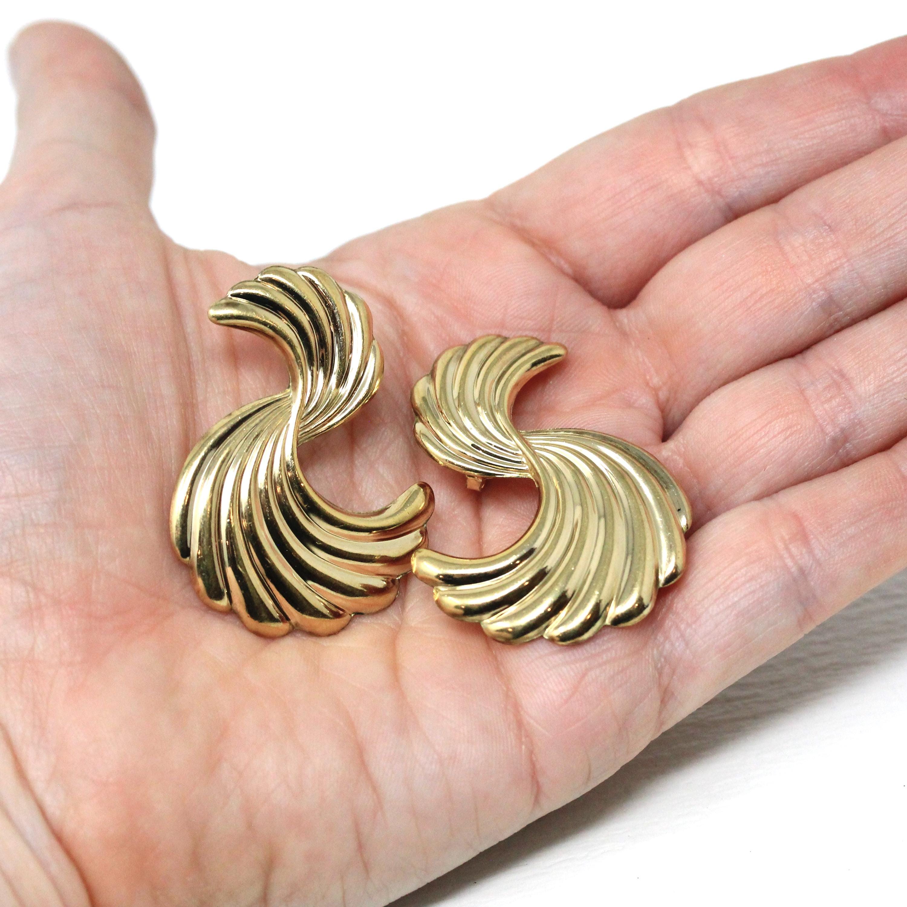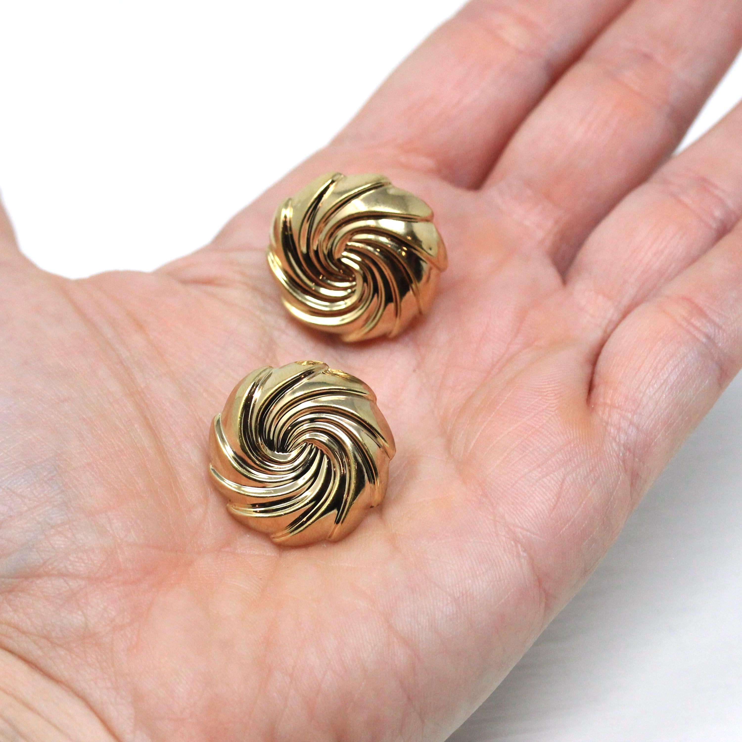 Modern Hoop Earrings - Estate 14k Yellow Gold Latch Lever Backs Door Knockers - Vintage Circa 2000's Era Statement Twisted Fine Jewelry