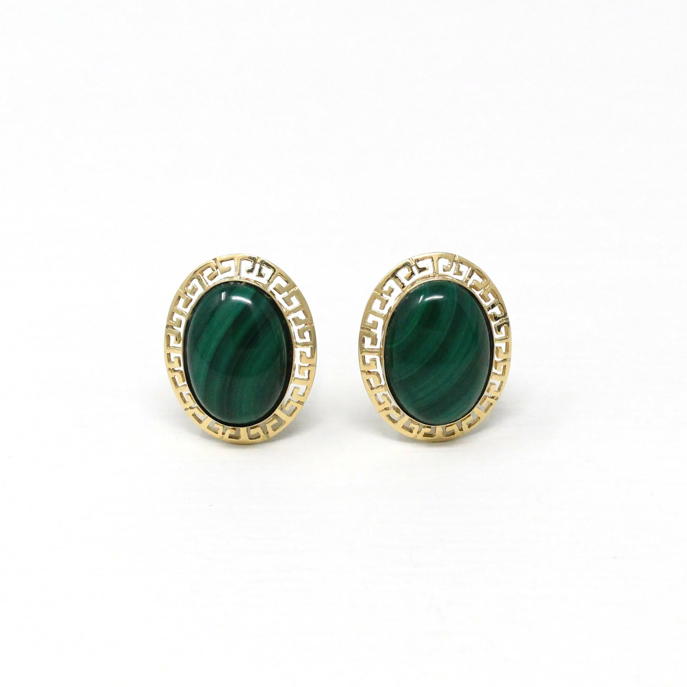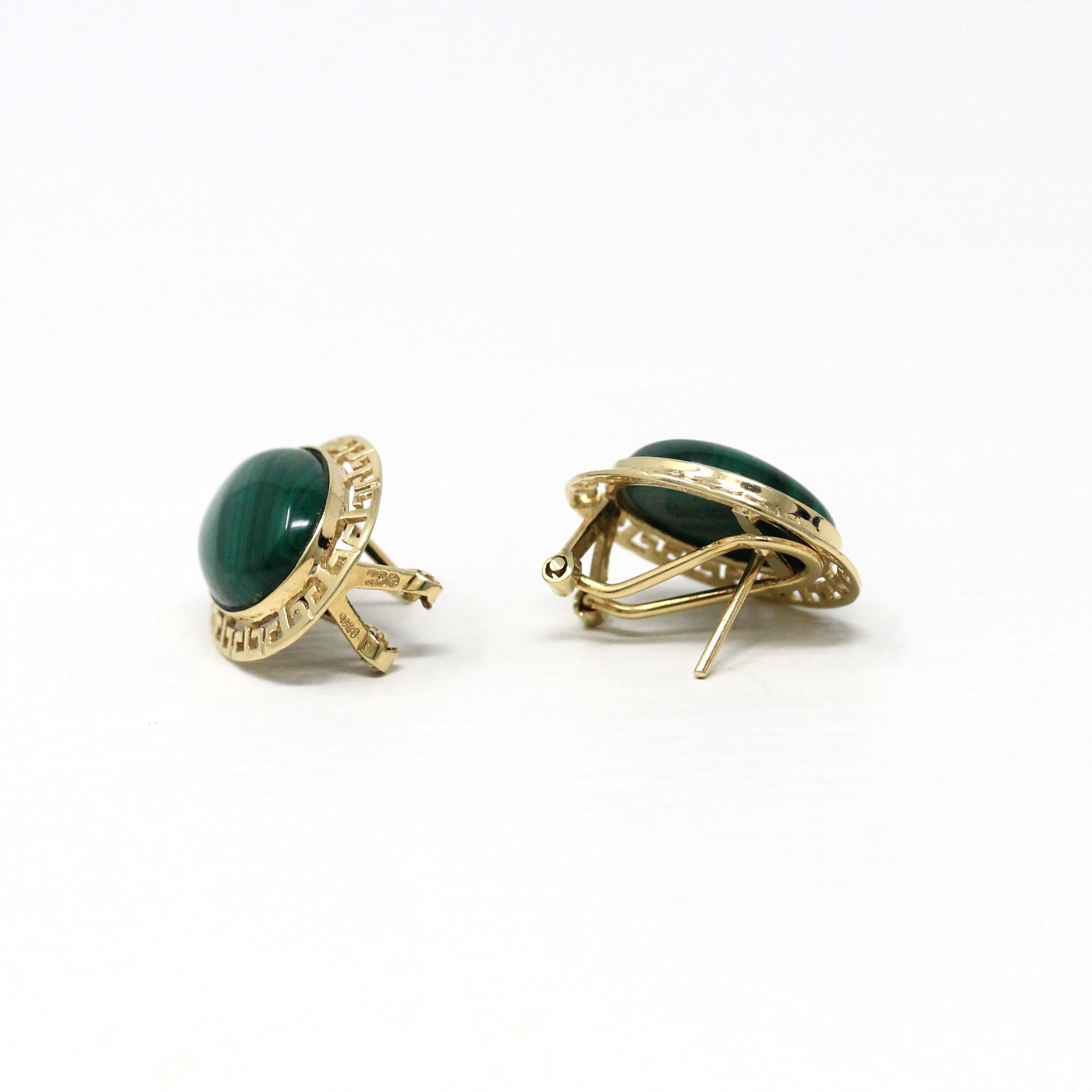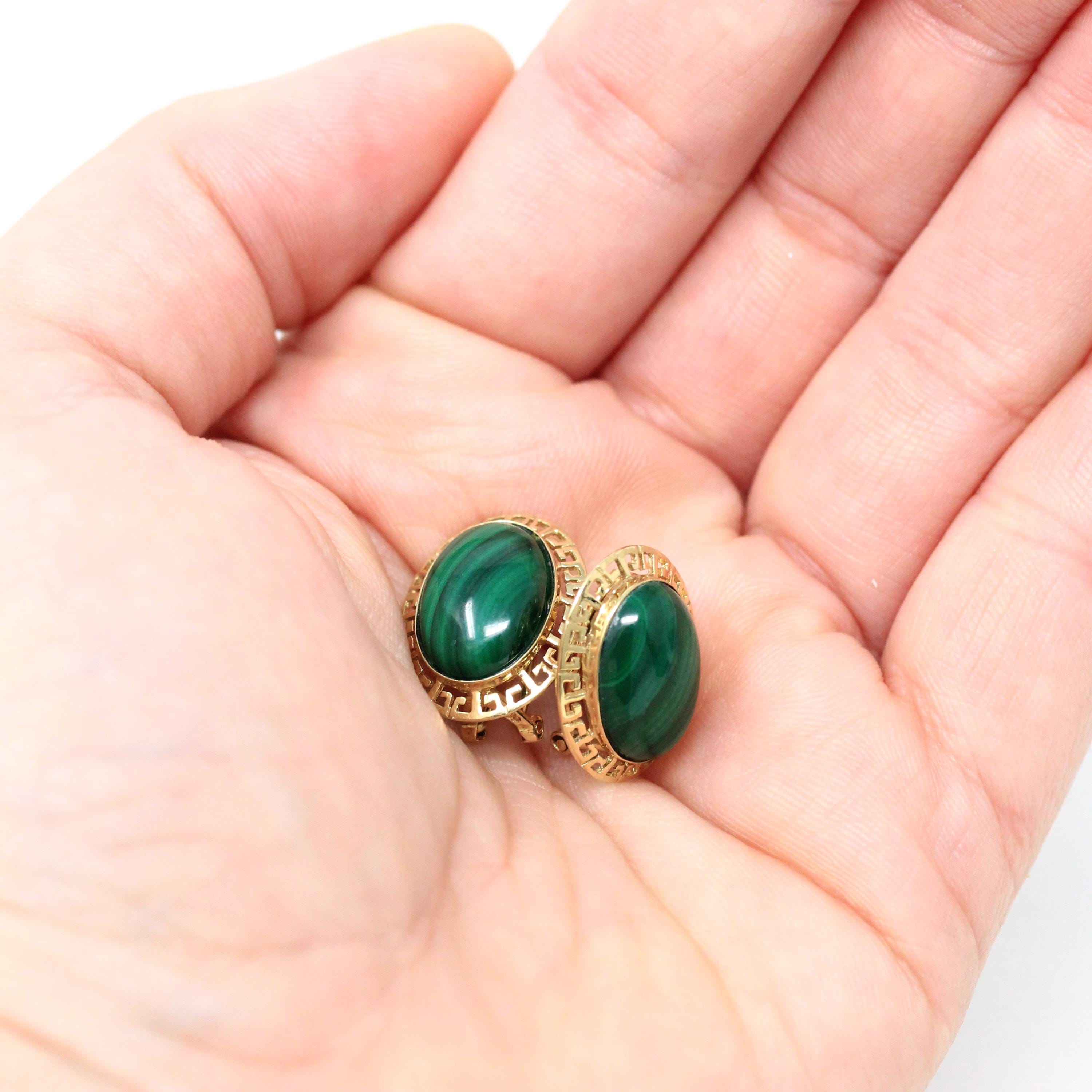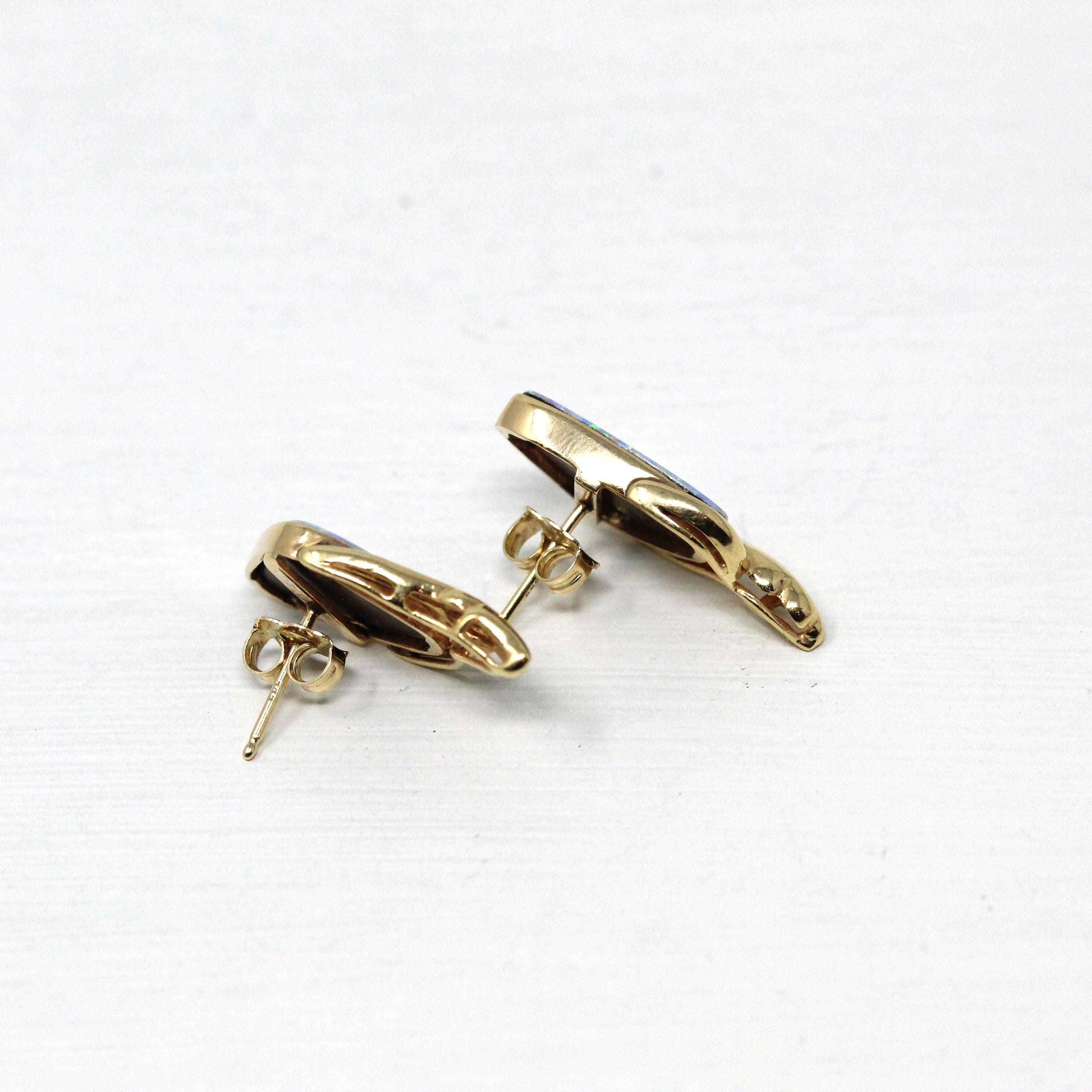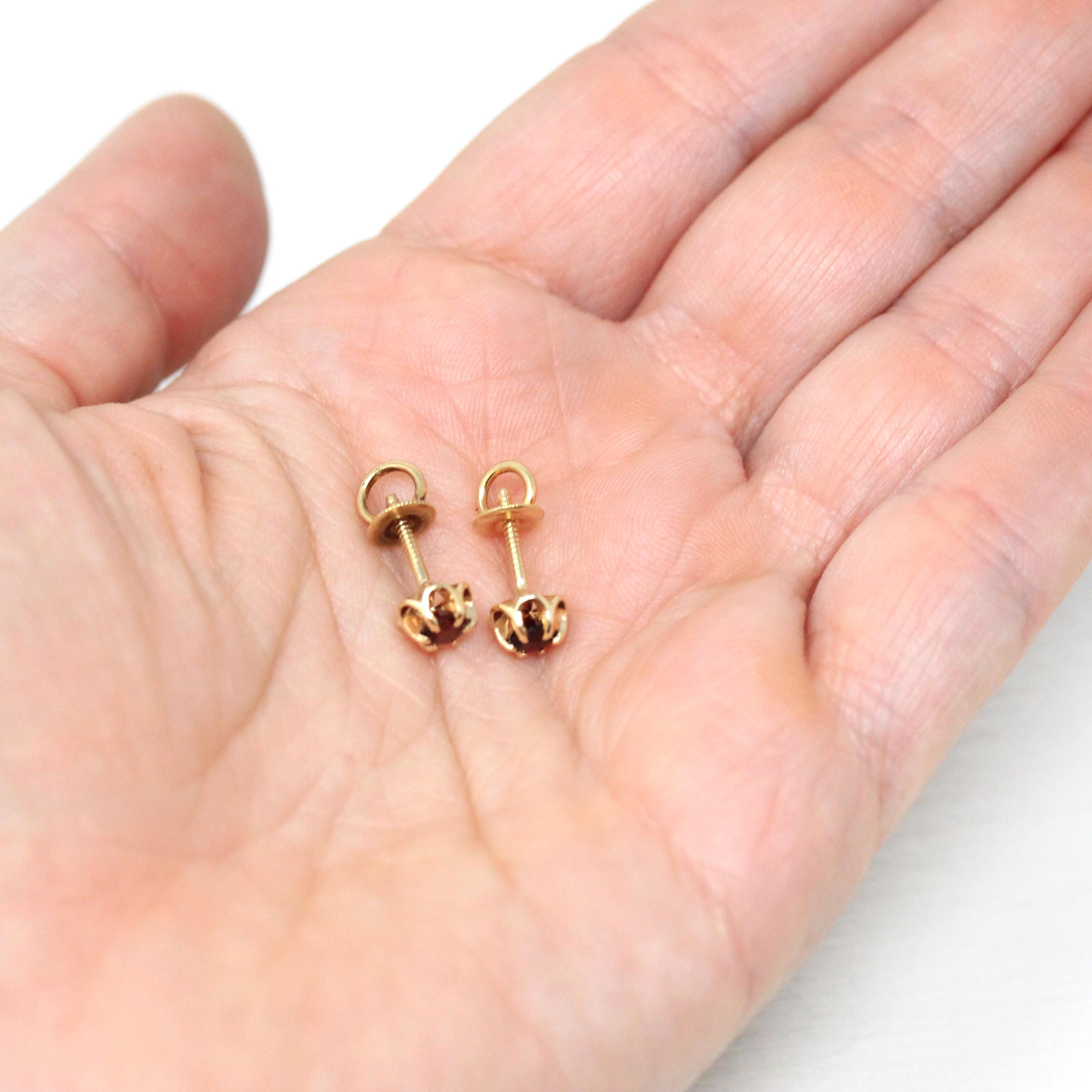 Vintage Scarab Earrings - Retro 14k Yellow Gold Carved Genuine Rhodonite Gemstone - Circa 1960s Era Egyptian Revival Style Beetle Jewelry