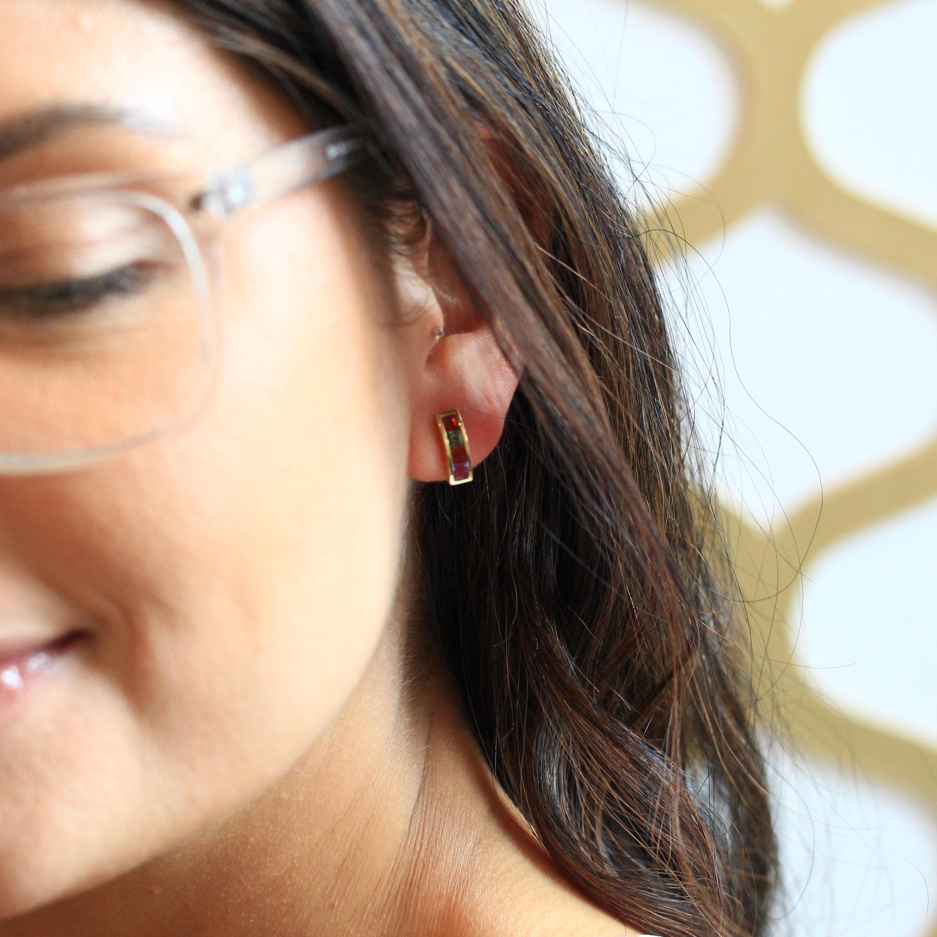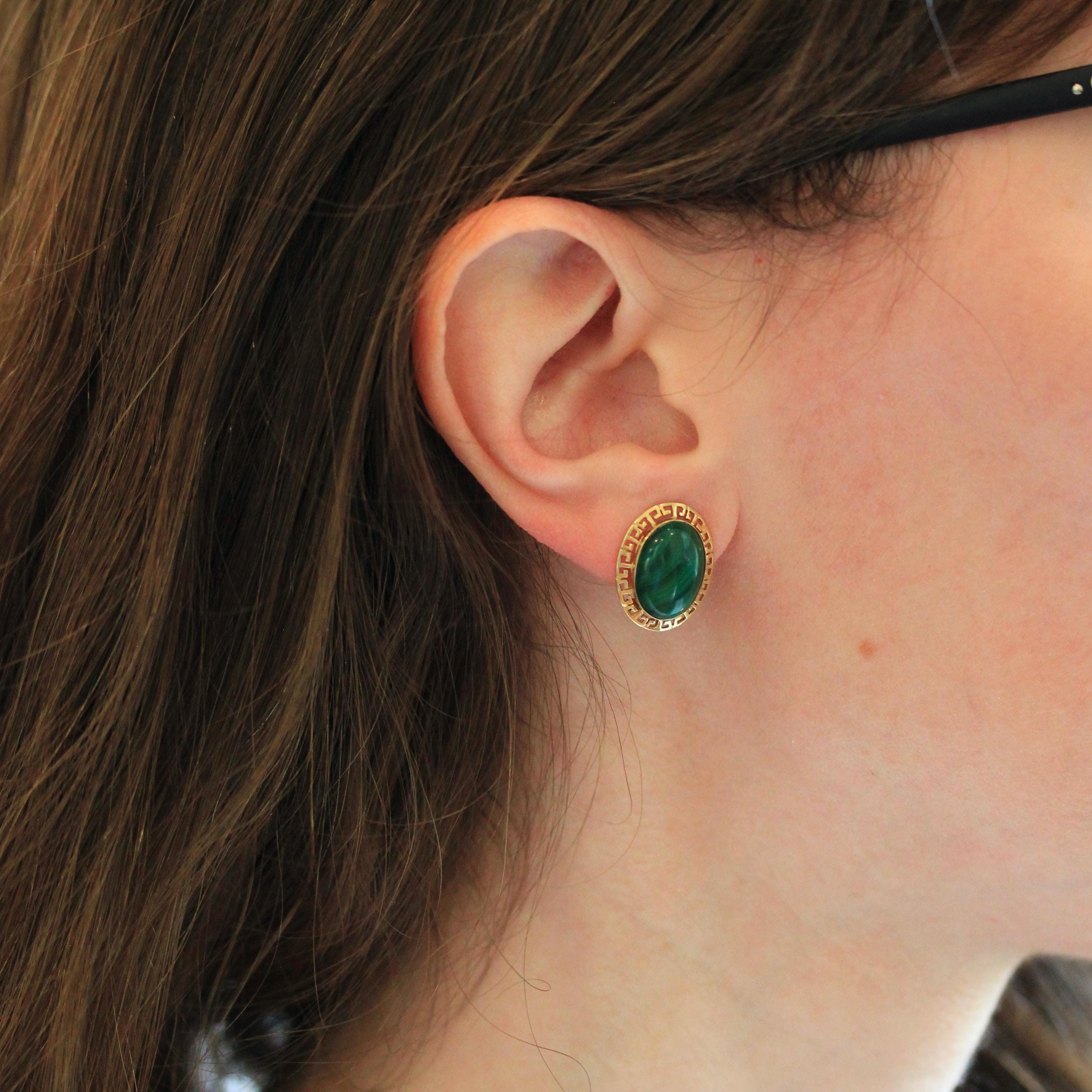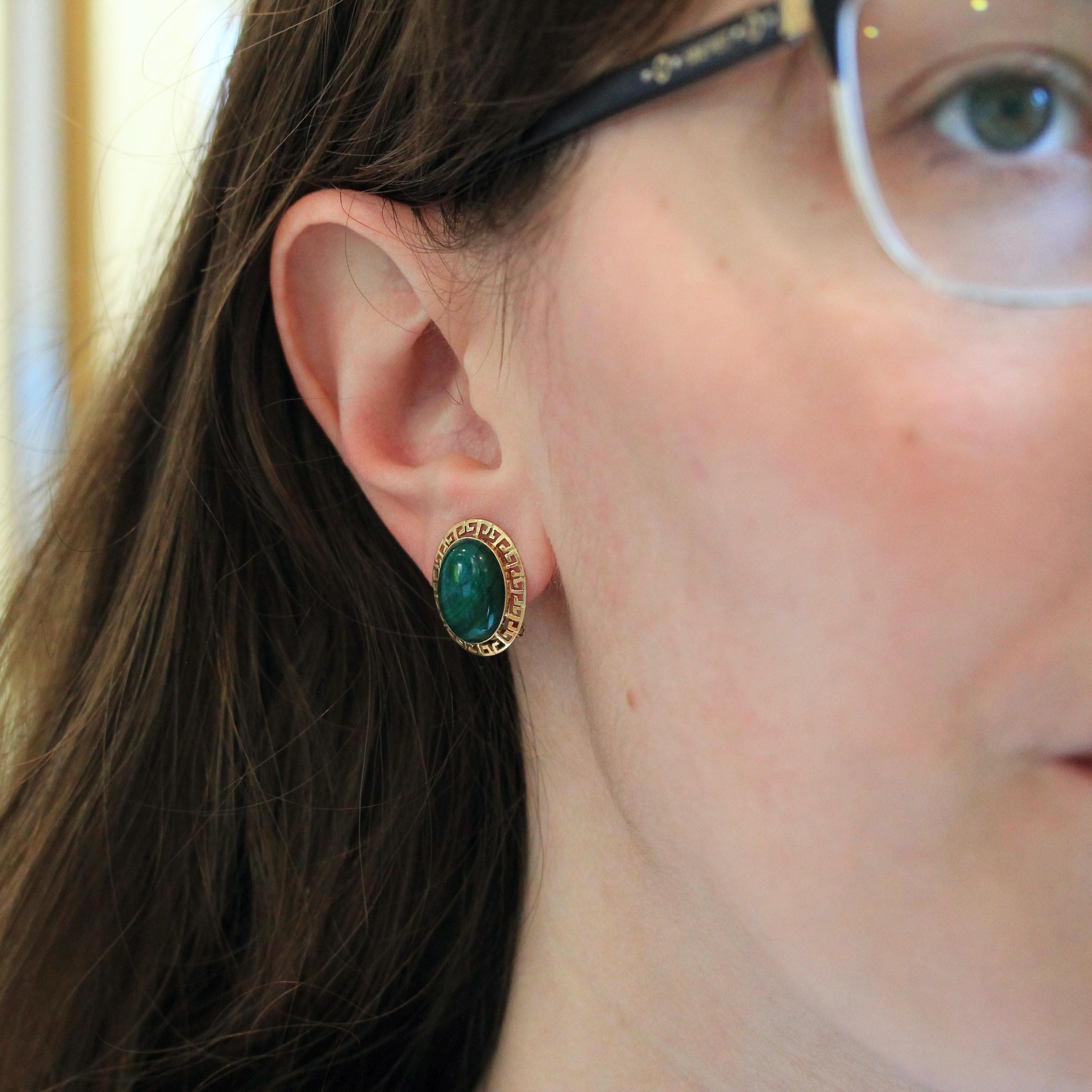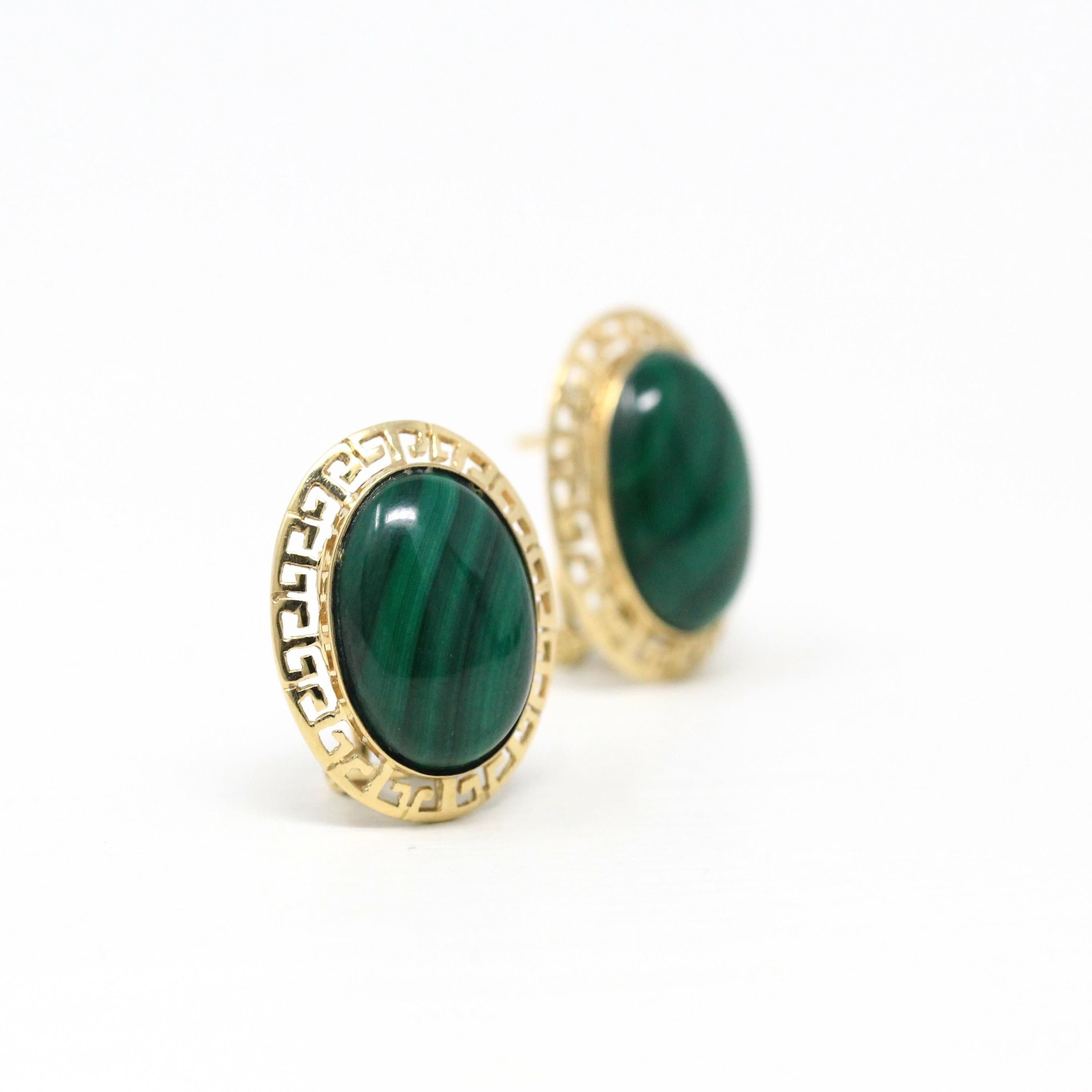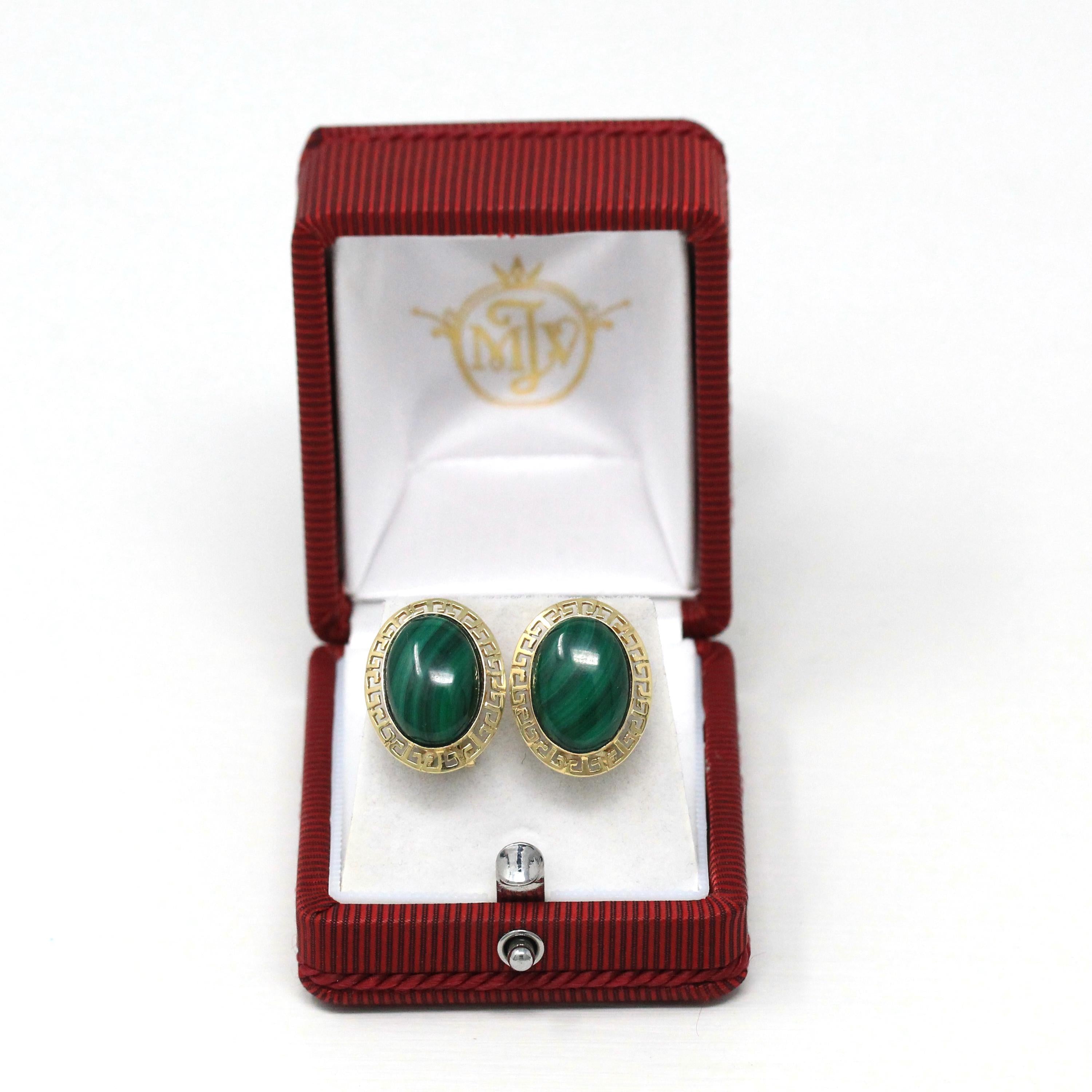 Vintage Scarab Earrings - Retro 14k Yellow Gold Carved Genuine Rhodonite Gemstone - Circa 1960s Era Egyptian Revival Style Beetle Jewelry