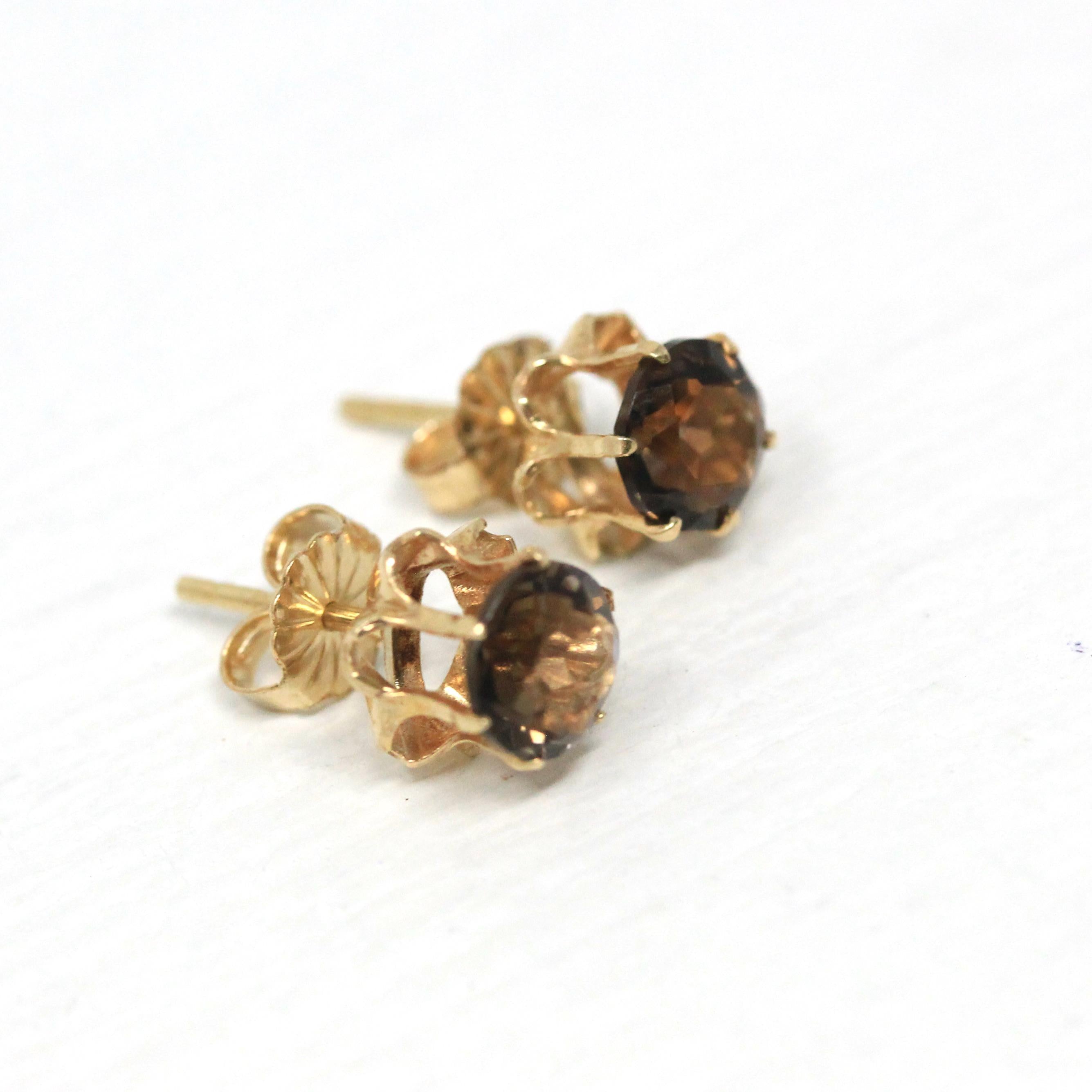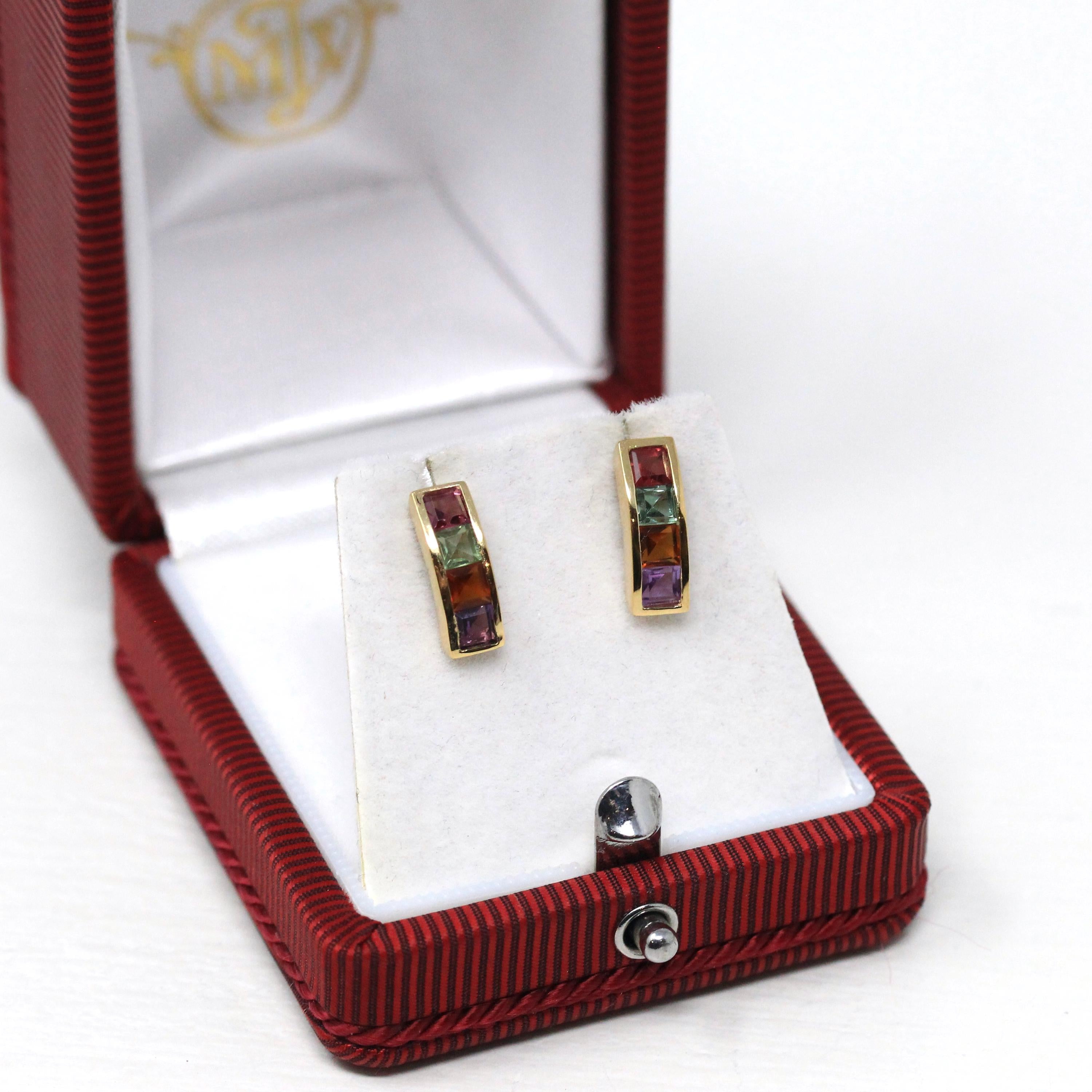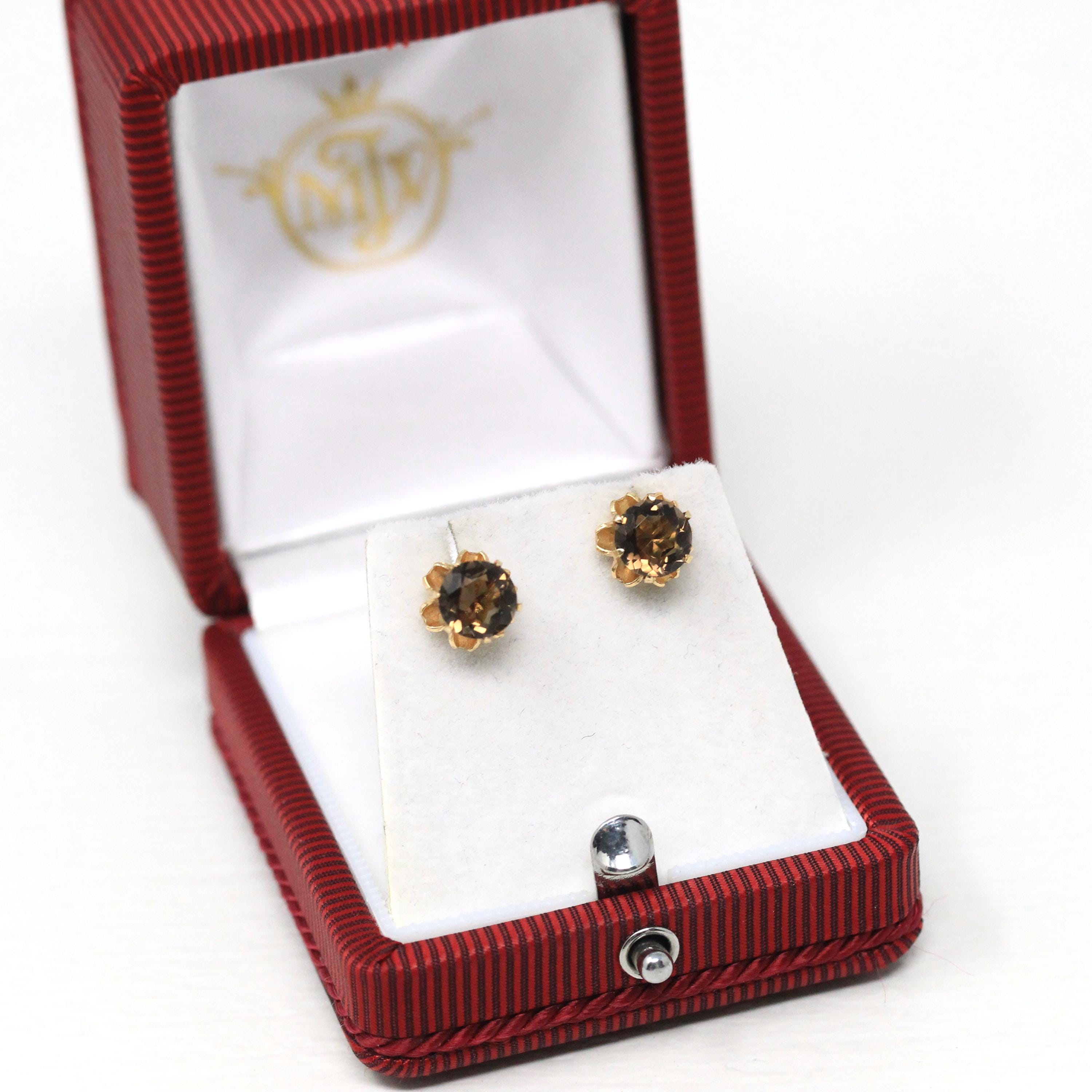 Retro Citrine Earrings - Vintage 22k Yellow Gold Pierced Push Back Dangle Dark Orange .67 CT Gems - Circa 1970s Era Fine Statement Jewelry