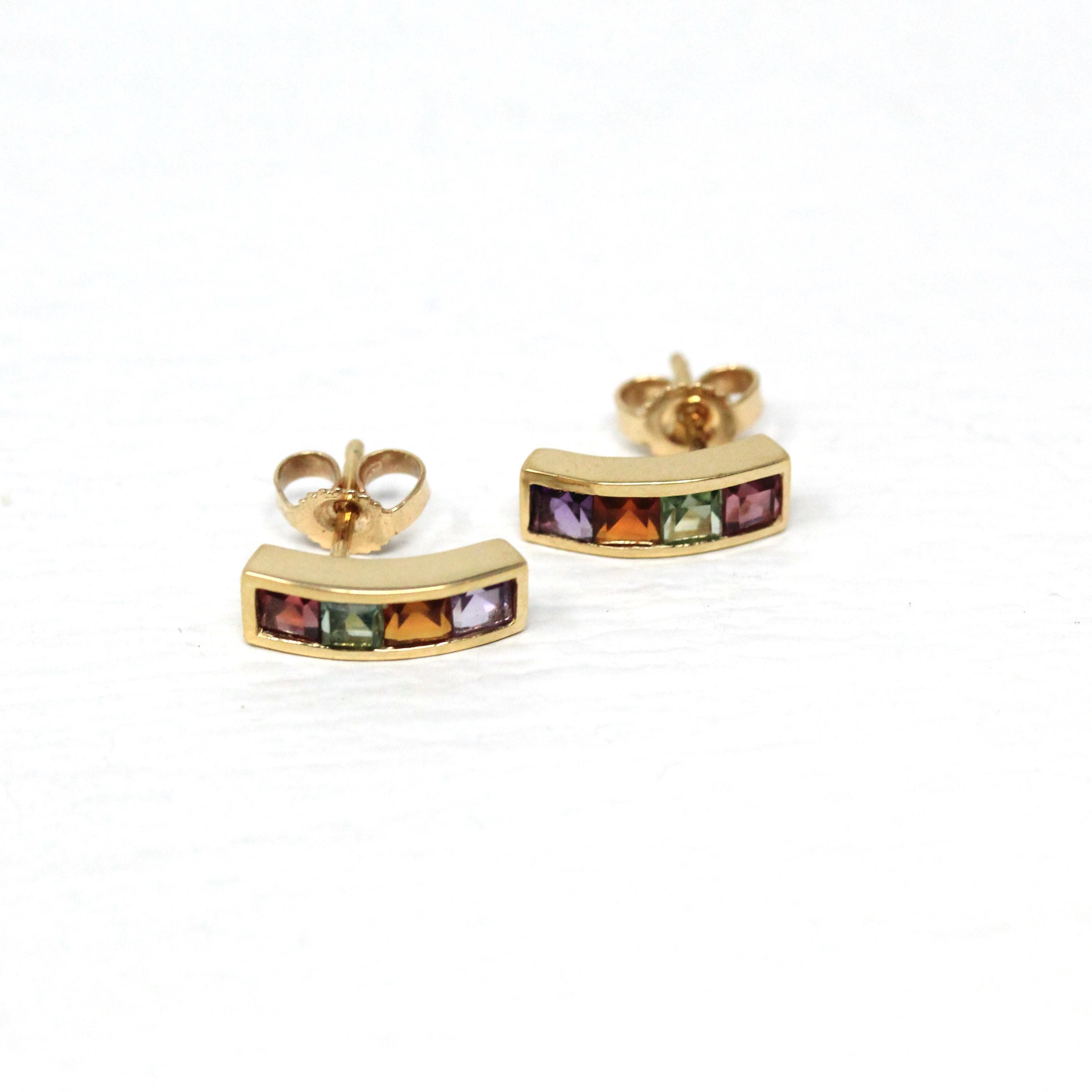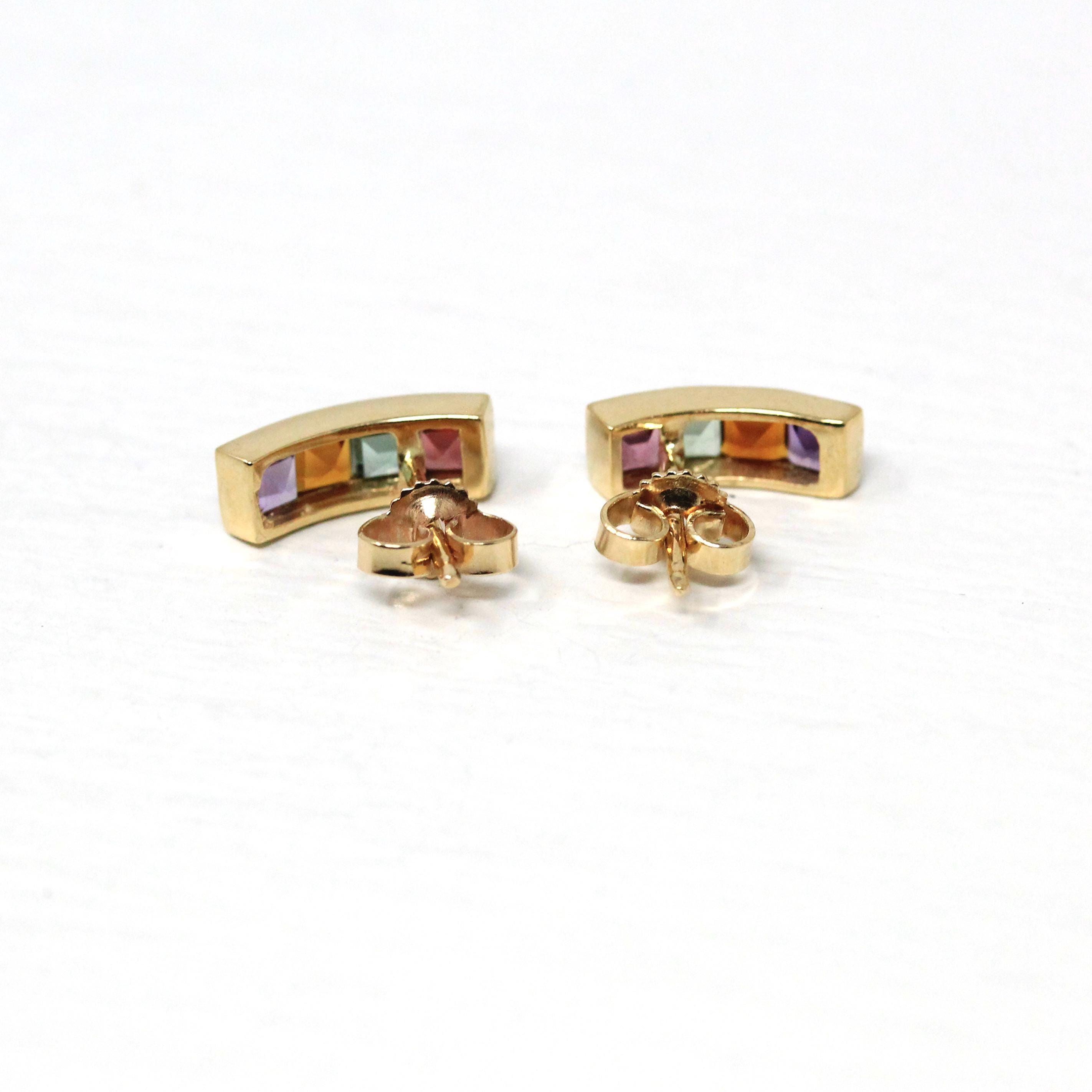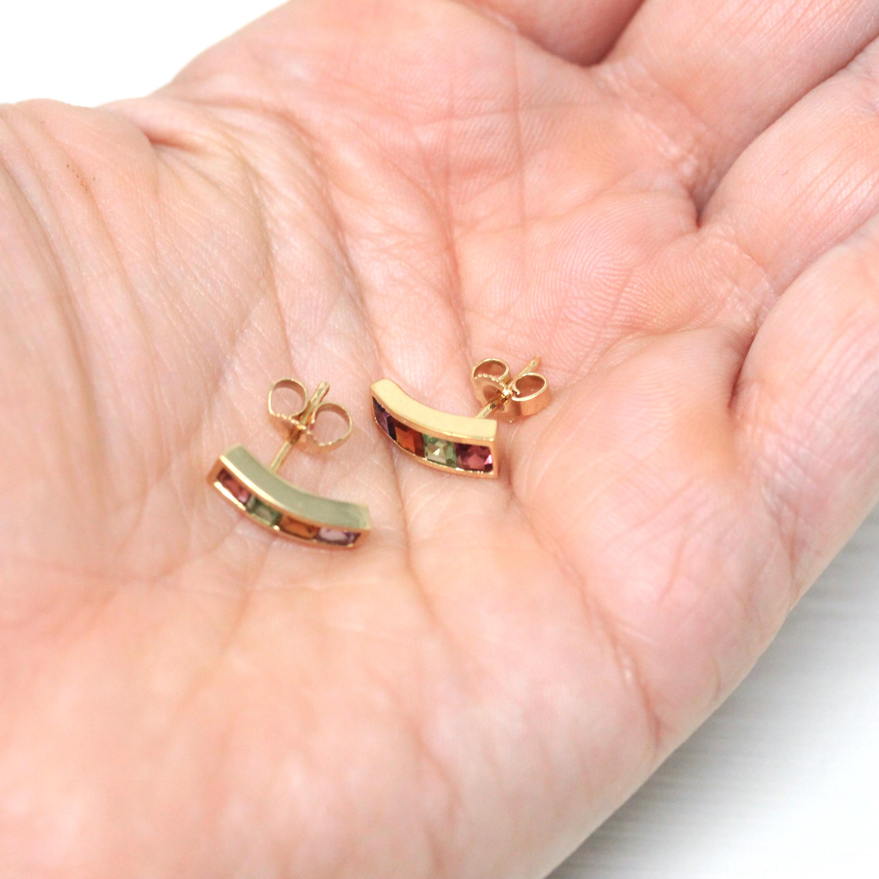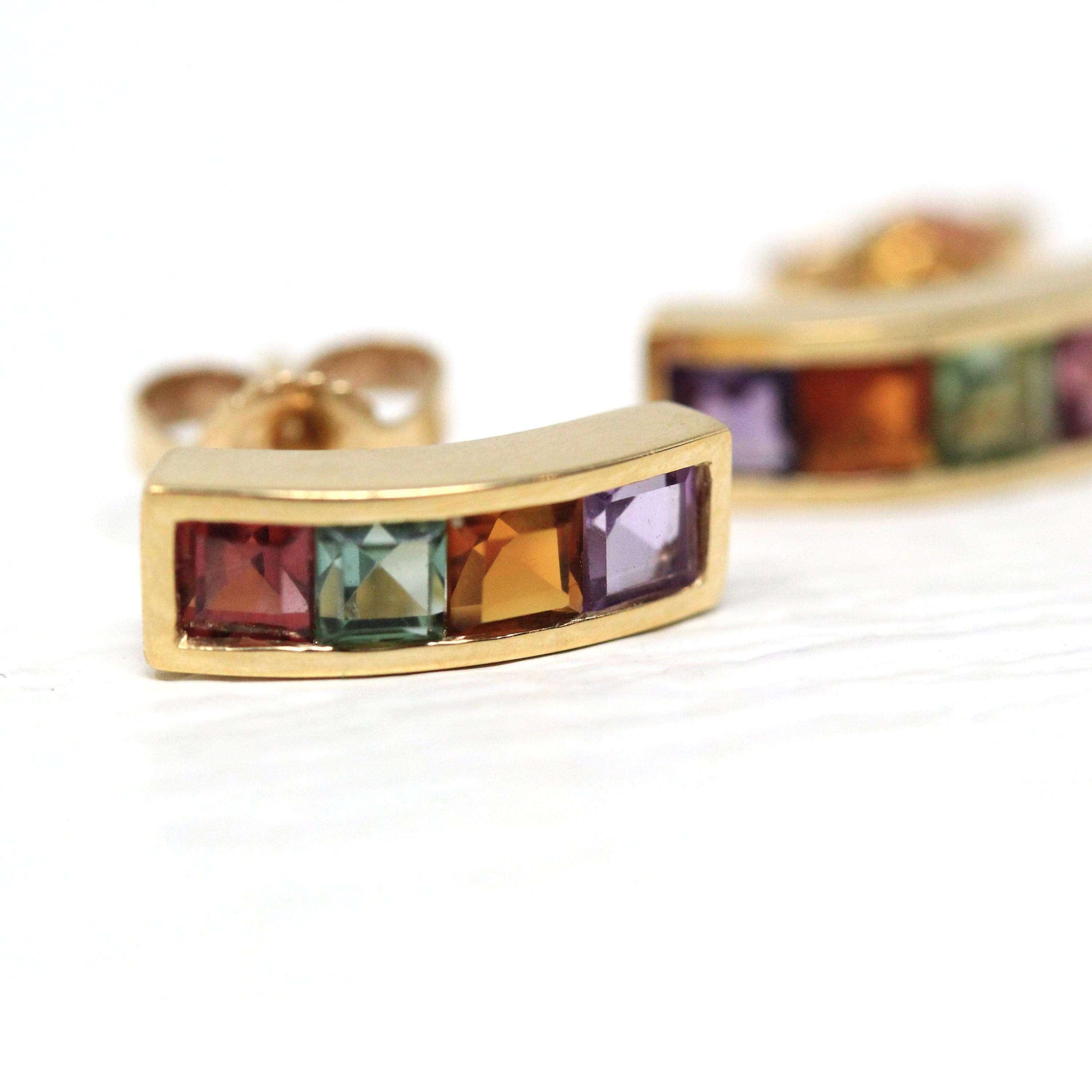 Retro Citrine Earrings - Vintage 22k Yellow Gold Pierced Push Back Dangle Dark Orange .67 CT Gems - Circa 1970s Era Fine Statement Jewelry