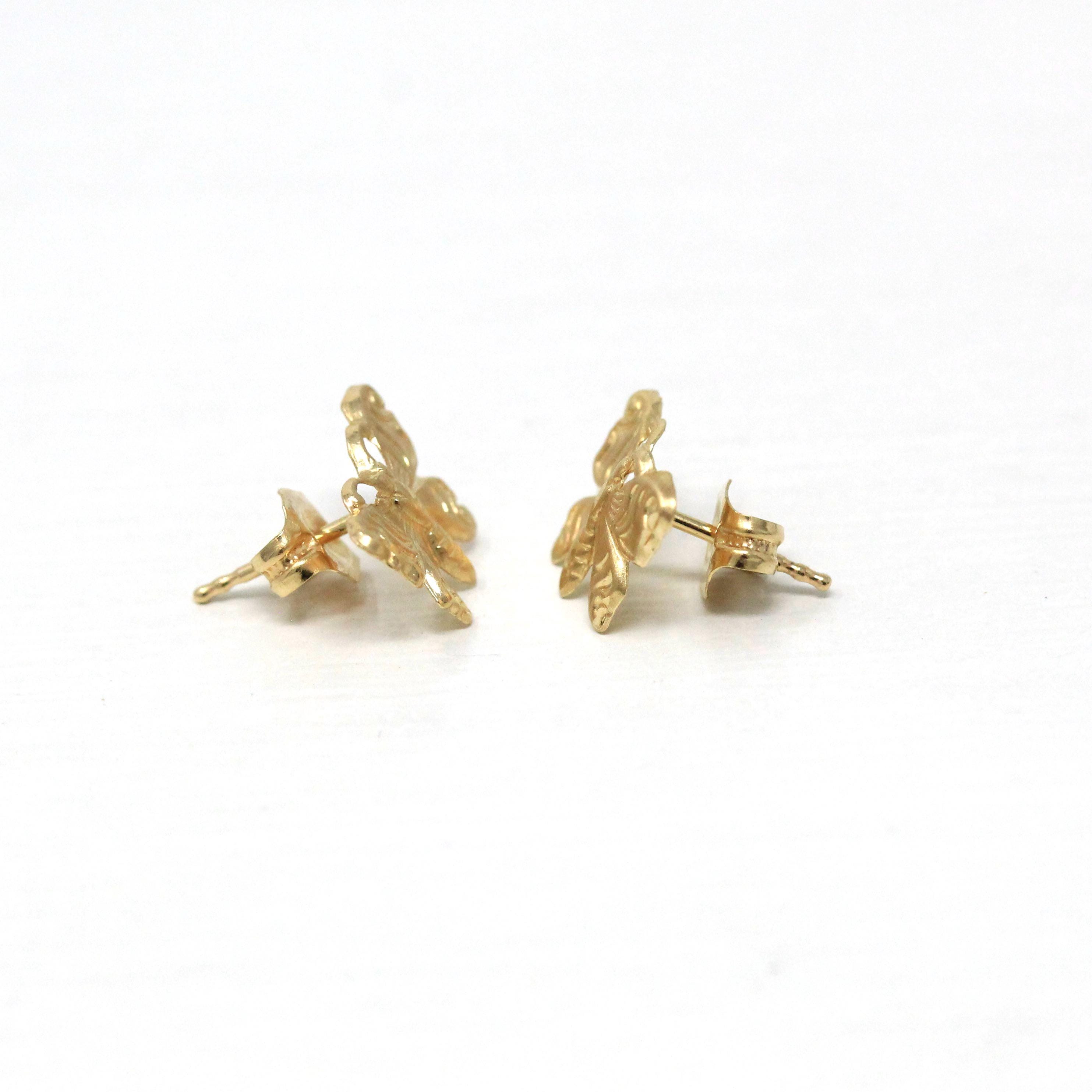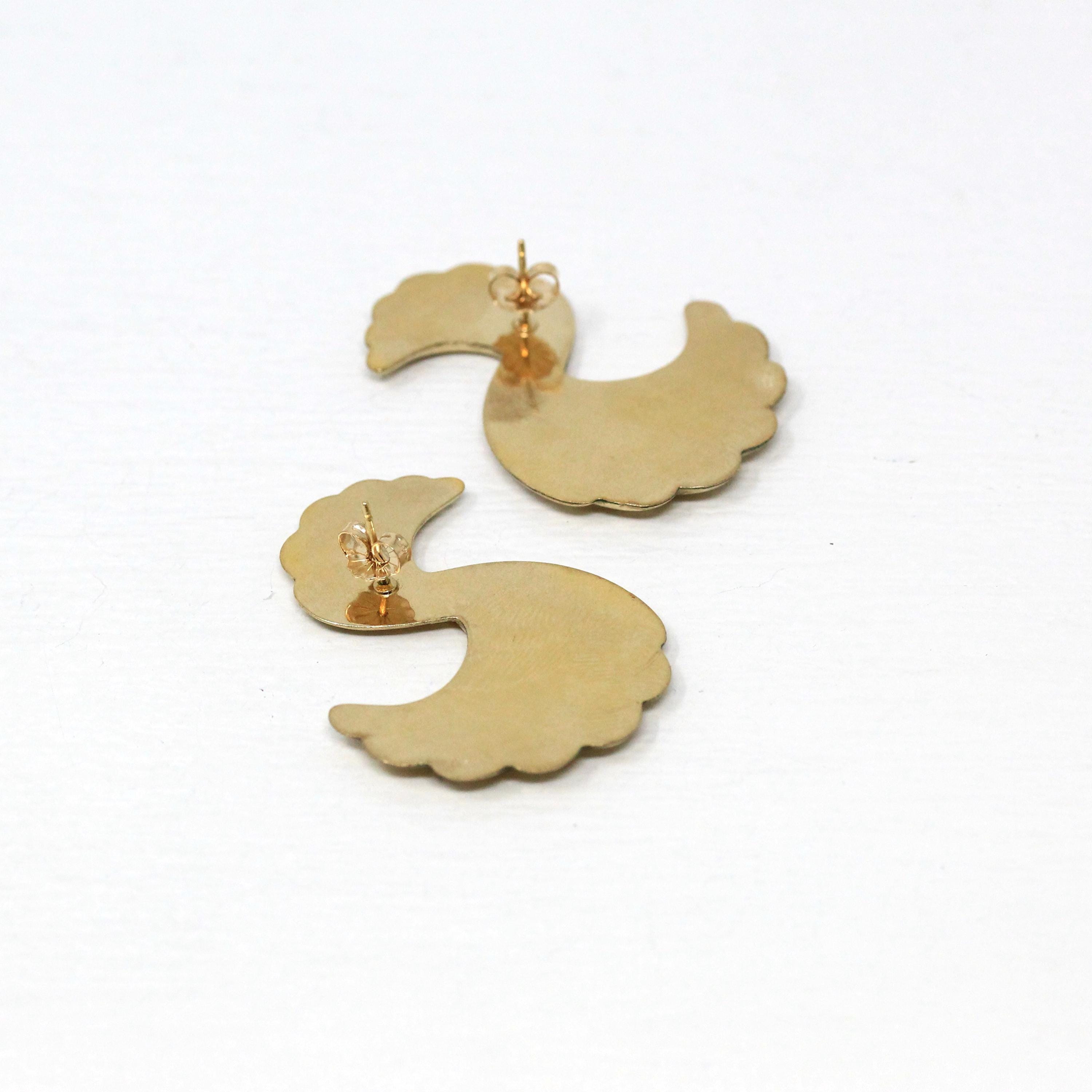 Vintage Scarab Earrings - Retro 14k Yellow Gold Carved Natural Carnelian Gemstones - Circa 1960s Era Egyptian Revival Style Beetle Jewelry