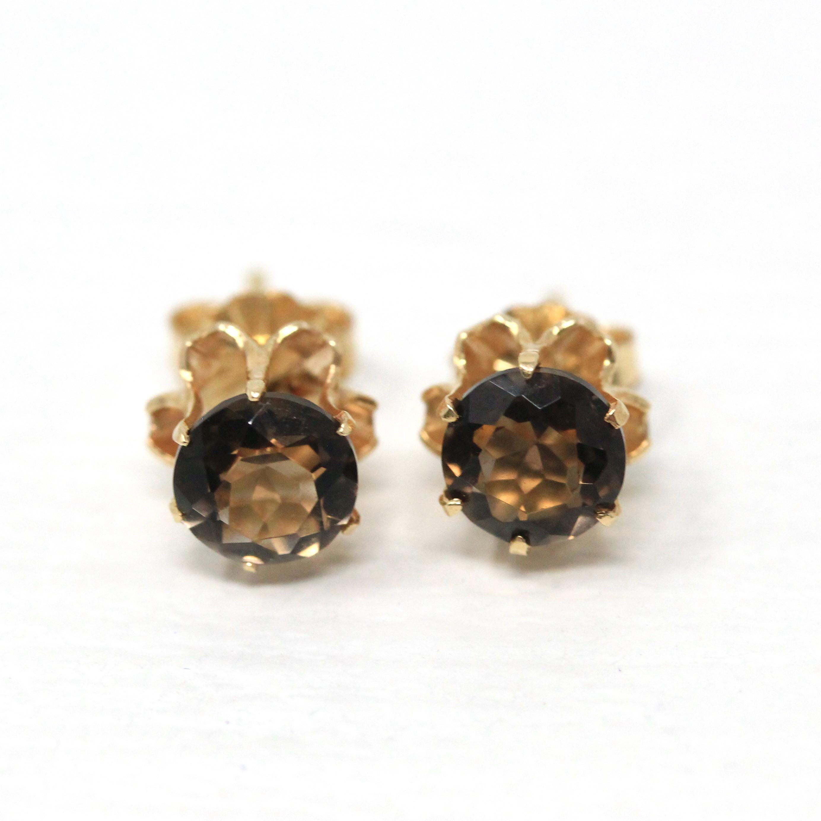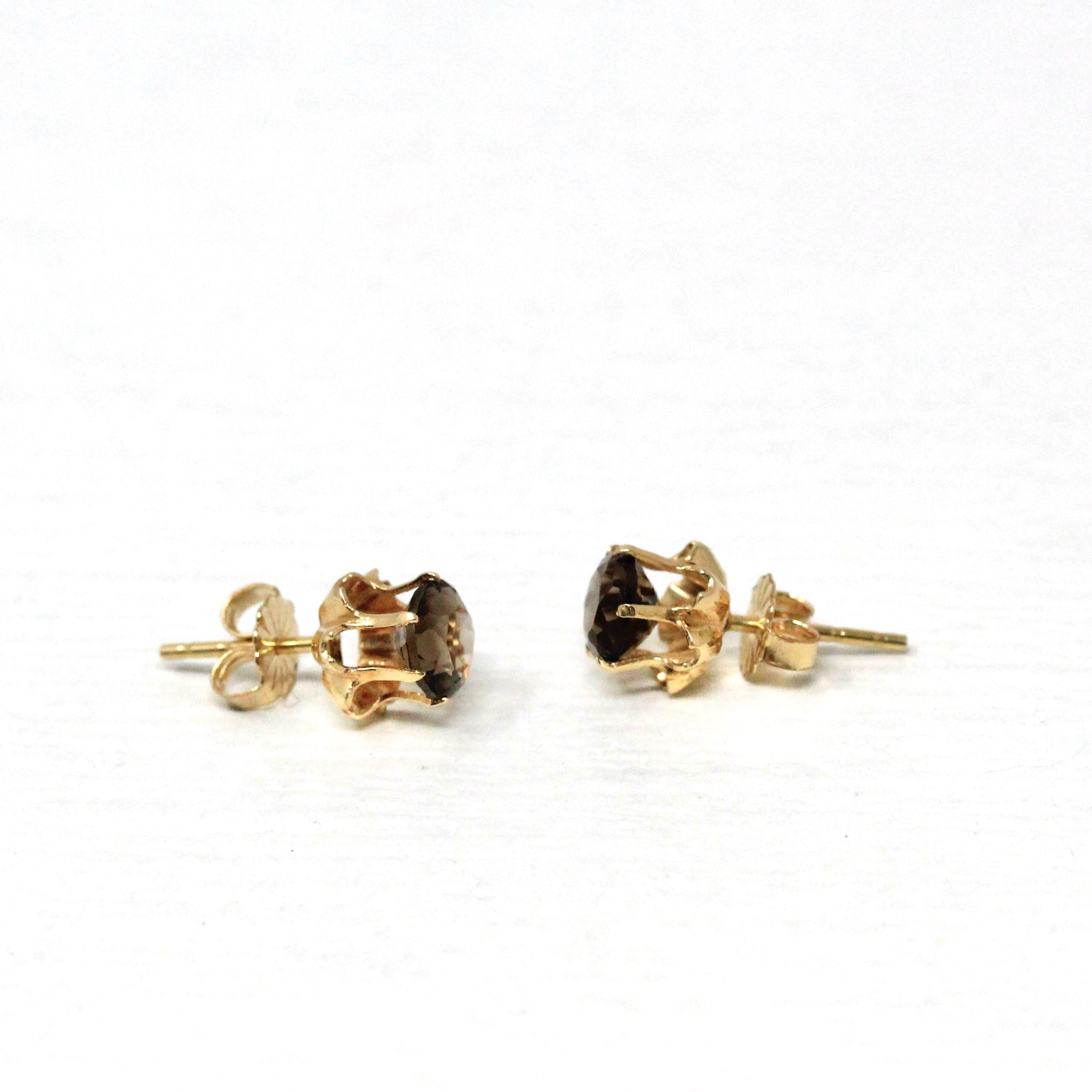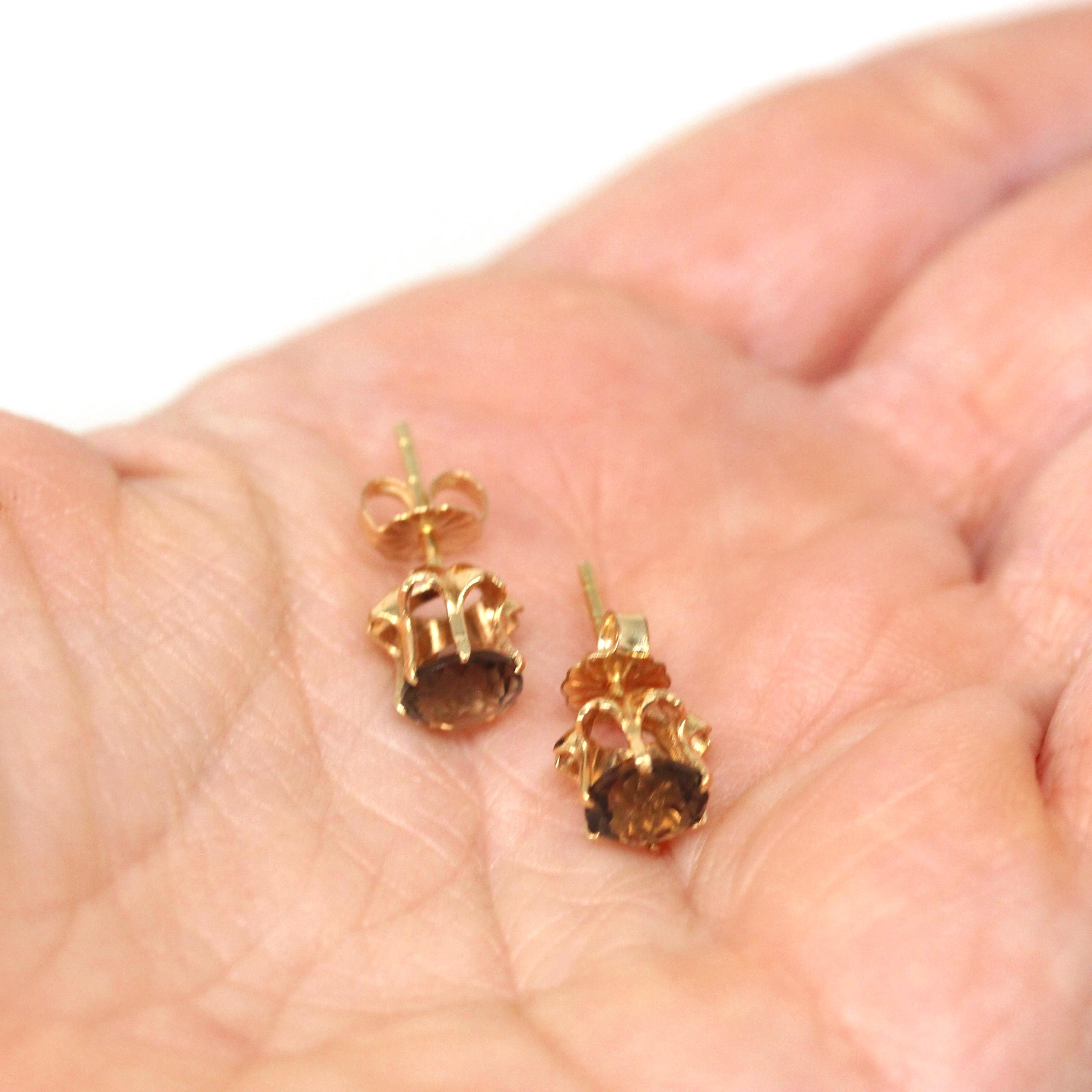 Goldstone Glass Earrings - Retro 10k Rosy Yellow Gold Oval Sparkling Brown Gems - Circa 1960s Era Screw Back Style Fine PSCO Jewelry