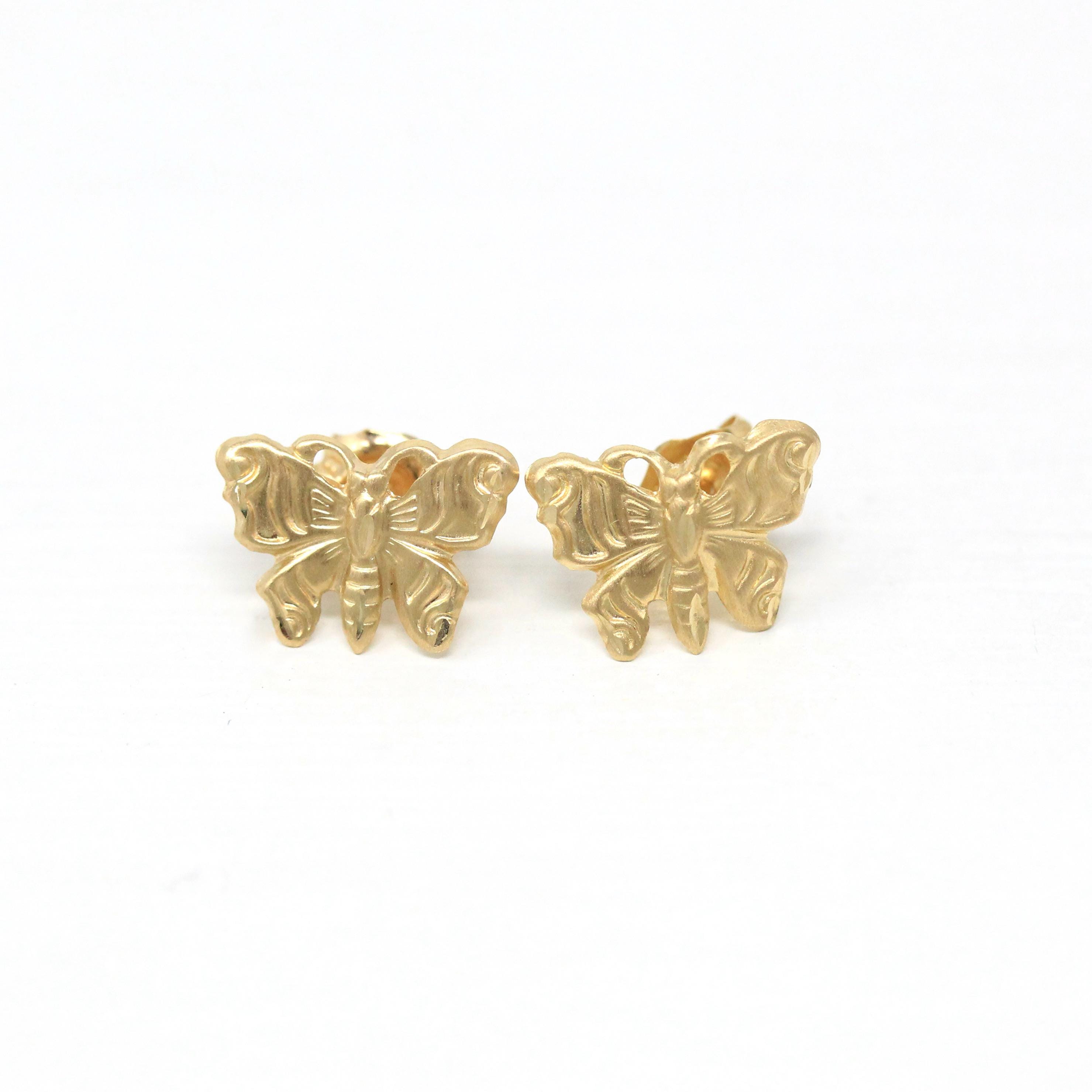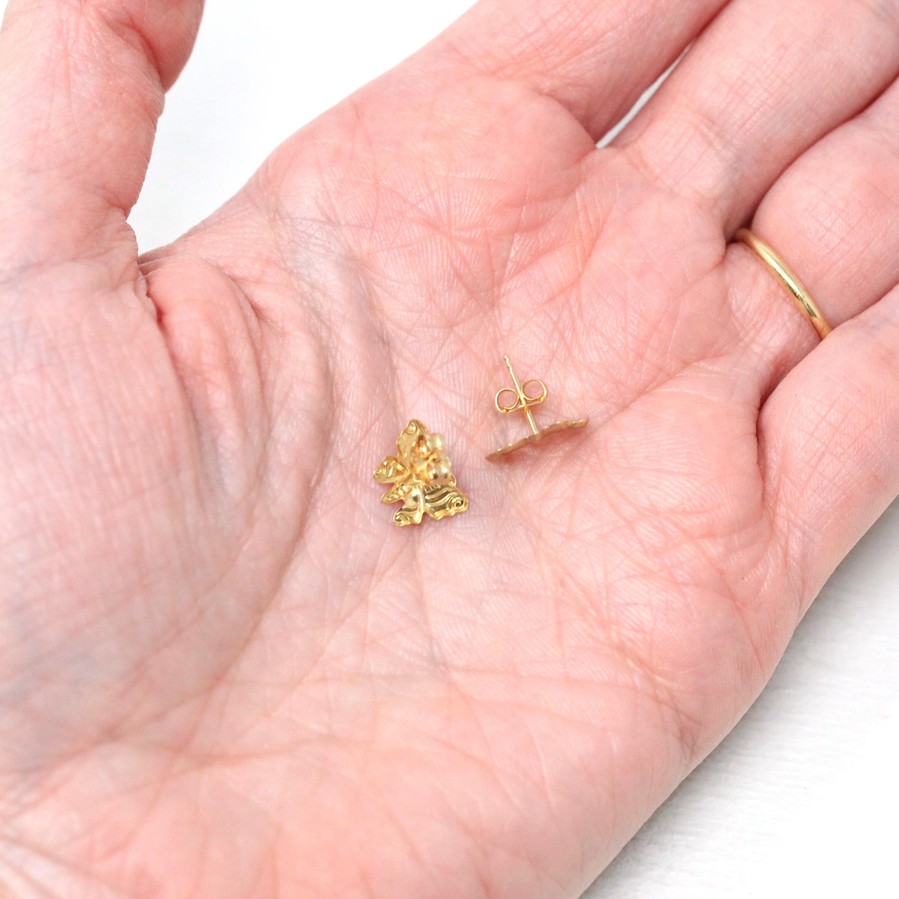 Gold Flake Earrings - Estate 14k Gold Filled Push Backs Posts - Vintage Circa 1980s Era Drop Dangle Alaskan Nugget Souvenir Fine Jewelry