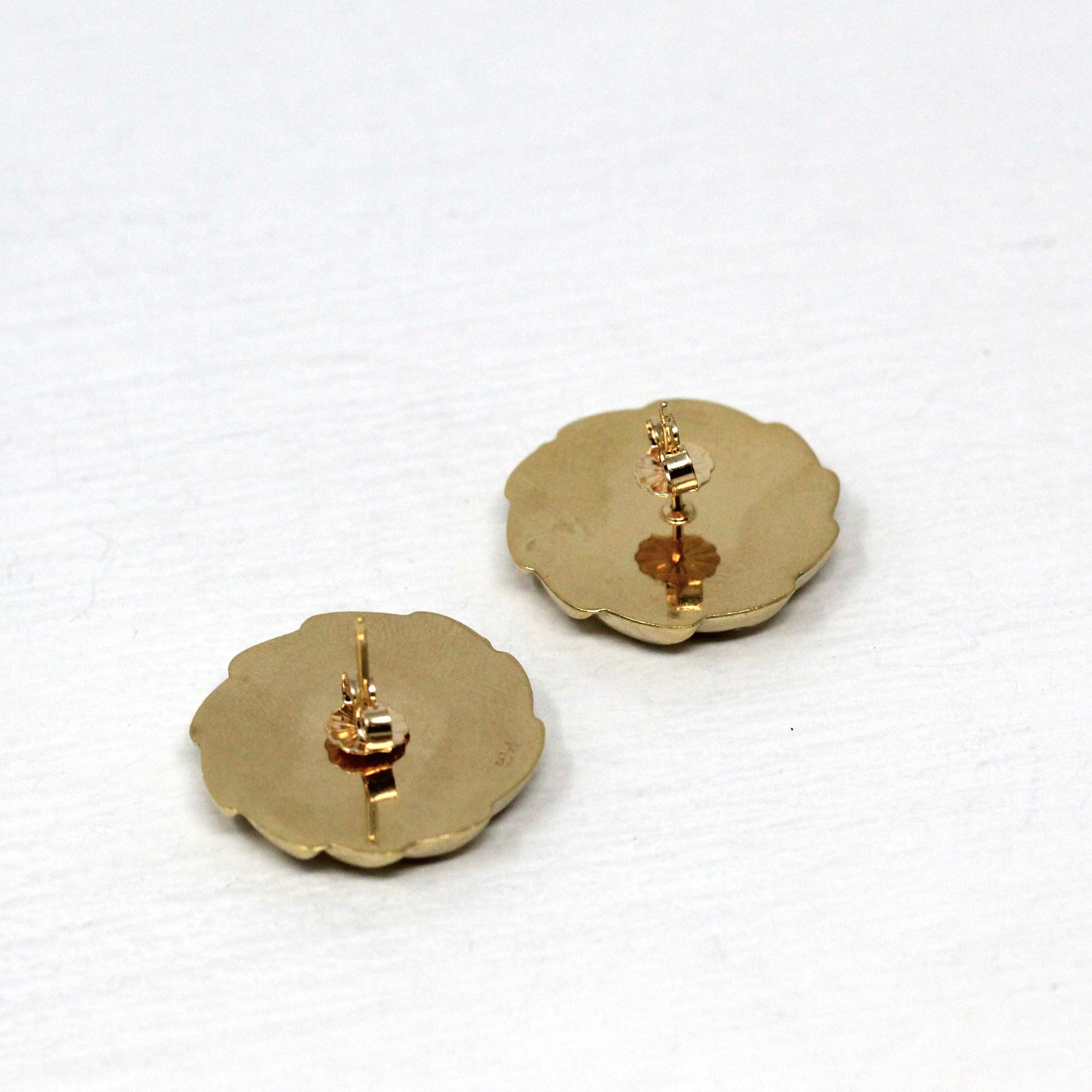 Vintage Cameo Earrings - Retro 10k Yellow Gold Oval Carved Shell Portrait Push Backs - Circa 1960s Era Fashion Accessories 60s Fine Jewelry