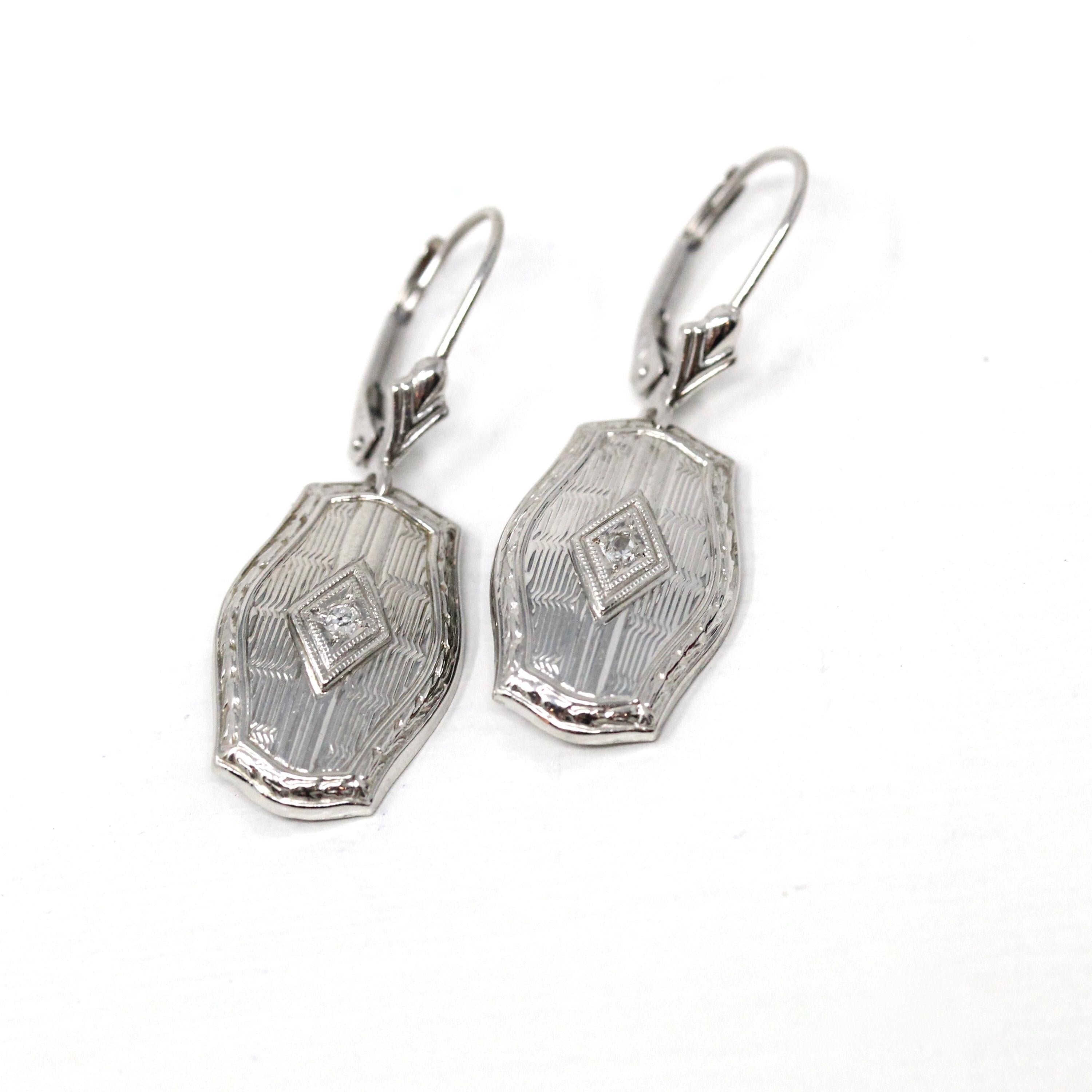 Vintage Pinwheel Earrings - Retro 10k Yellow & White Gold Natural Diamond Flower Screwback Studs - Circa 1940s Era Pierced Fine 40s Jewelry