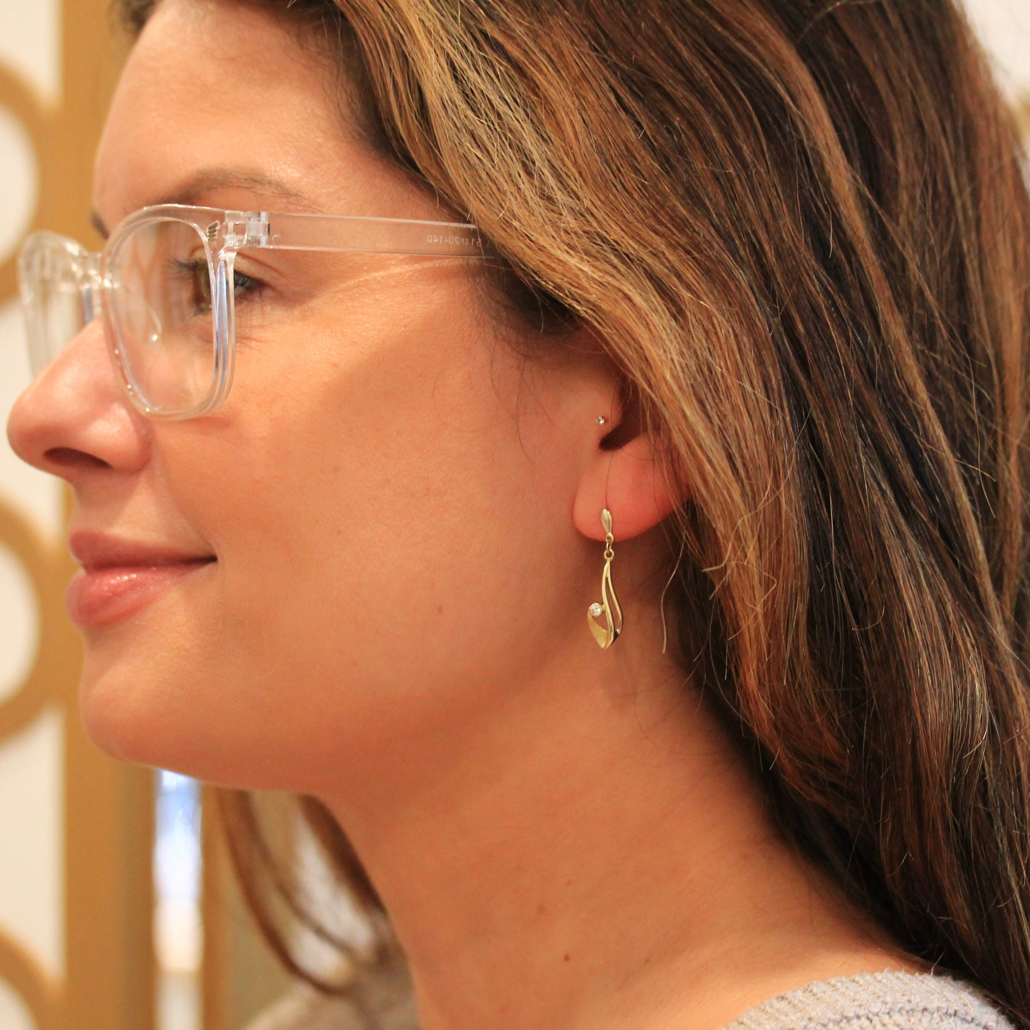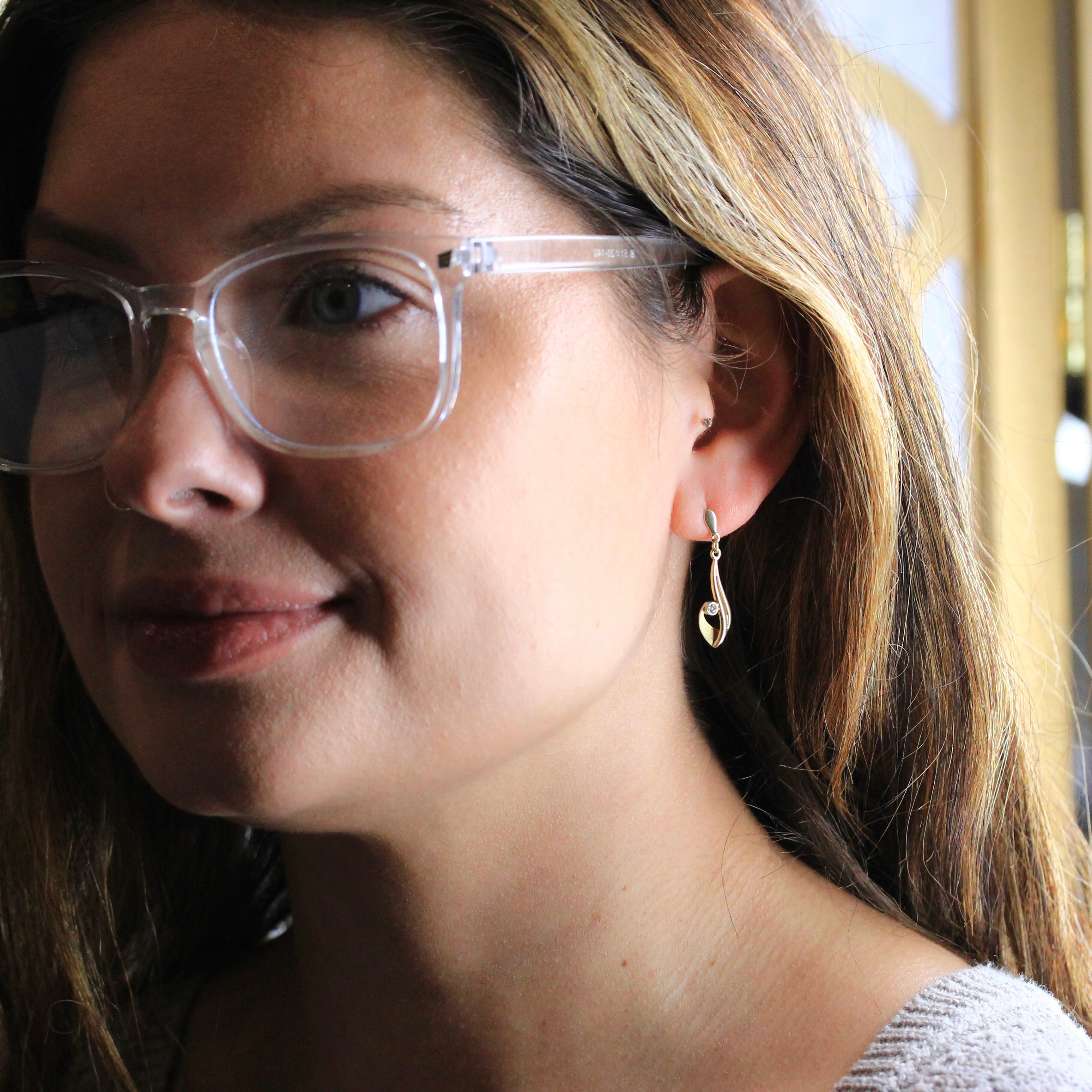 Cubic Zirconia Earrings - Modern 10k Yellow Gold Pierced Push Backs Dangle Drop Style - Estate Circa 2000's Era Fashion Accessory Jewelry
