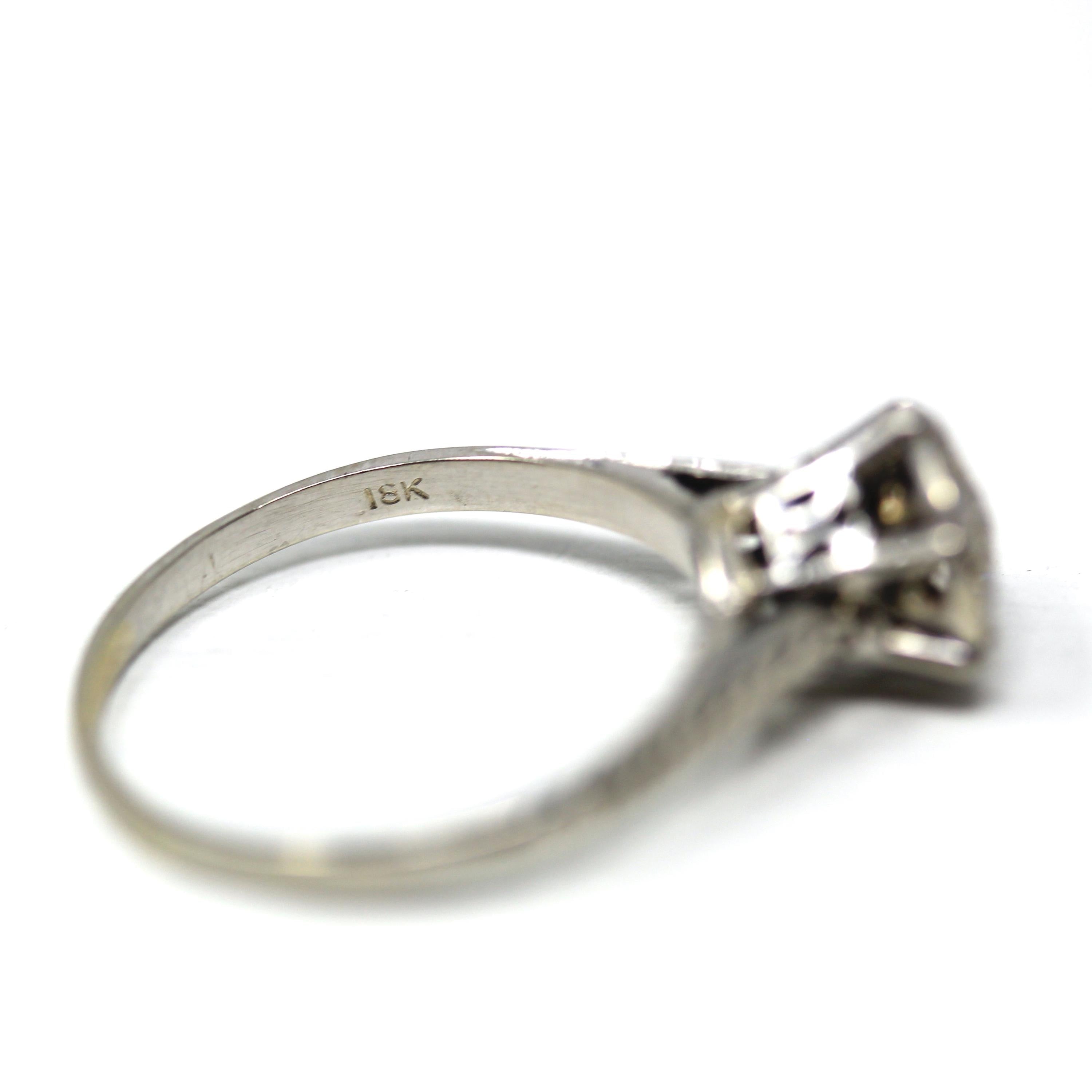 CONDITION - Good antique condition. Piece has been professionally cleaned. Stones are all secure and designs have been well preserved. Beautiful Art Deco engagement ring!