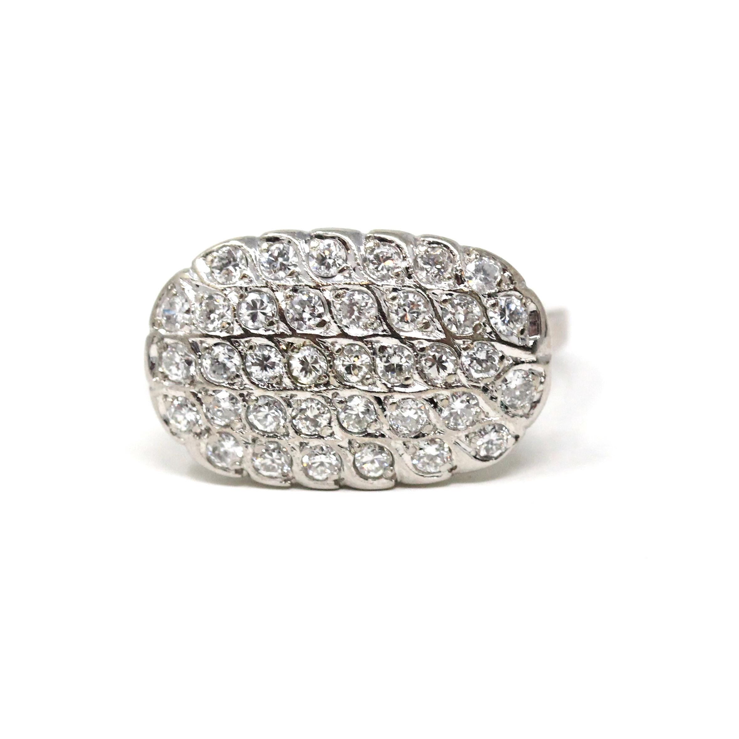 Diamond Princess Ring - Vintage 14k White Gold Natural .90 CTW Diamonds Statement - Mid Century 1950s Era Size 8 1/4 Cocktail Fine Jewelry