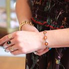 Guilloche Enamel Bracelet - Vintage Silver Orange Yellow Flower Panel Links - Circa 1940s Signed Einar Modahl Collectible Norwegian Jewelry