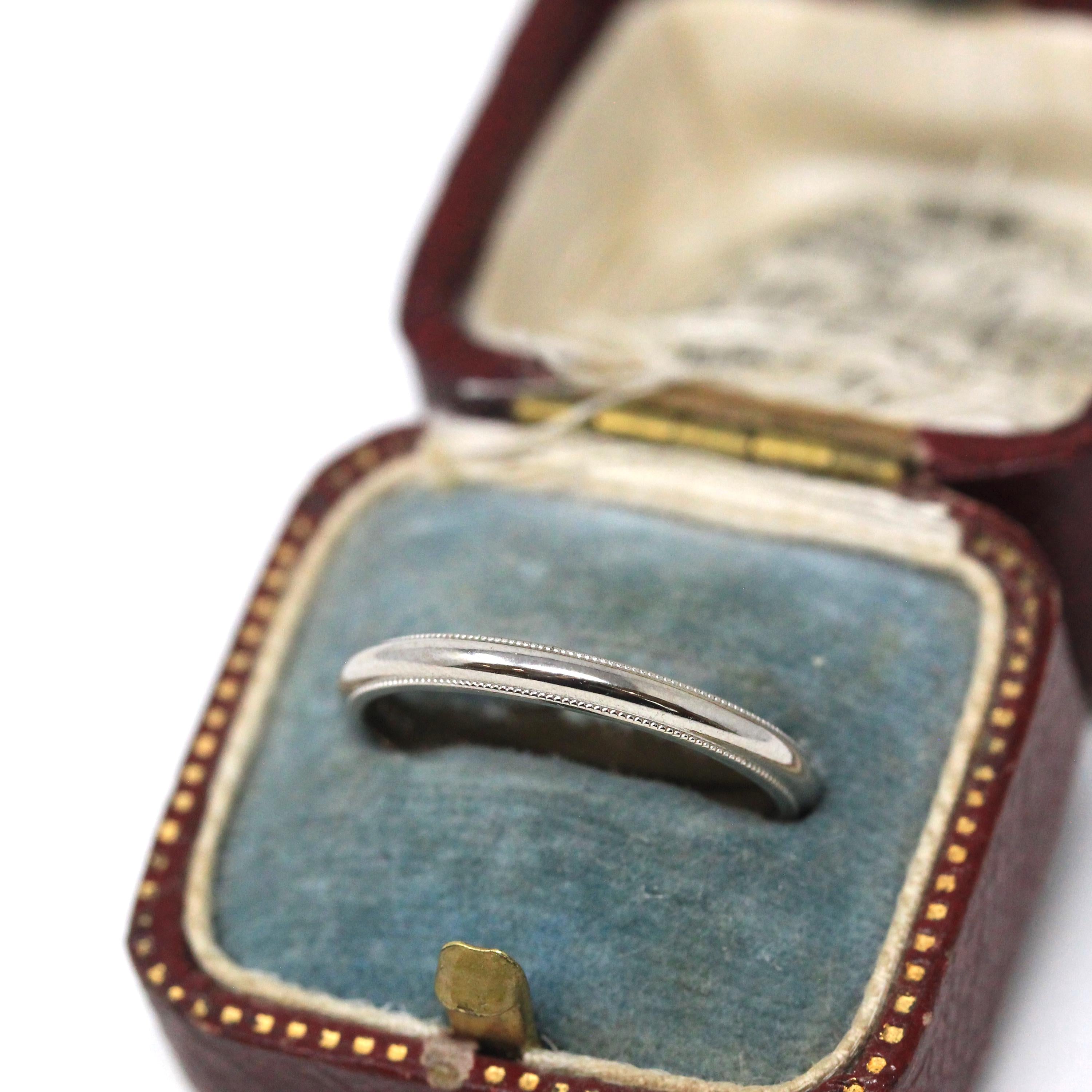 Vintage Wedding Band - Estate 14k White Gold Milgrain Eternity Designs Ring - Men's Unisex Size 7 1/2 Stacking Stylecrest Plain Fine Jewelry