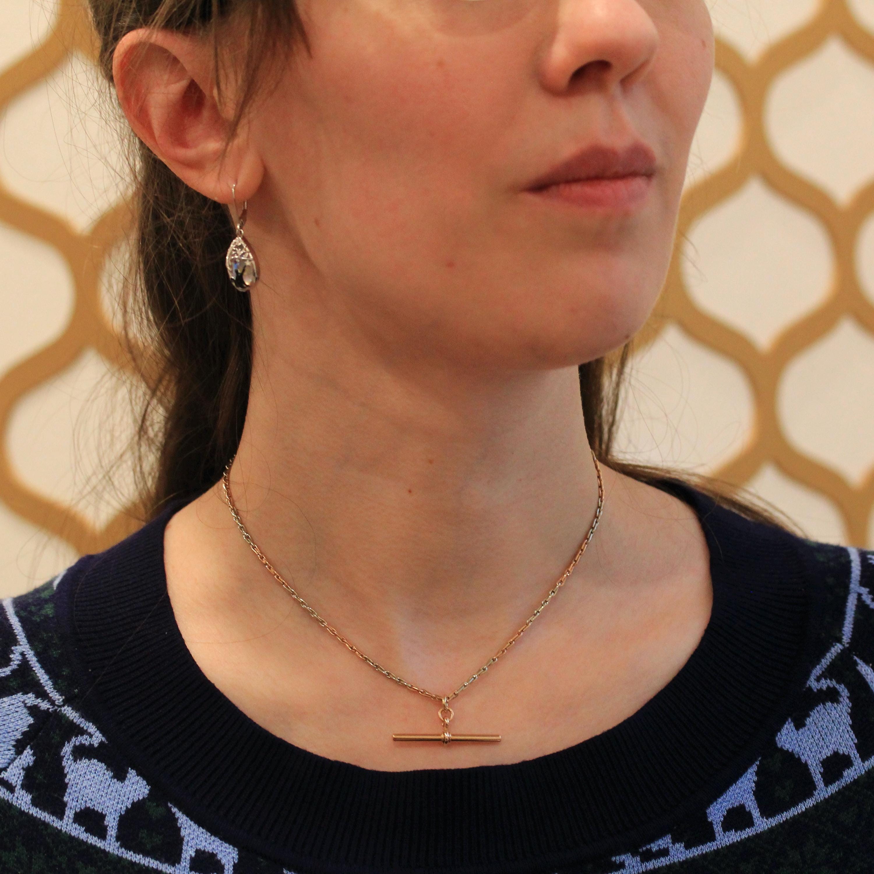 Pocket Watch Chain - Antique 9ct Rose White Two Tone Gold T Bar Swivel Clip Choker Necklace - Circa 1920s Era Fashion Accessory Fine Jewelry