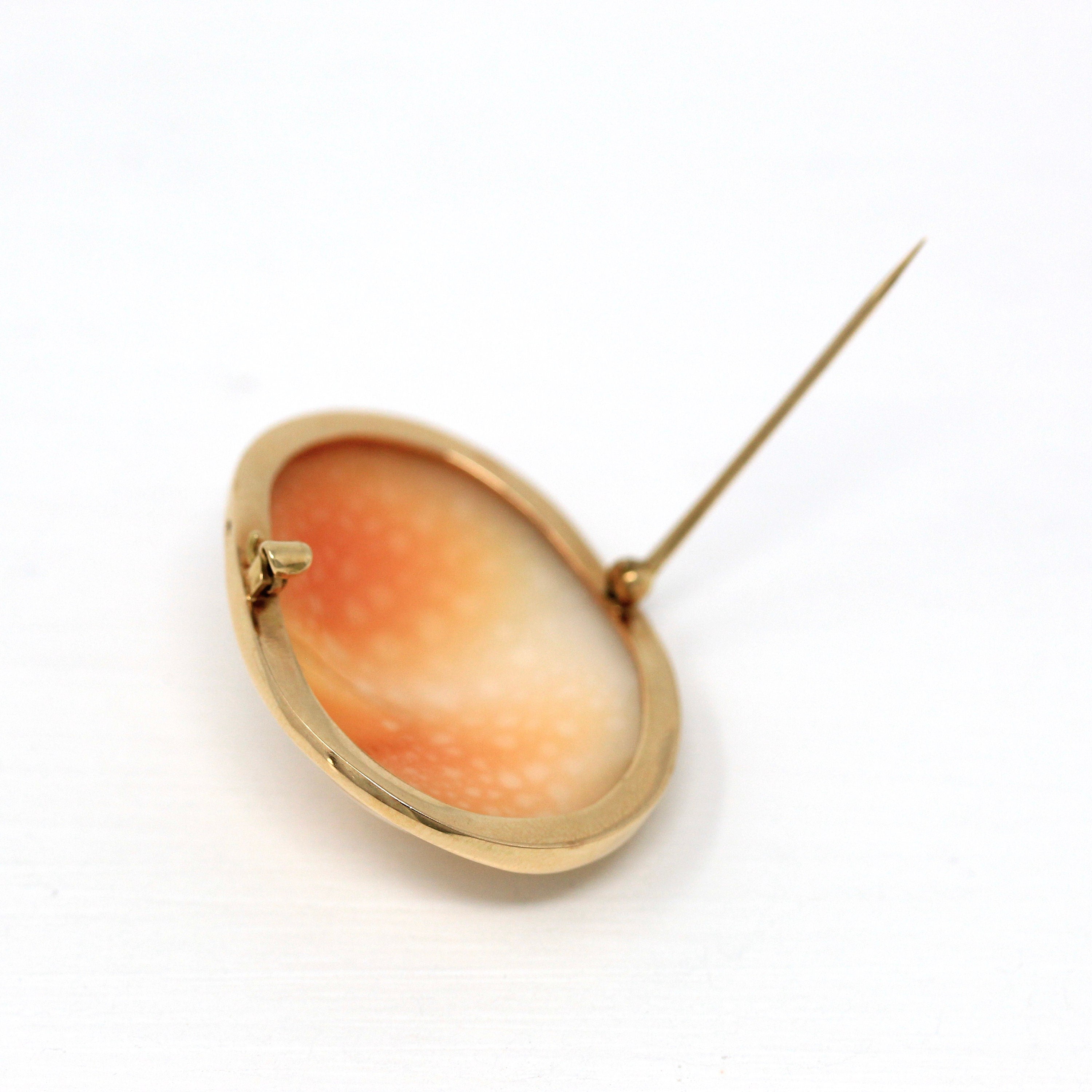 Antique Cameo Brooch - Edwardian 14k Yellow Gold Oval Carved Shell Warrior Pin - Vintage Circa 1910s Era Fashion Accessory Fine Jewelry