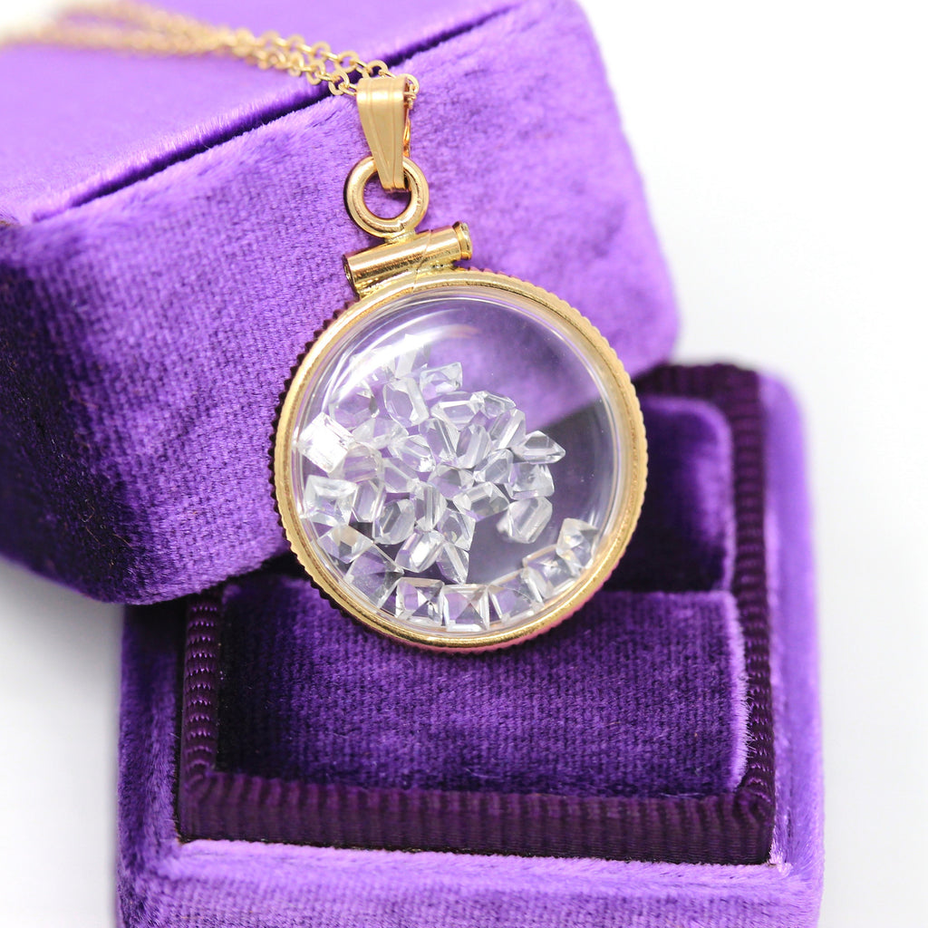 Empty Shaker Locket - New 14k Gold Filled Clear Lucite Pendant Necklace Charm - Customizable Dime Size Double Sided Keepsake Gems Jewelry