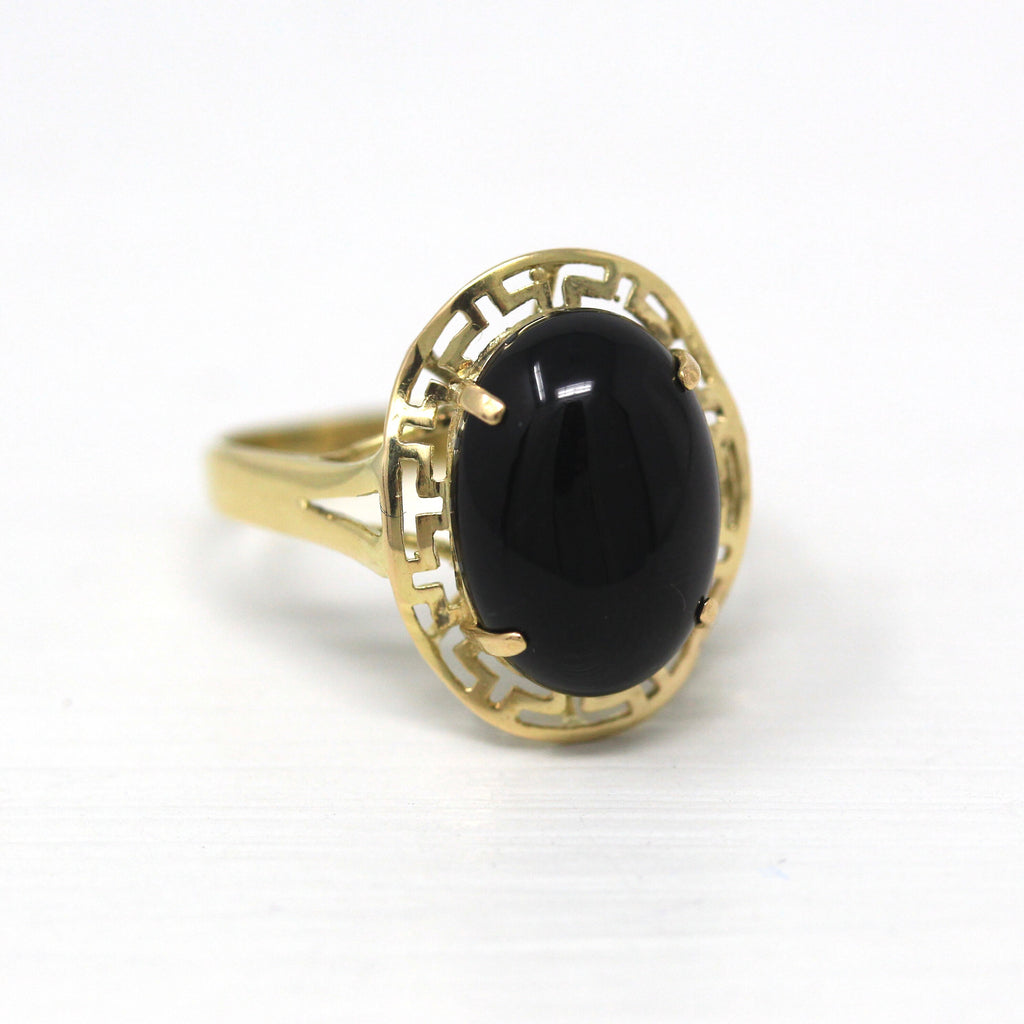 Blank Signet Ring - Estate 10k Yellow Gold Square Oval East West Personalize Engrave - Modern Circa 2000's Size 6 1/2 Initials Fine Jewelry
