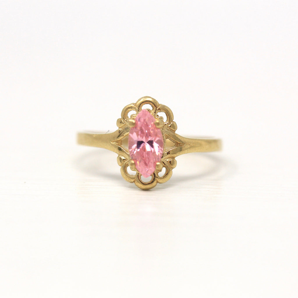 Marquise Halo Ring - Modern 14k Yellow Gold Created Sapphire Natural Diamond Gemstones - Estate Circa 1990s Size 6 Engagement Fine Jewelry