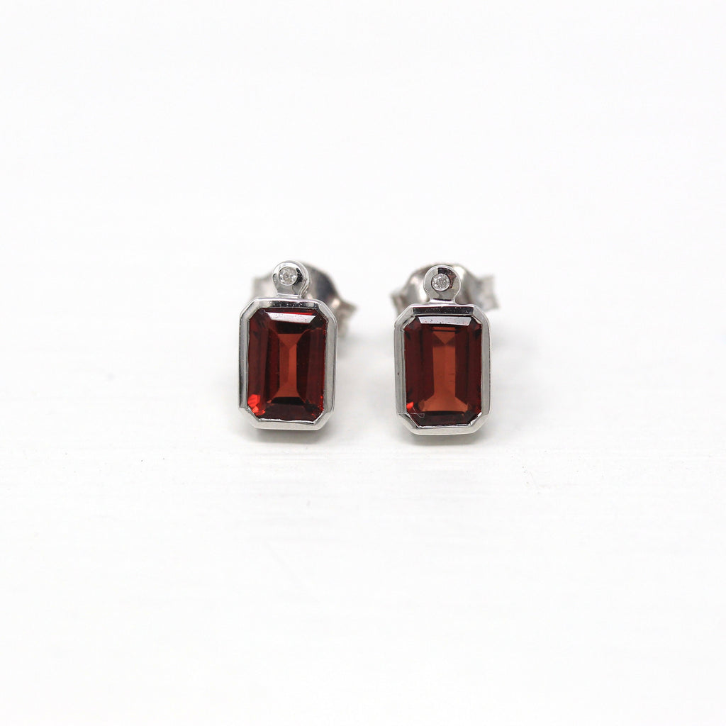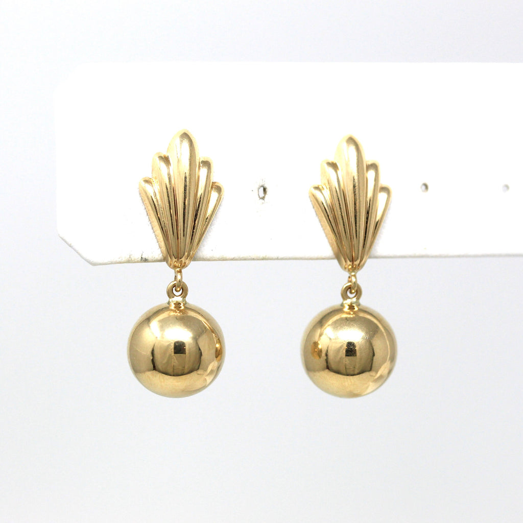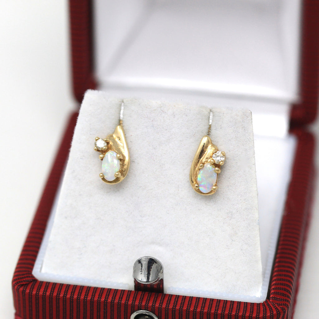 Cubic Zirconia Earrings - Modern 10k Yellow Gold Pierced Push Backs Dangle Drop Style - Estate Circa 2000's Era Fashion Accessory Jewelry