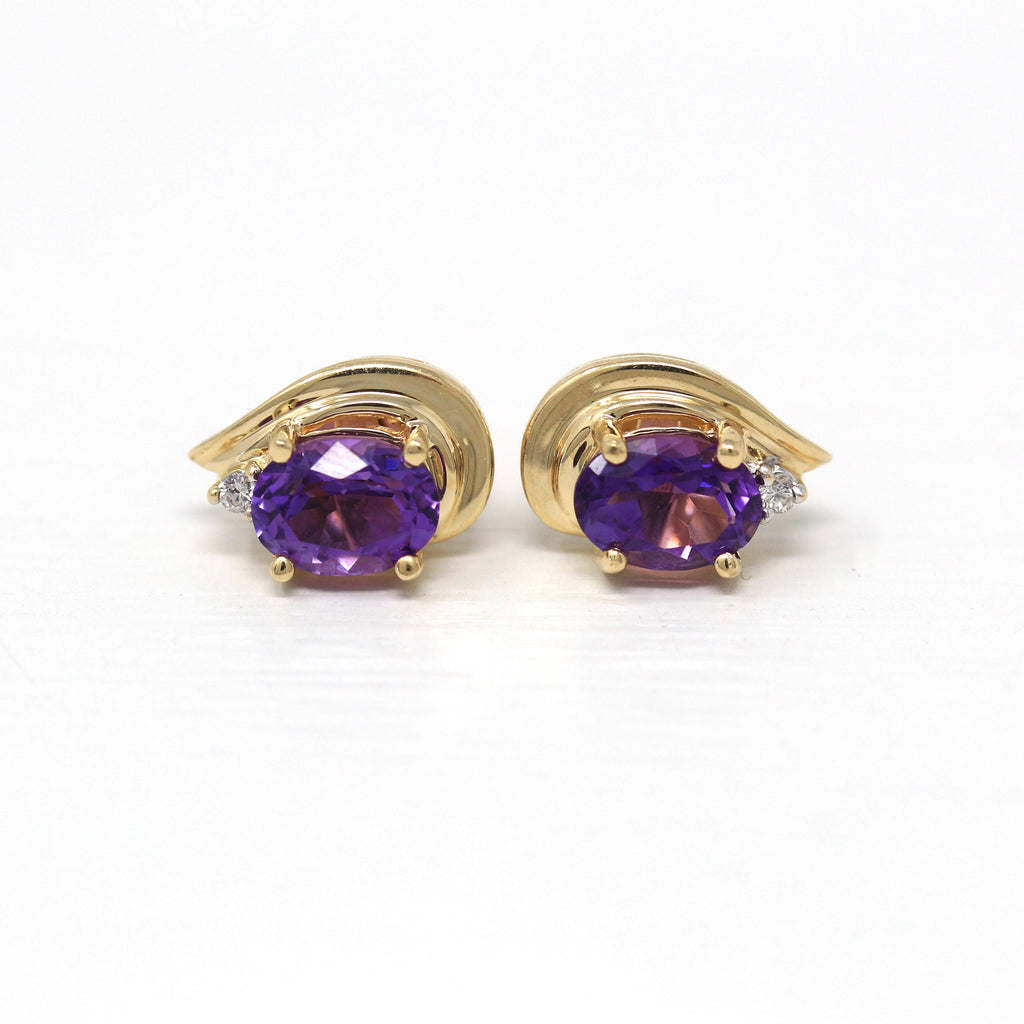 Amethyst Heart Ring - Modern 14k Yellow Gold Diamond & Purple Gemstone - Estate 2000s Era Size 9 February Birthstone Fine Statement Jewelry