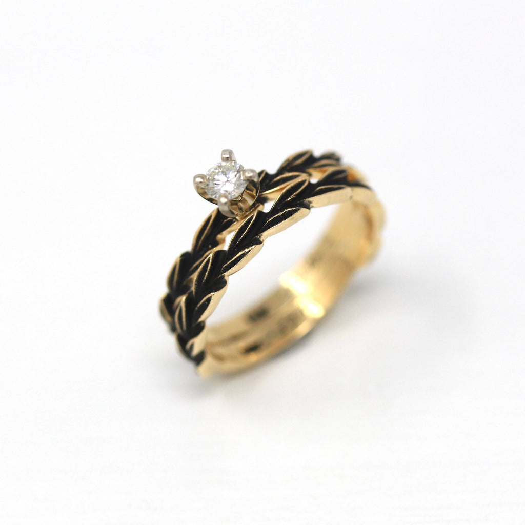 Vintage Nugget Ring - Estate 14k Yellow & White Gold .50 CTW Natural Diamond Band - Modern Size 7.5 Unisex Two Tone Textured Bridal Jewelry