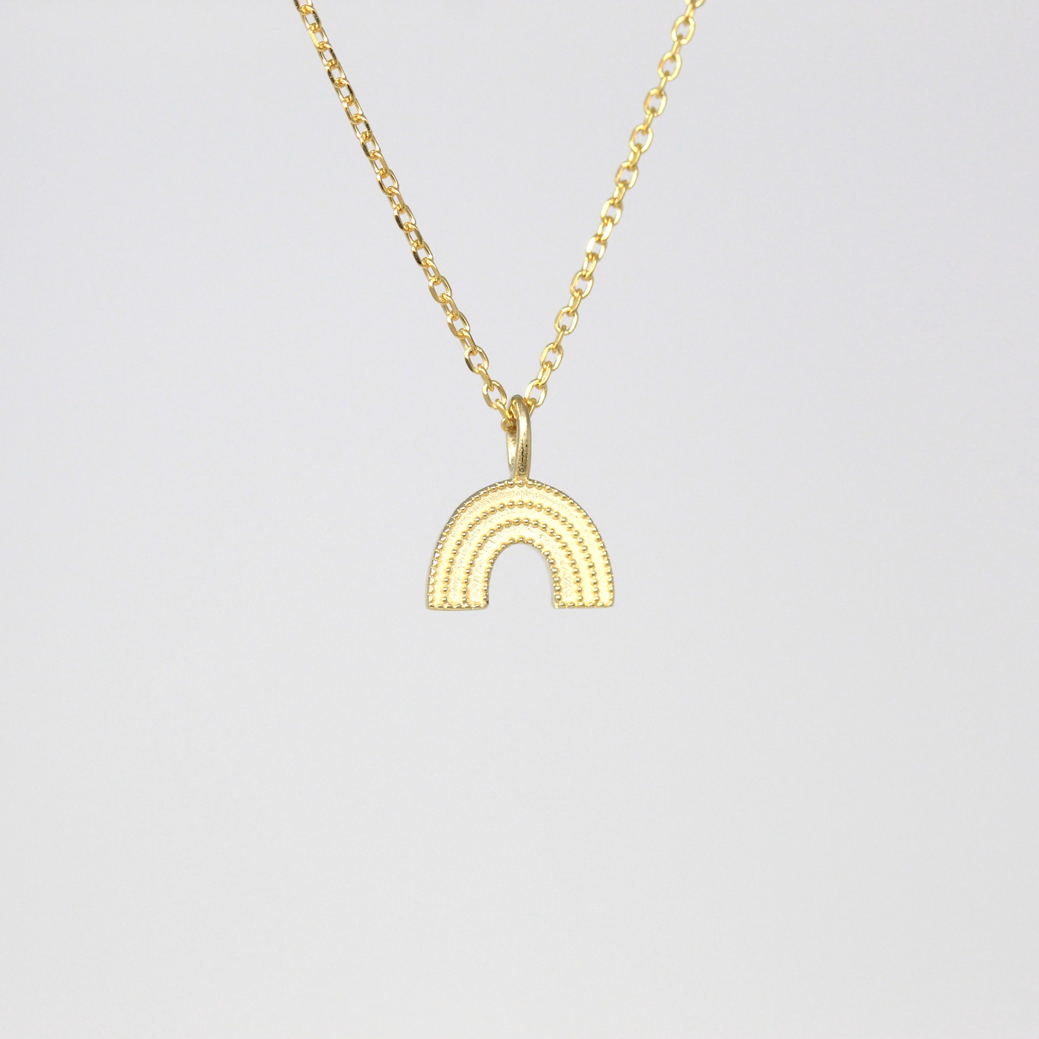 Modern Rainbow Charm - Handcrafted Designer 14k Gold Dainty Fine Pendant Necklace