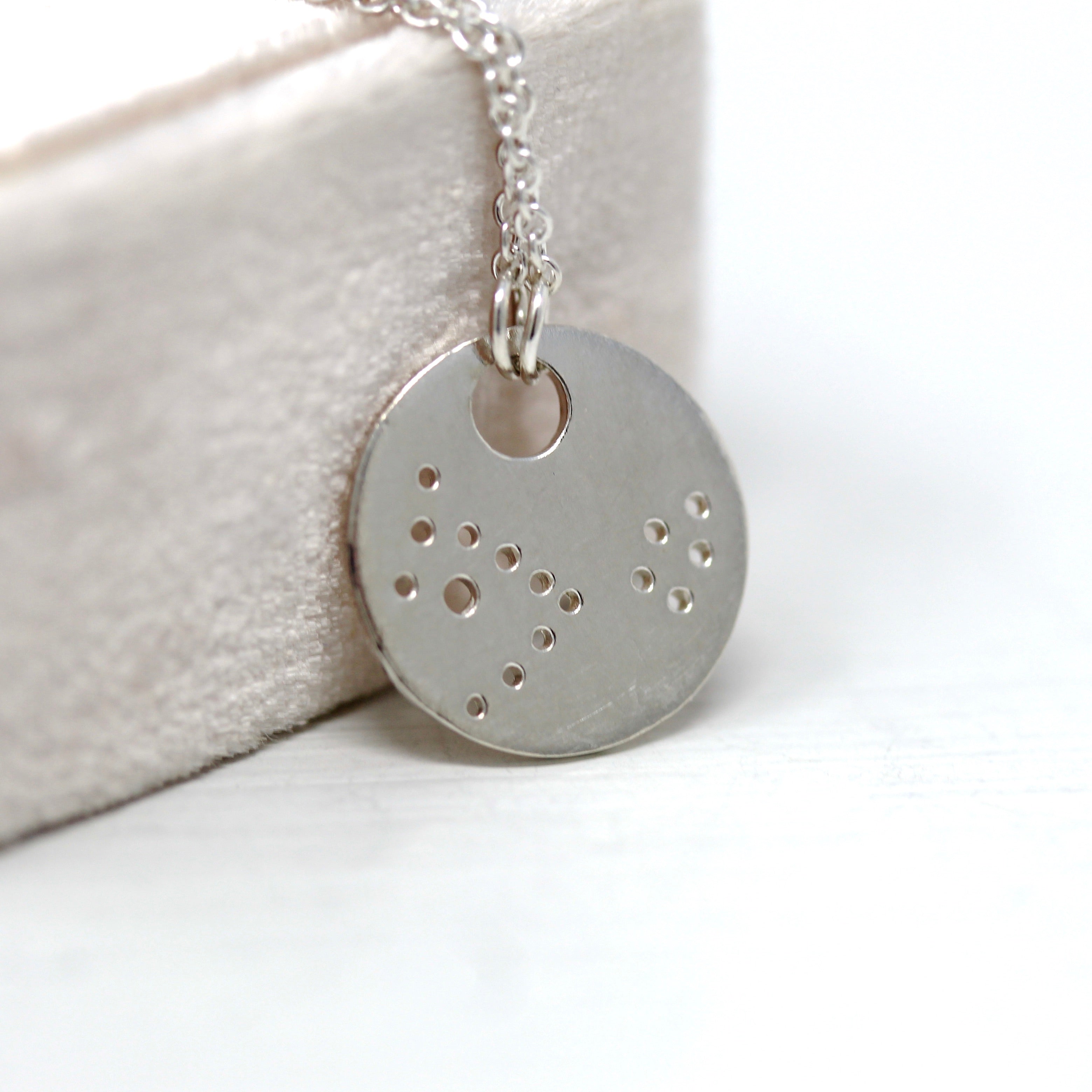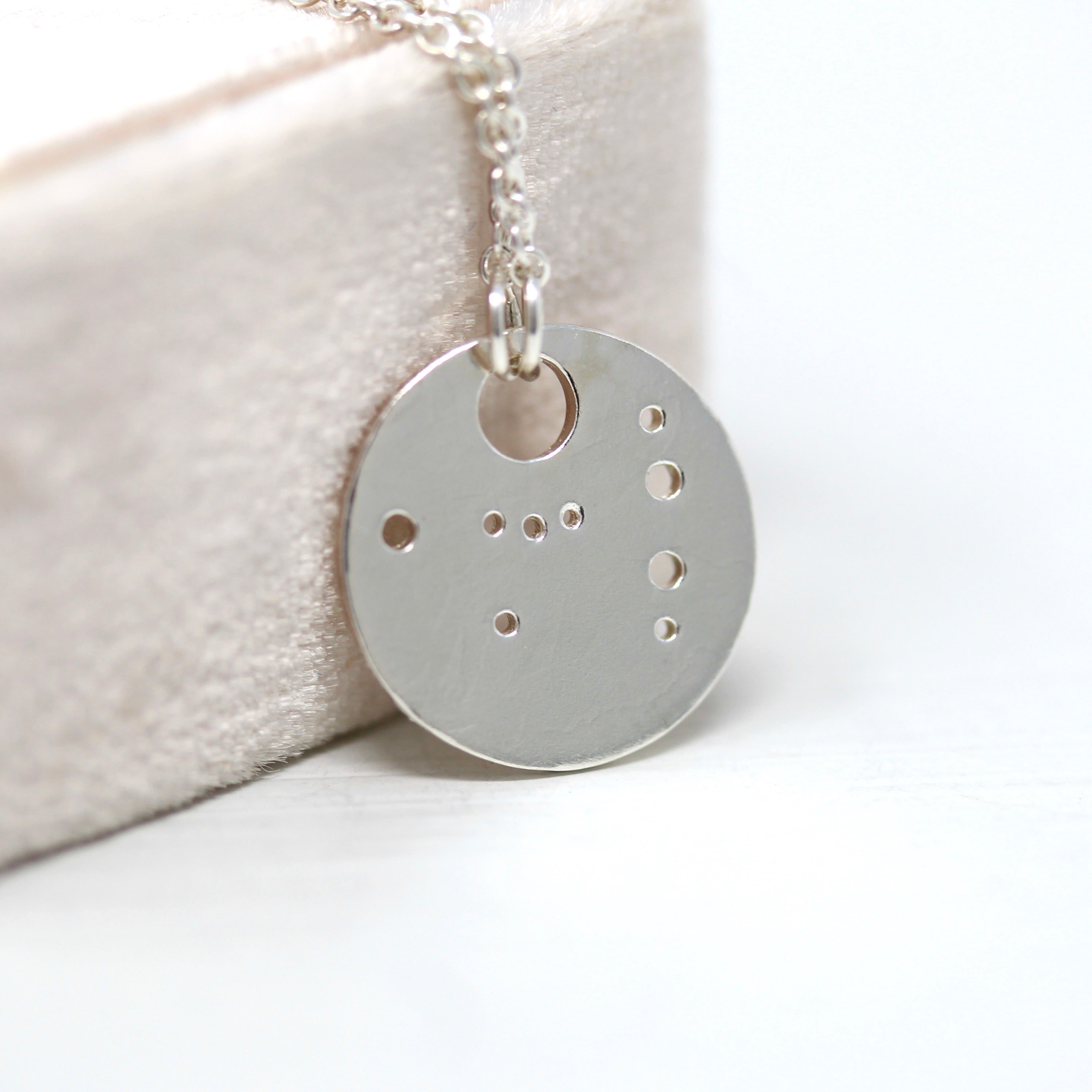 Zodiac Charm Necklace - Modern Handcrafted Designer Sterling Silver Pendant - Celestial Constellation Dainty Jewelry