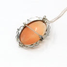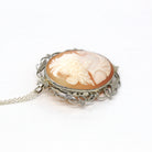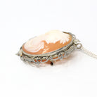 Vintage Cameo Pendant - Art Deco Era 10k White Gold Carved Shell Convertible Brooch Necklace - Circa 1930s Leaf Vine Design Pin Fine Jewelry