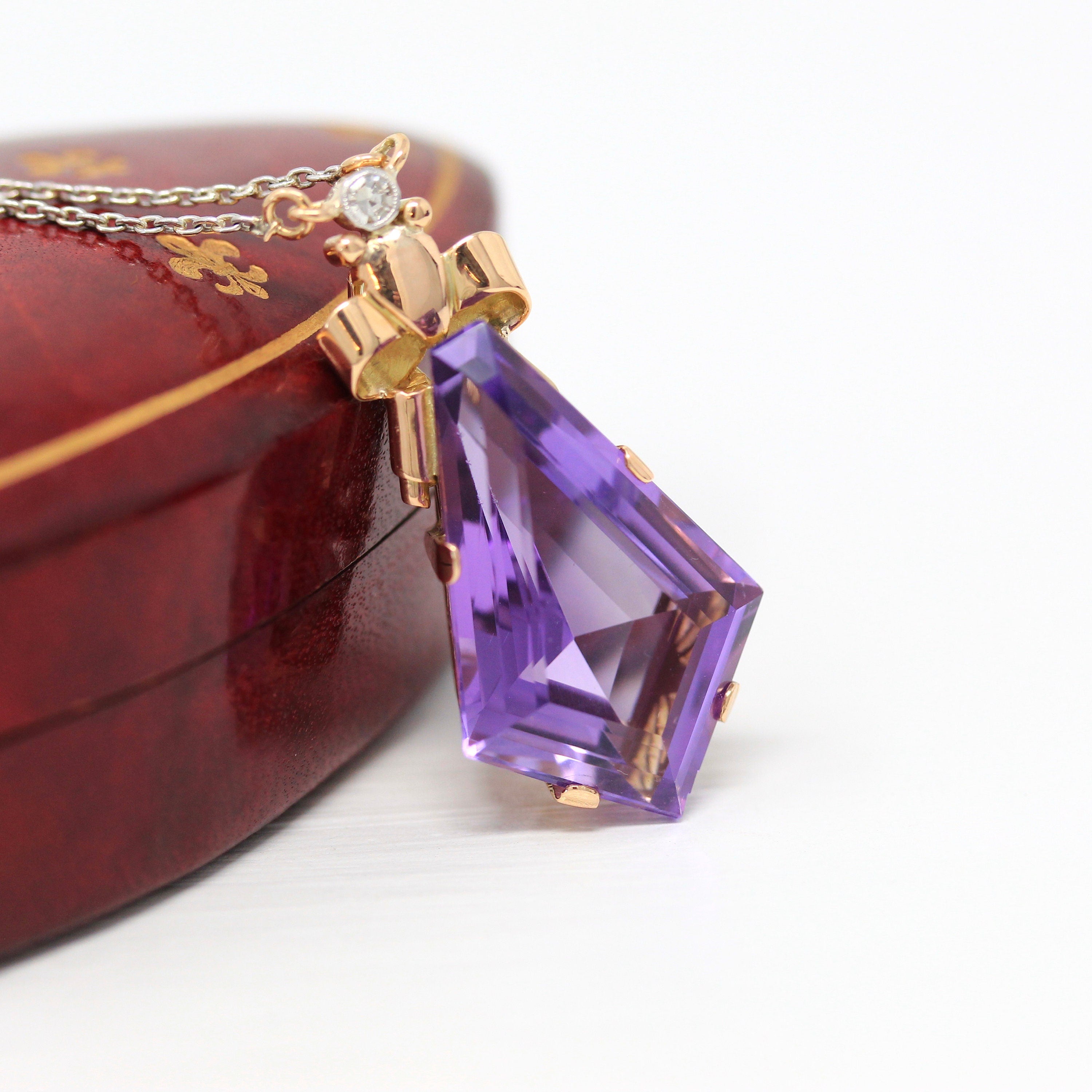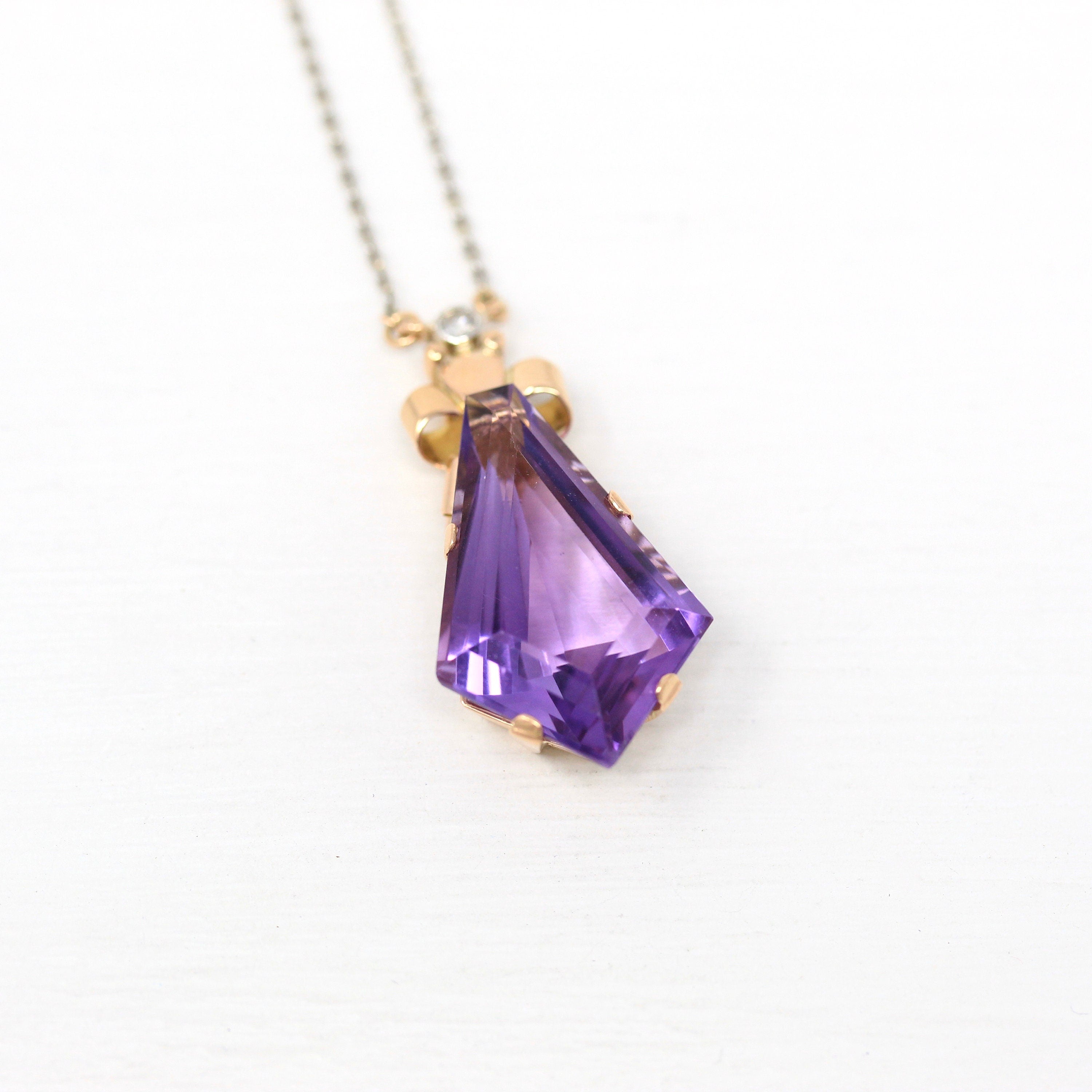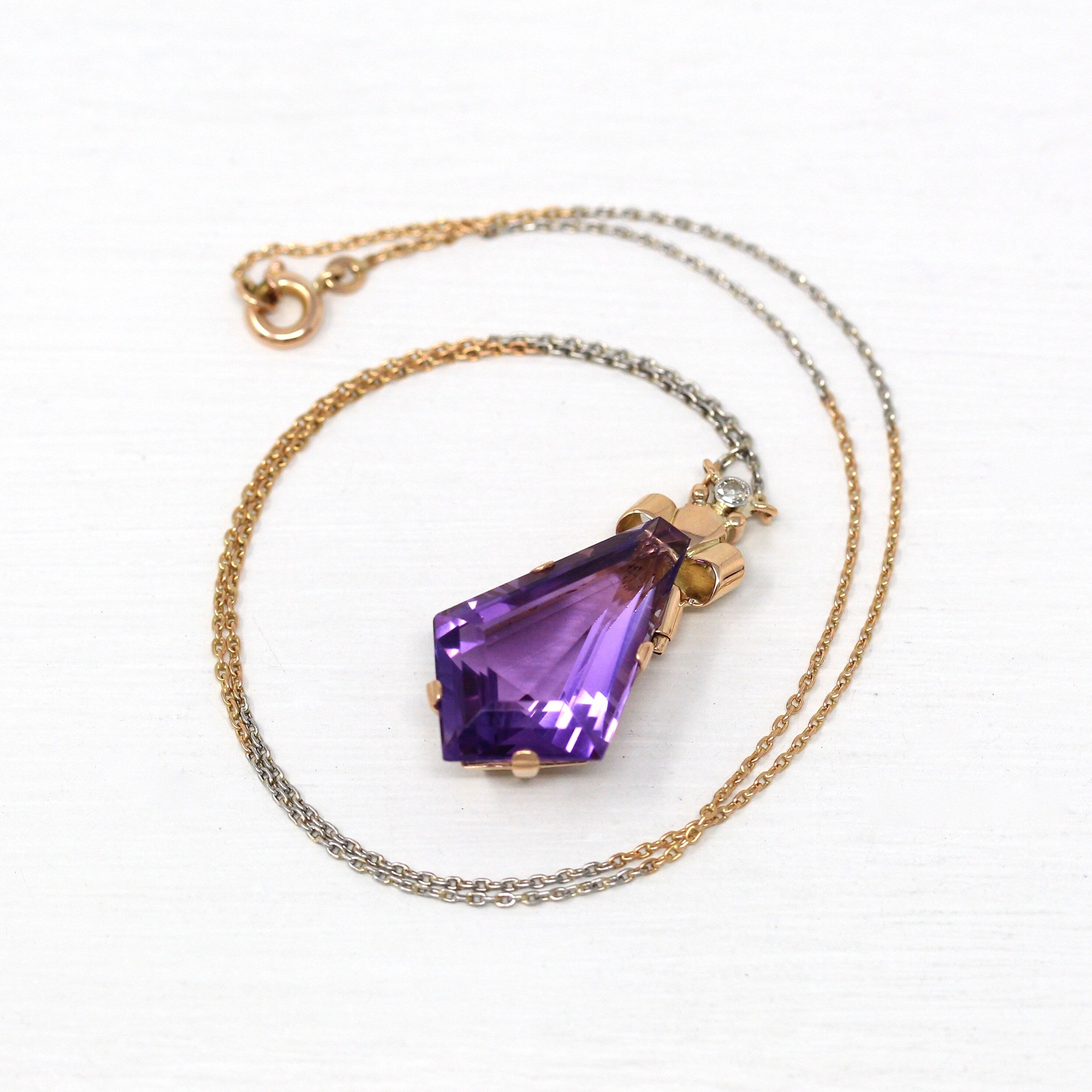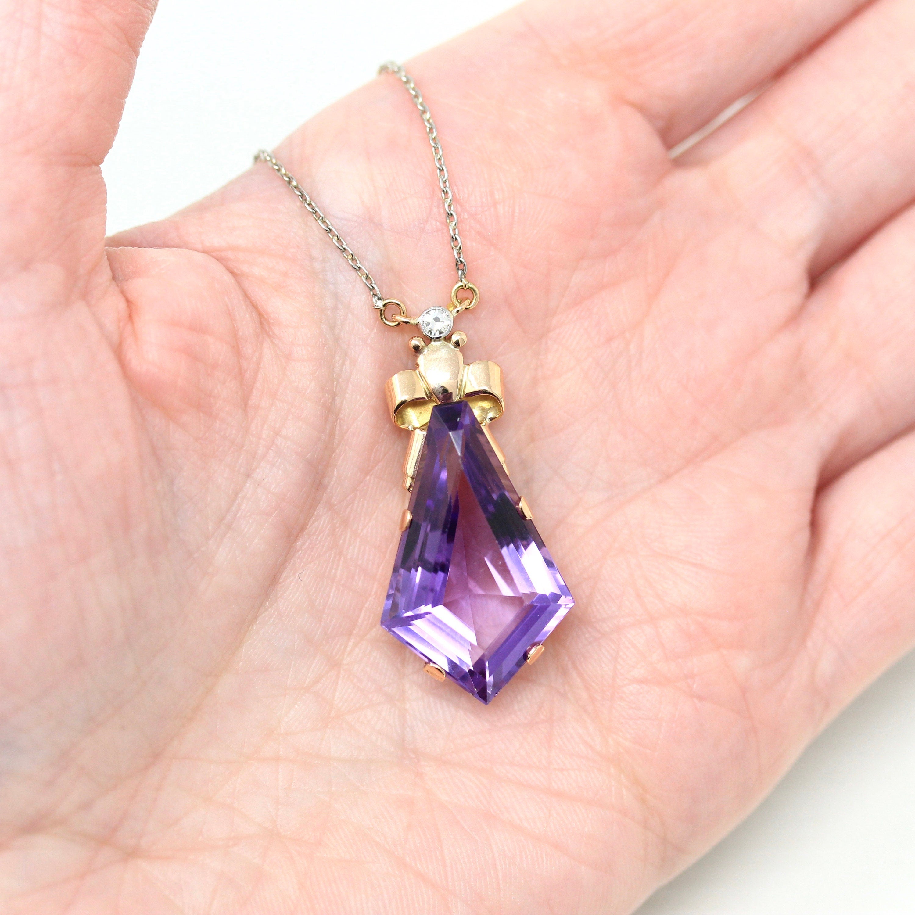 Simulated Amethyst Necklace - Edwardian 10k Yellow Gold Purple Glass Pendant - Art Nouveau Antique Circa 1910s Era Statement Fine Jewelry