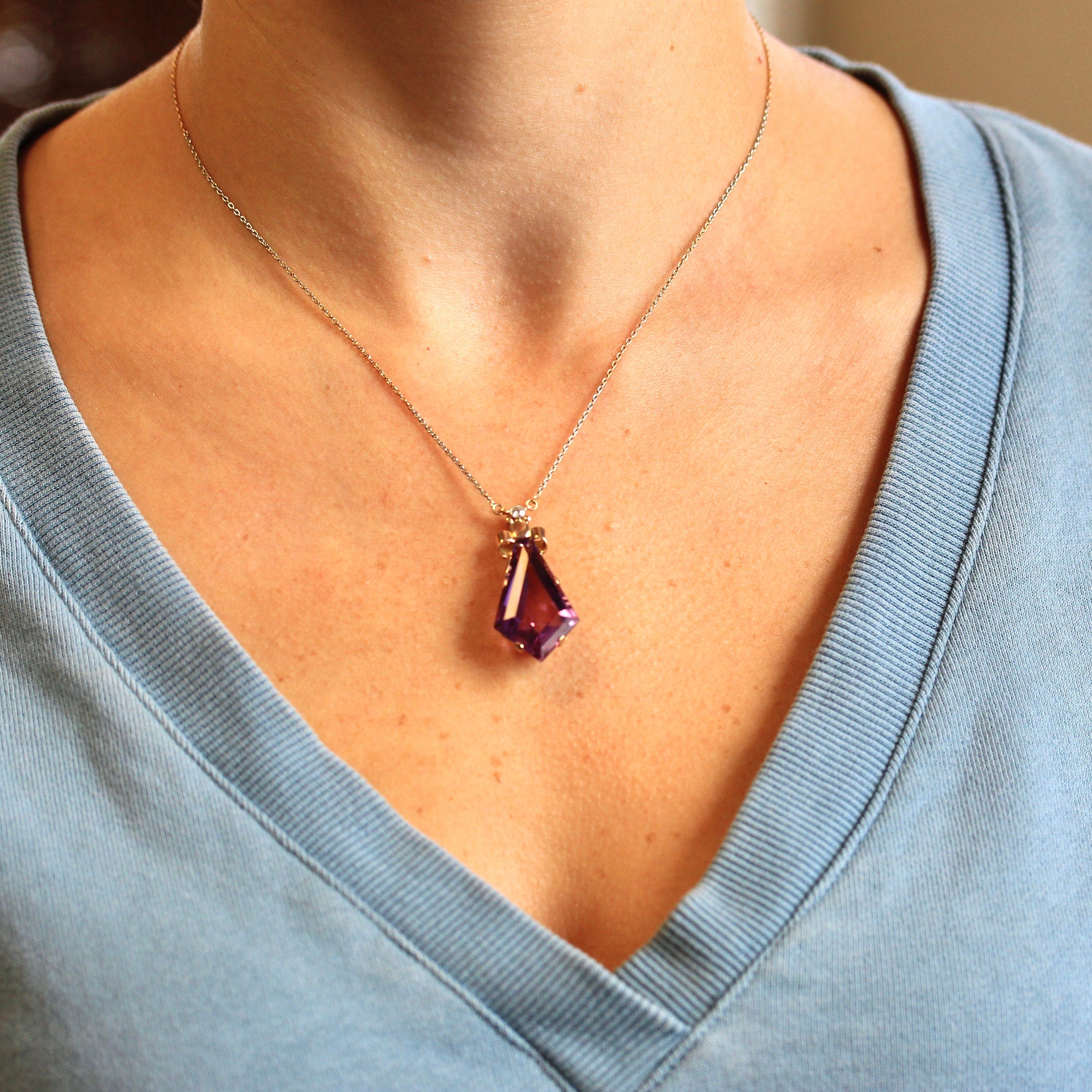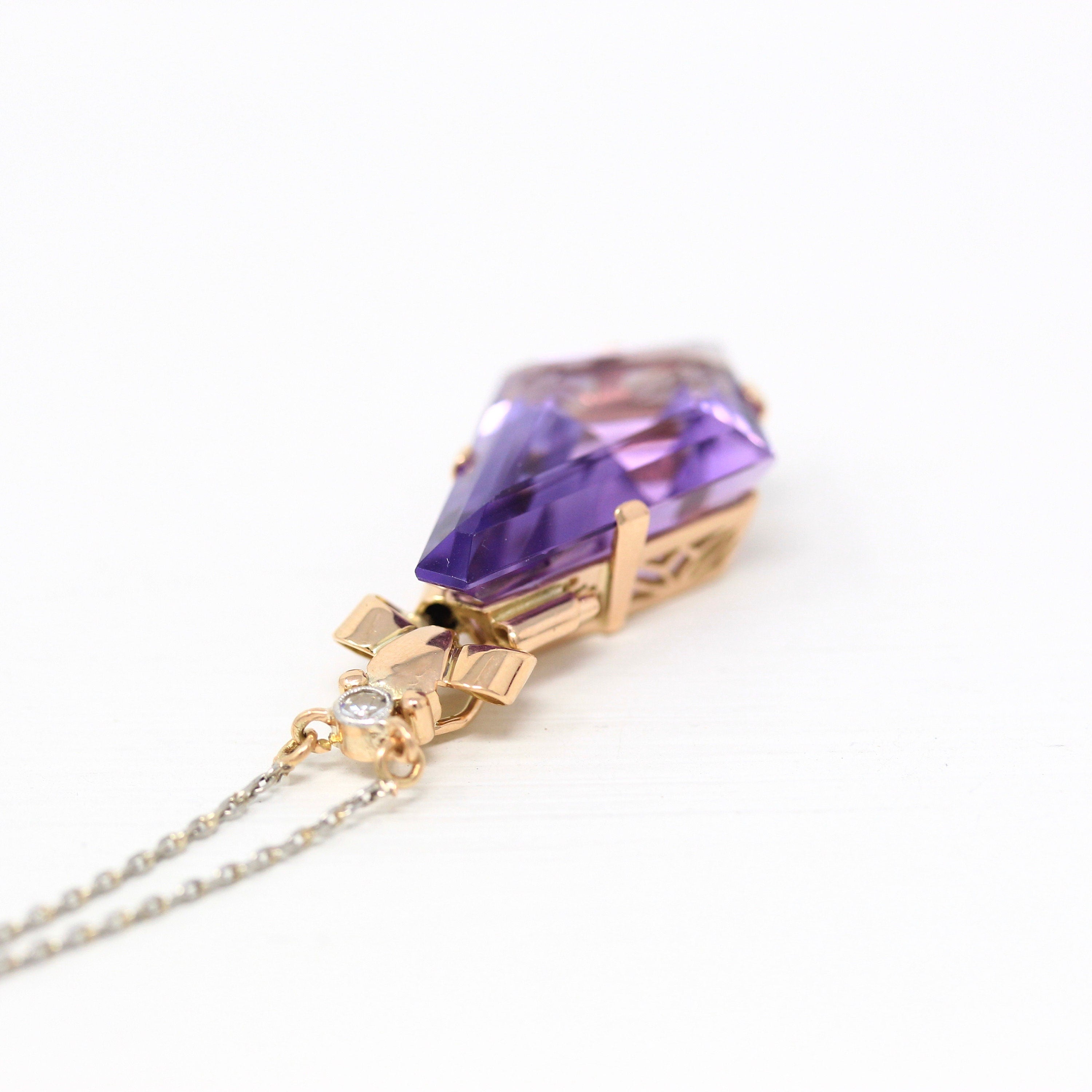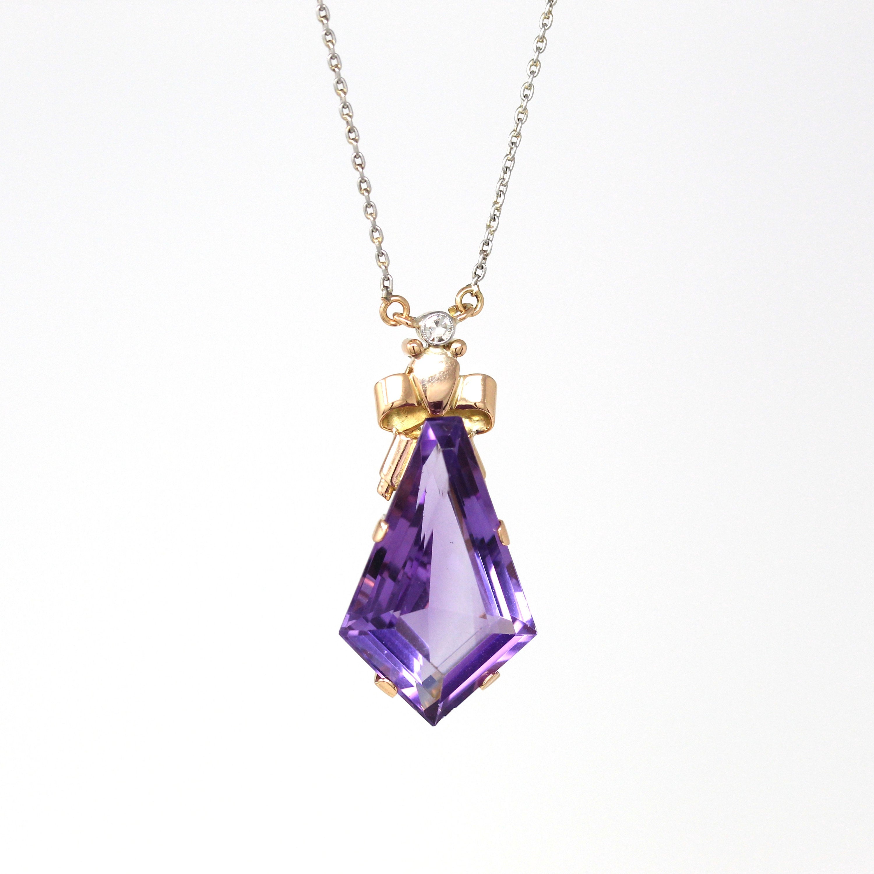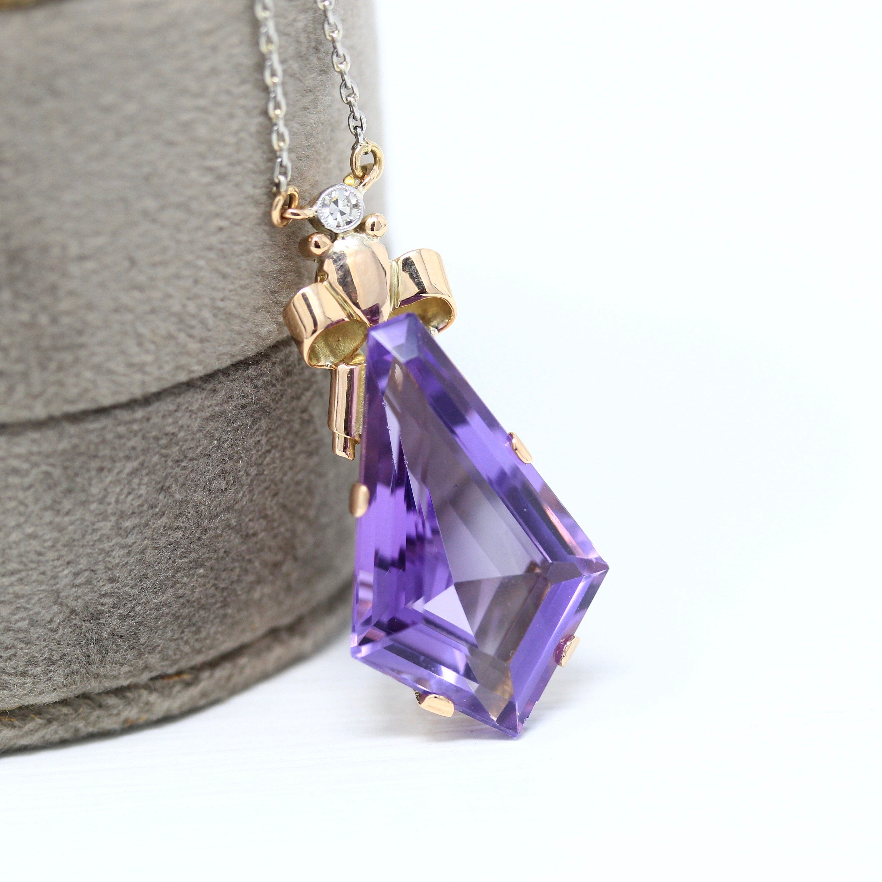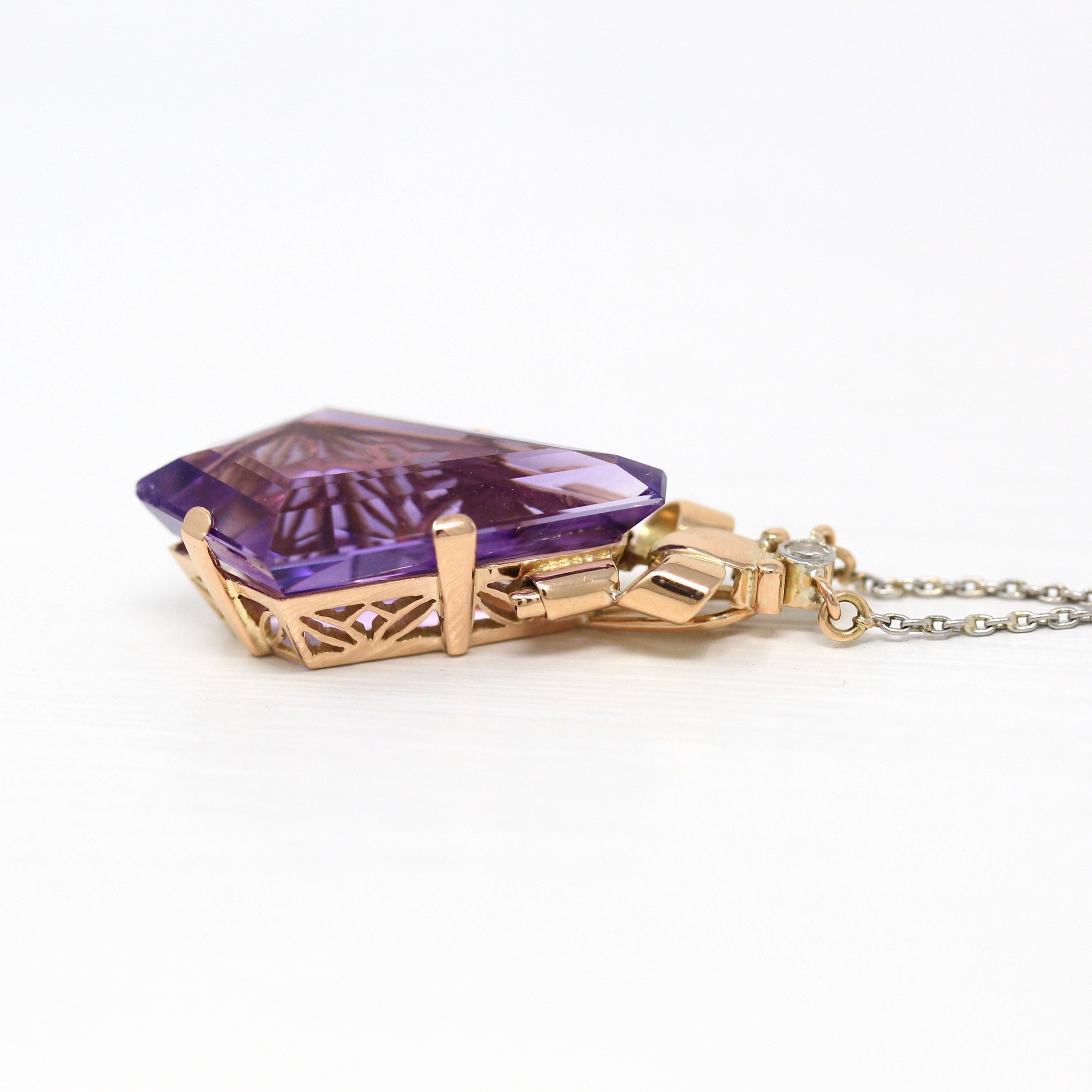 Simulated Amethyst Necklace - Edwardian 10k Yellow Gold Purple Glass Pendant - Art Nouveau Antique Circa 1910s Era Statement Fine Jewelry