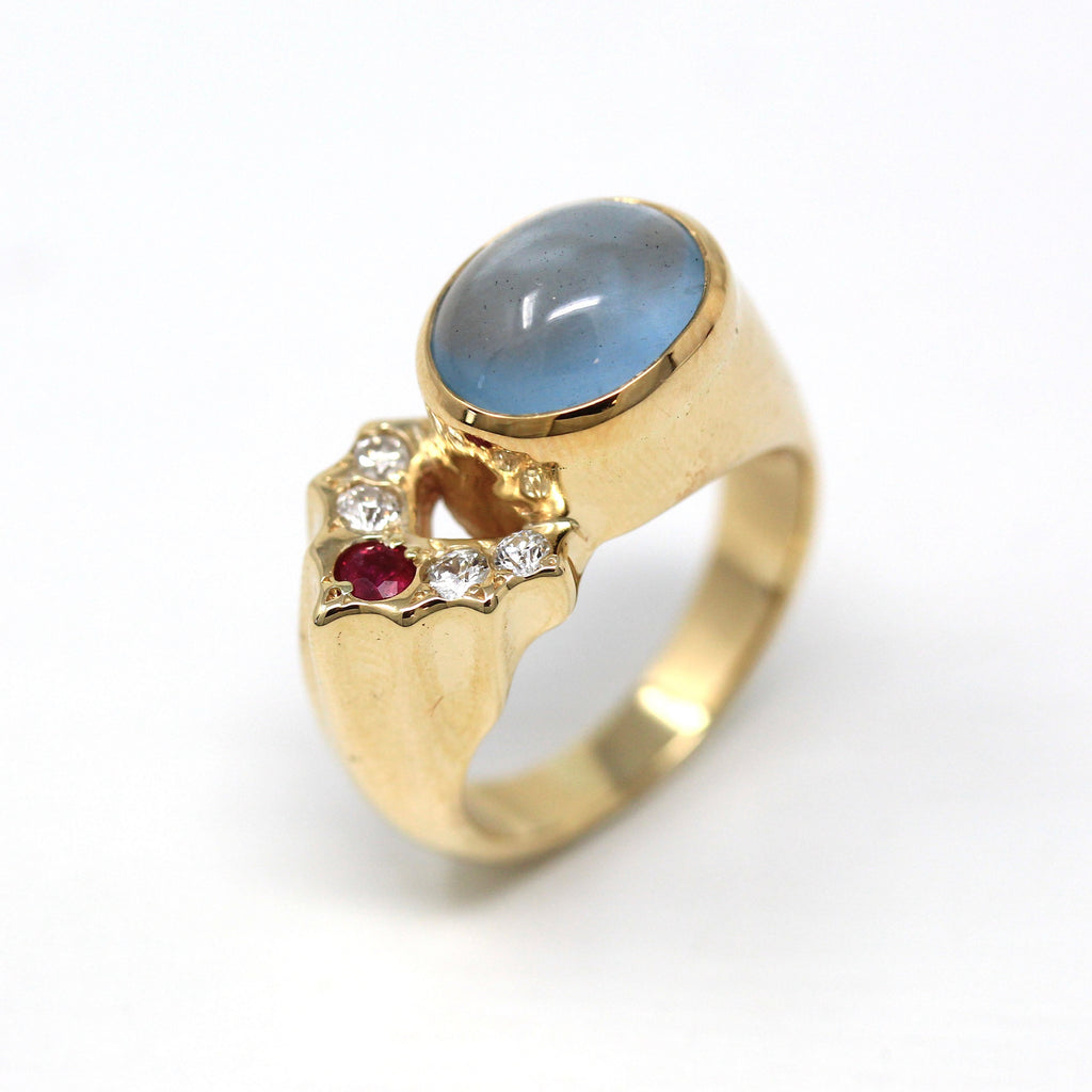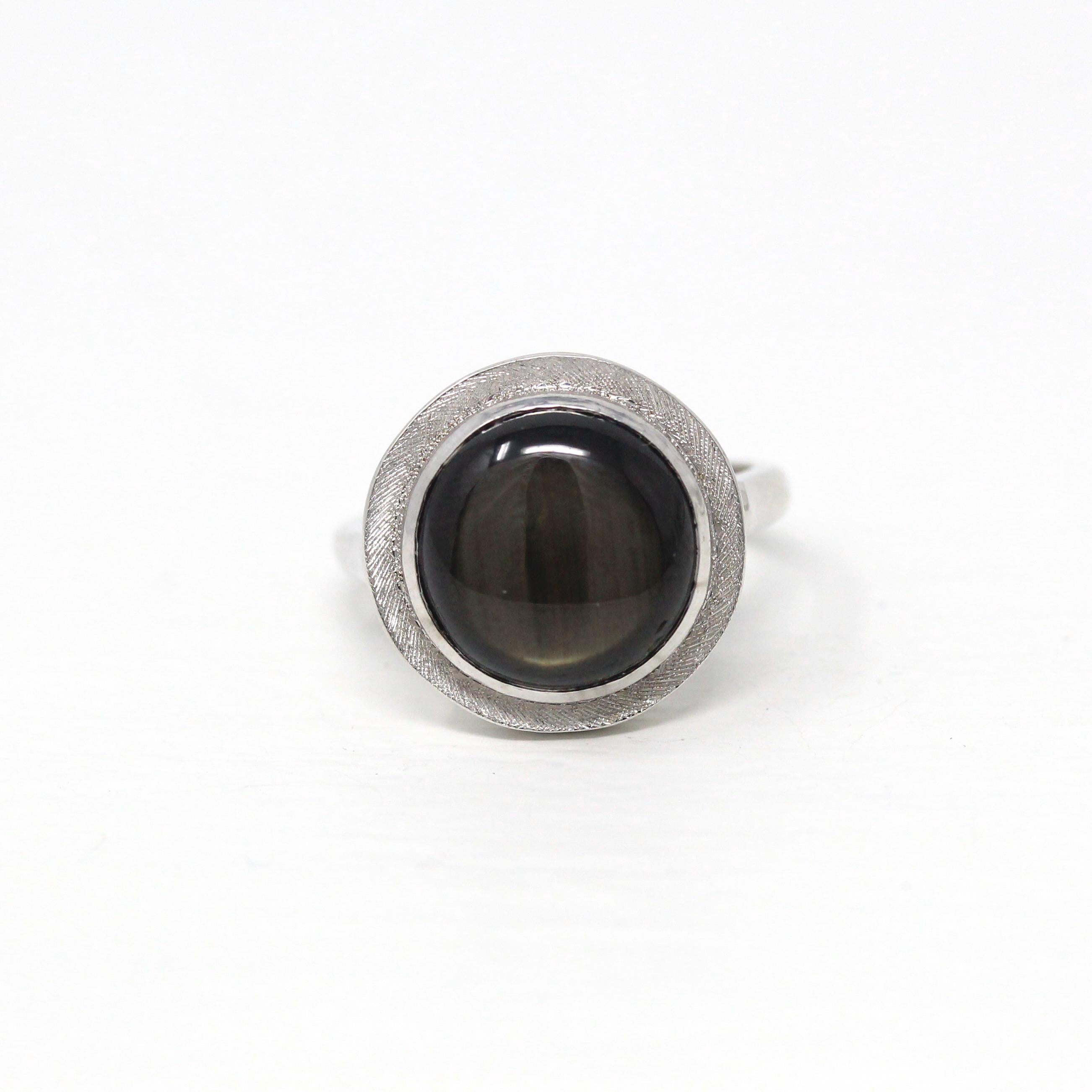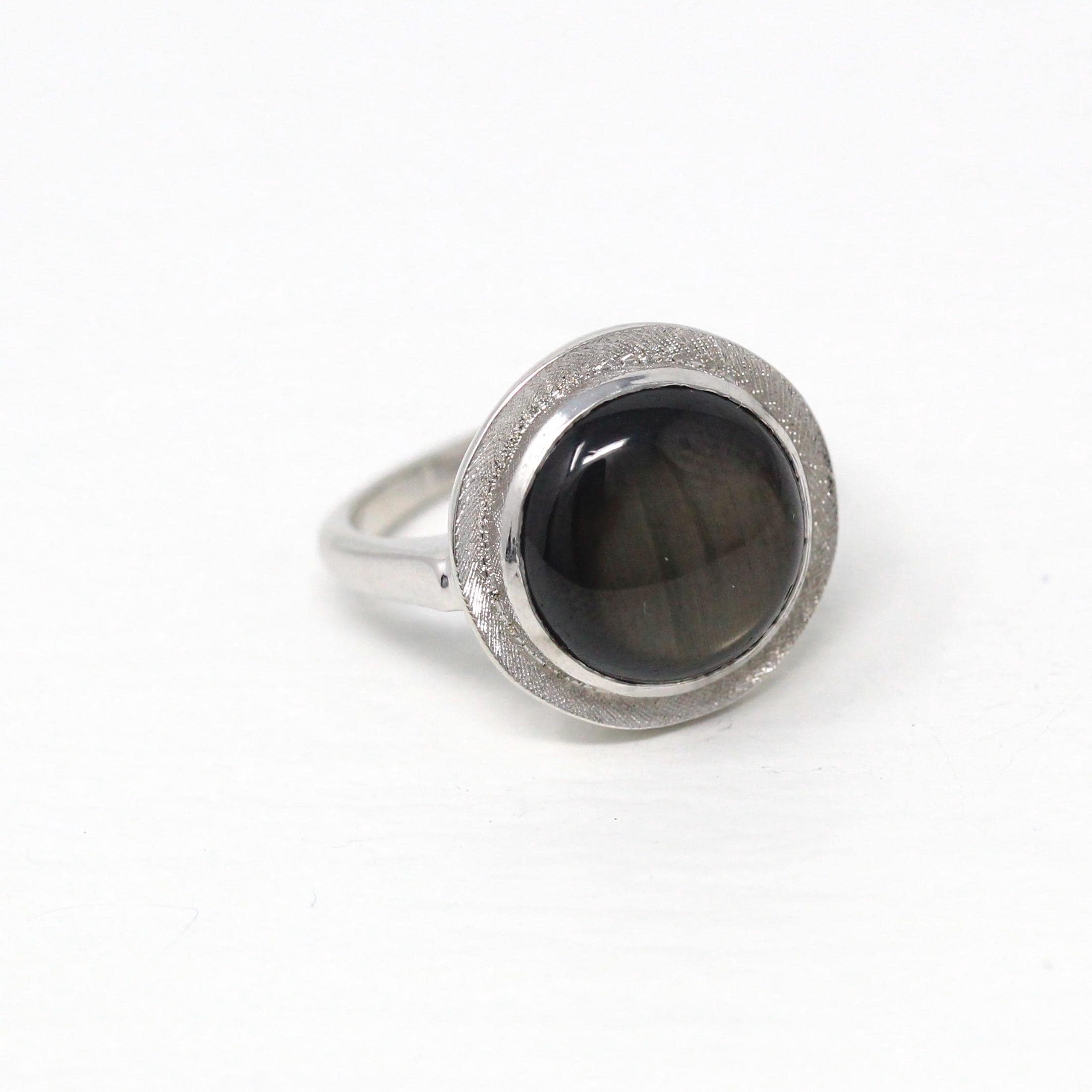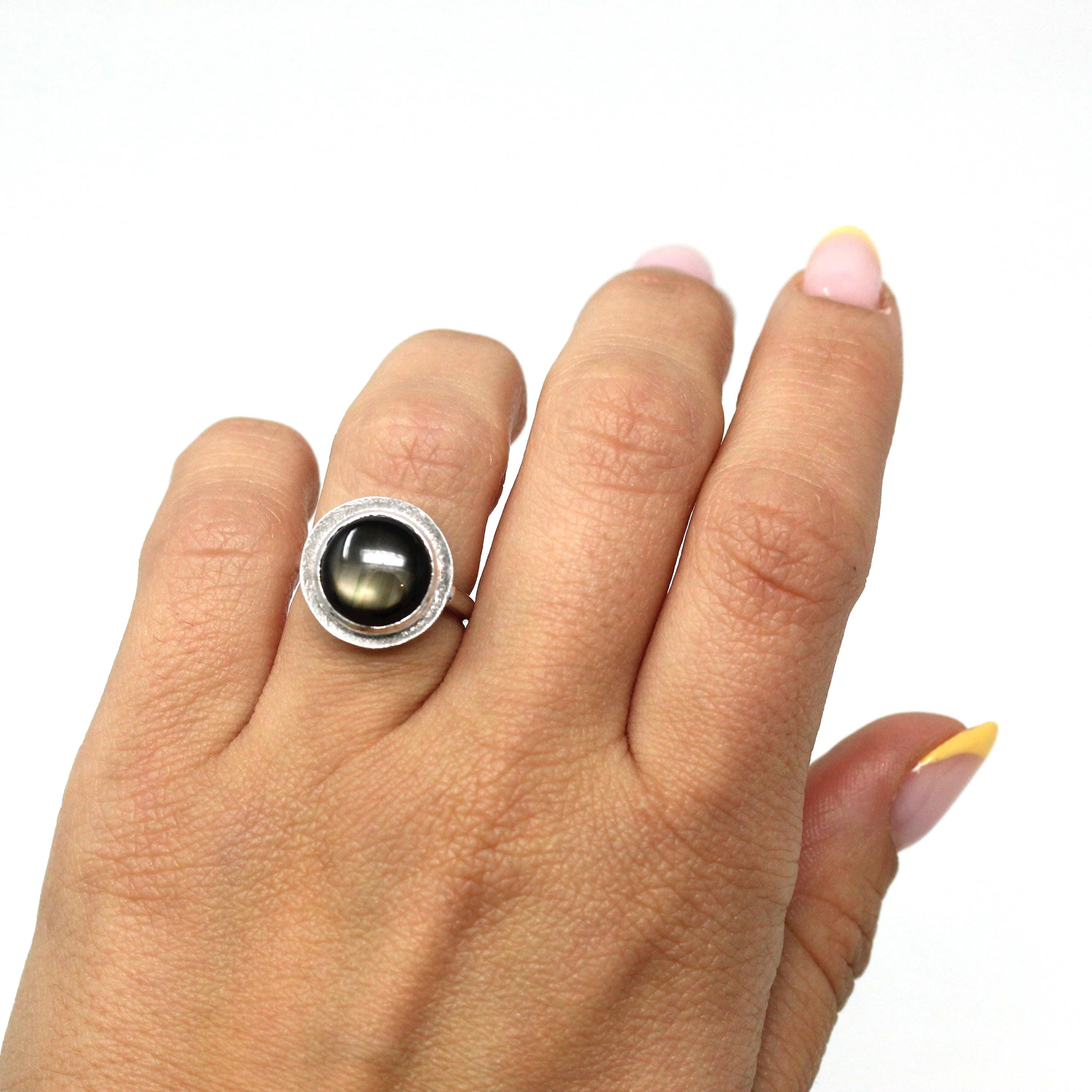 Created Star Sapphire Ring - Retro 10k Yellow Gold Cabochon .47 CT Gemstone - Vintage Circa 1970s Size 6 September Birthstone Fine Jewelry