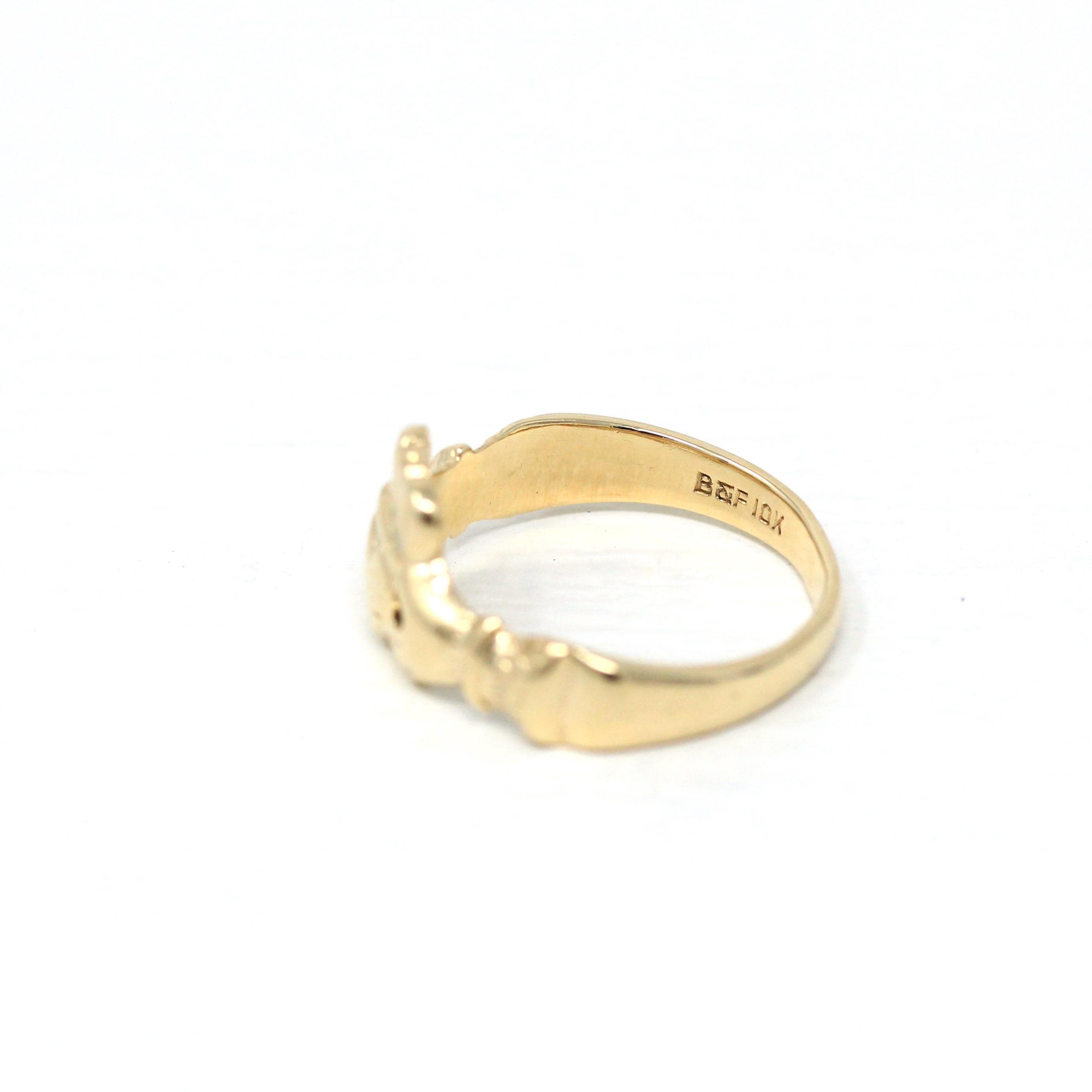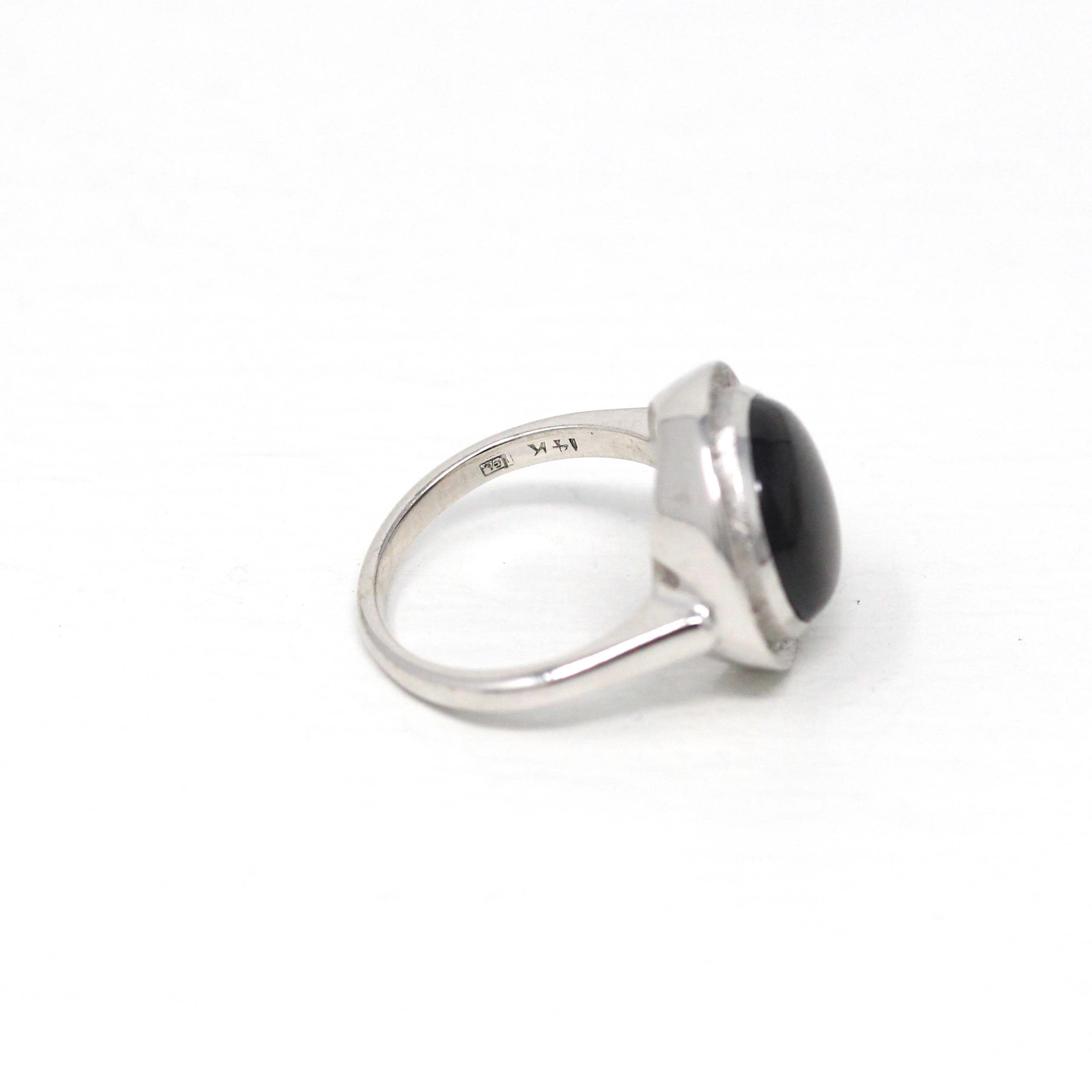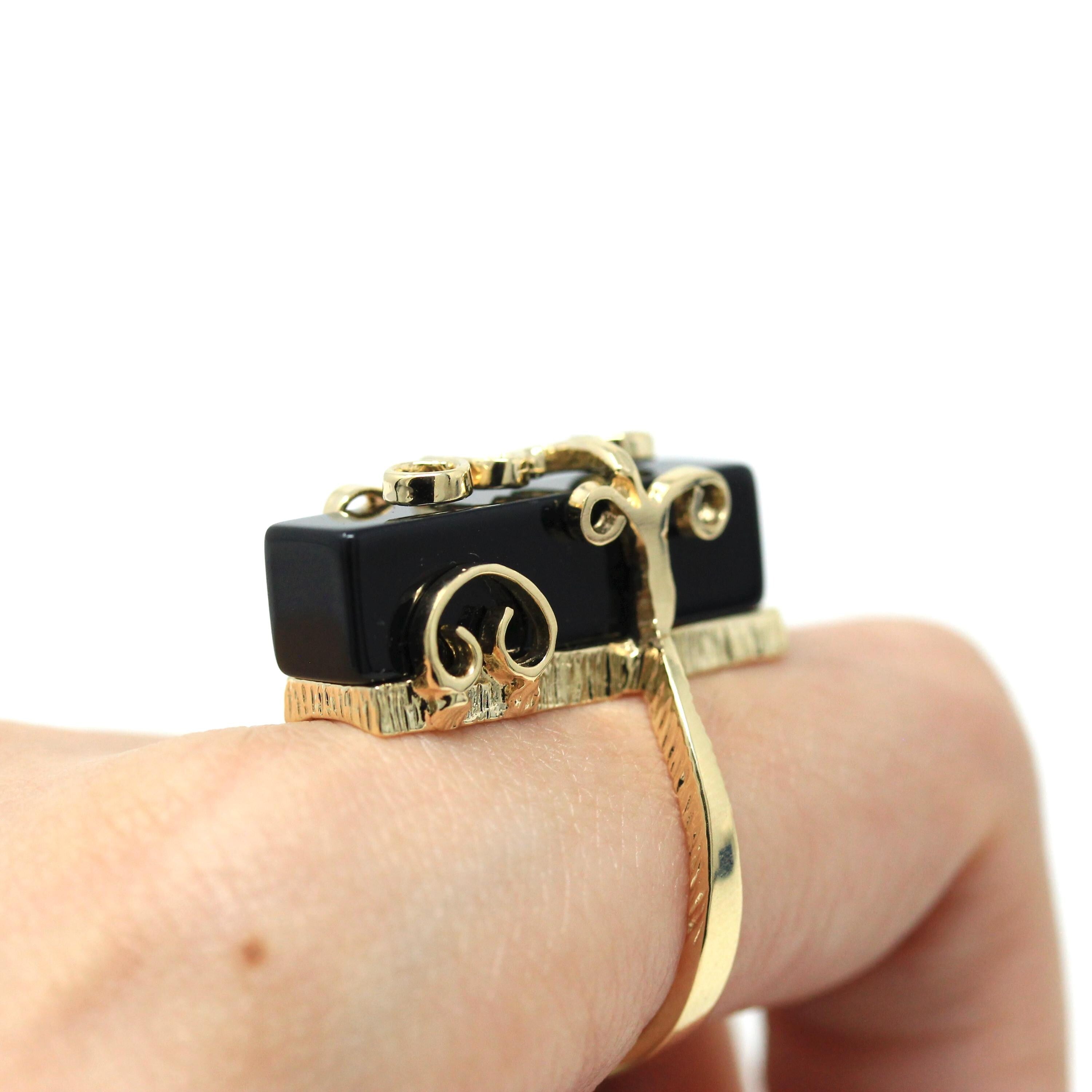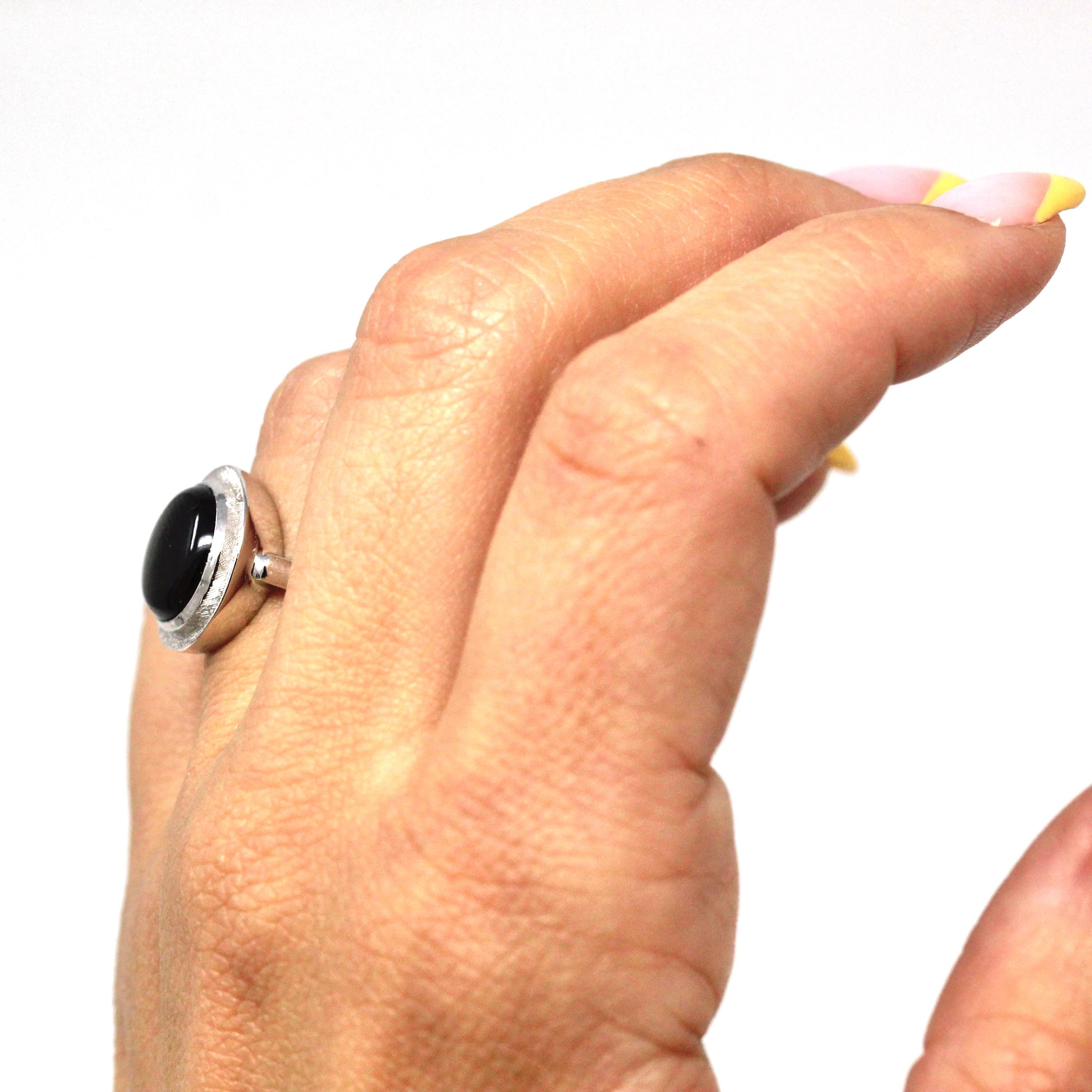 Vintage Onyx Ring - Retro 10k Yellow Gold Rectangular Cut Natural Black Chalcedony Gem - Circa 1940s Size 6 Statement Fine Diamond Jewelry