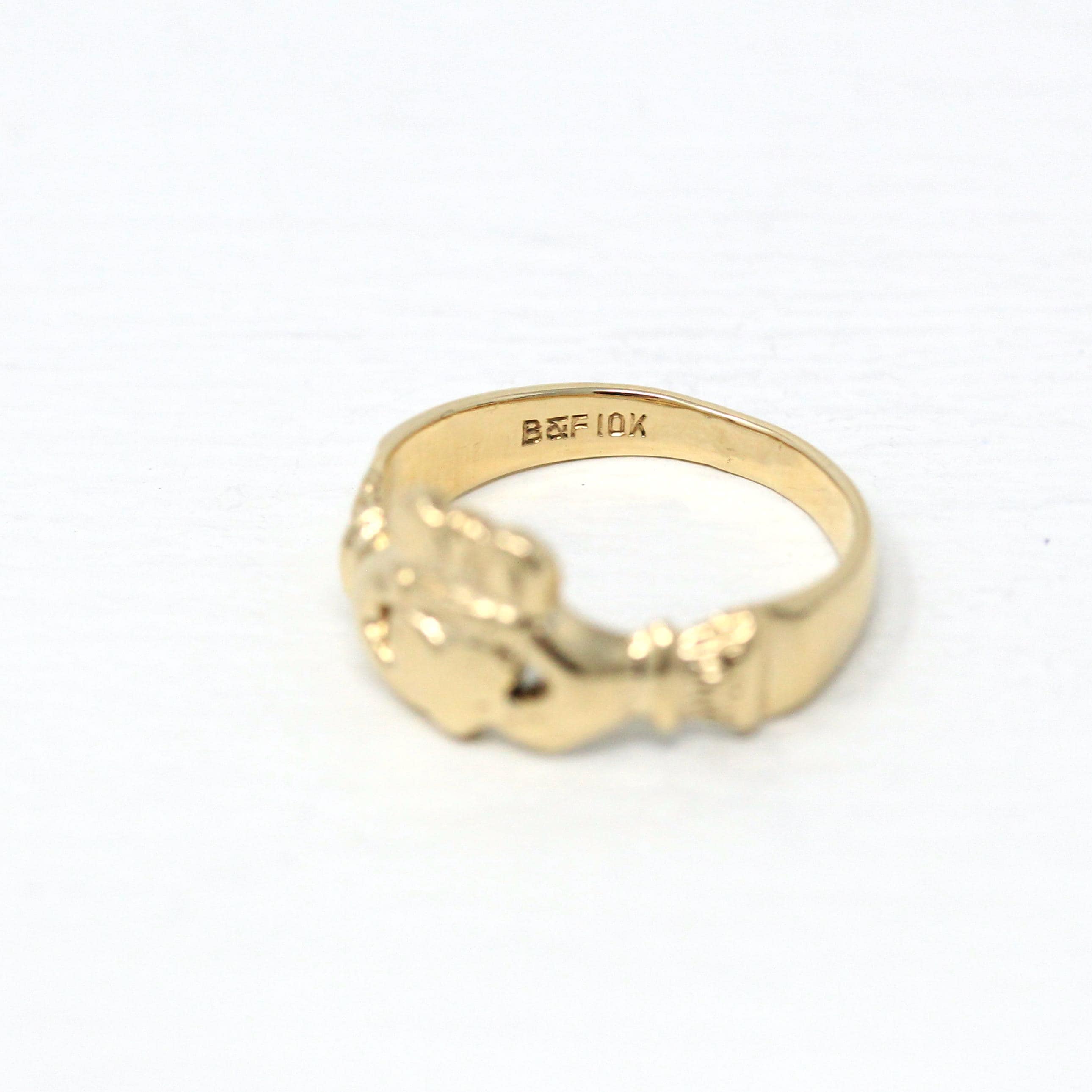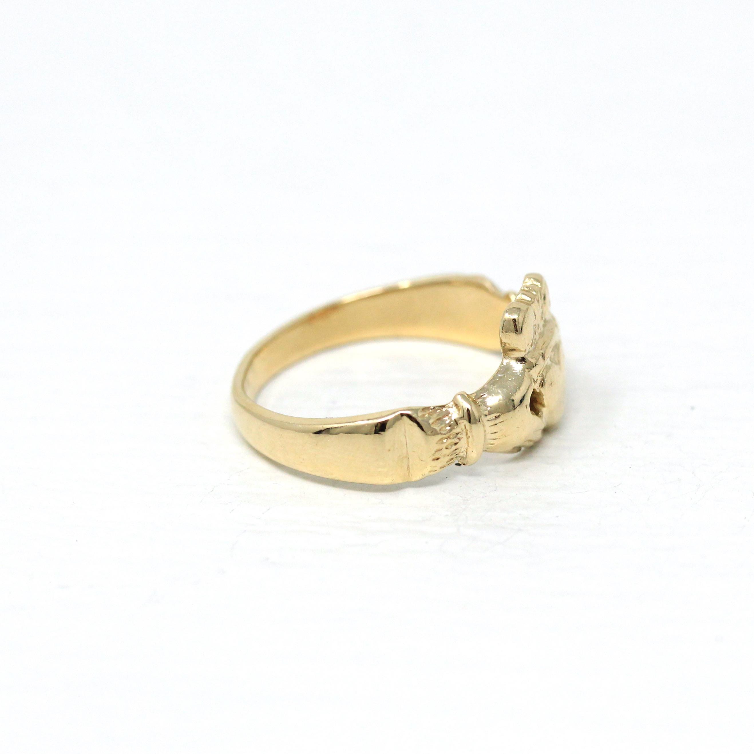Vintage Cameo Ring - Retro 14k Yellow Gold Orange White Genuine Carved Gem - Vintage Circa 1940s Size 4 3/4 Woman Portrait Floral Jewelry