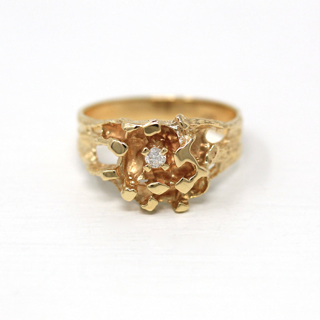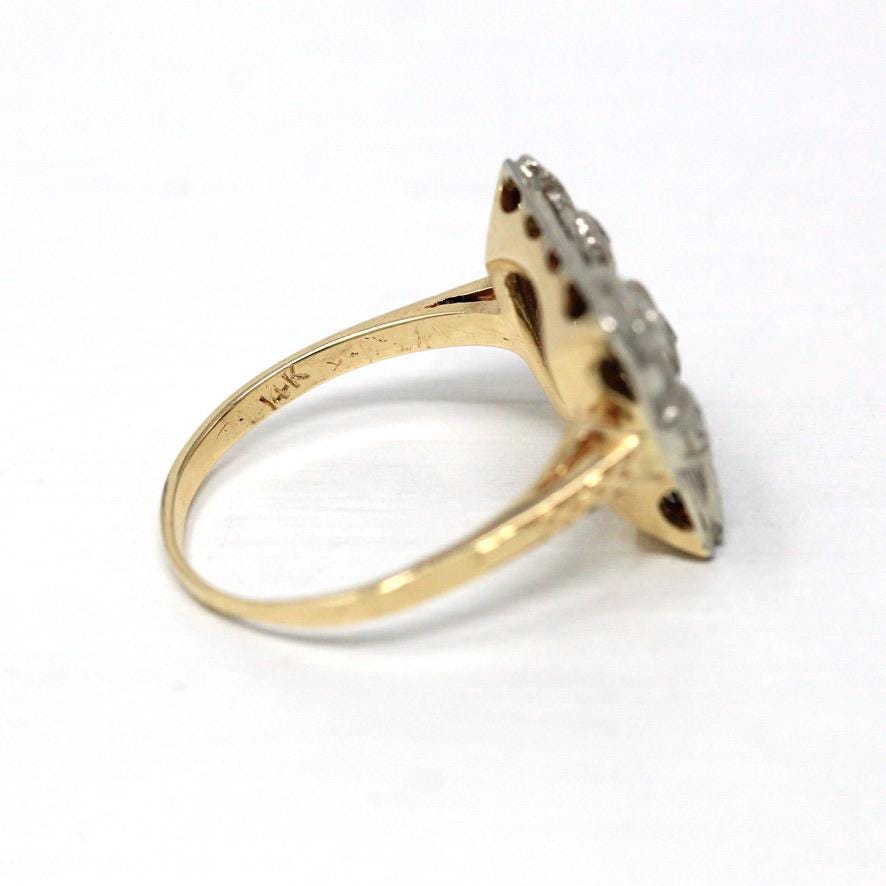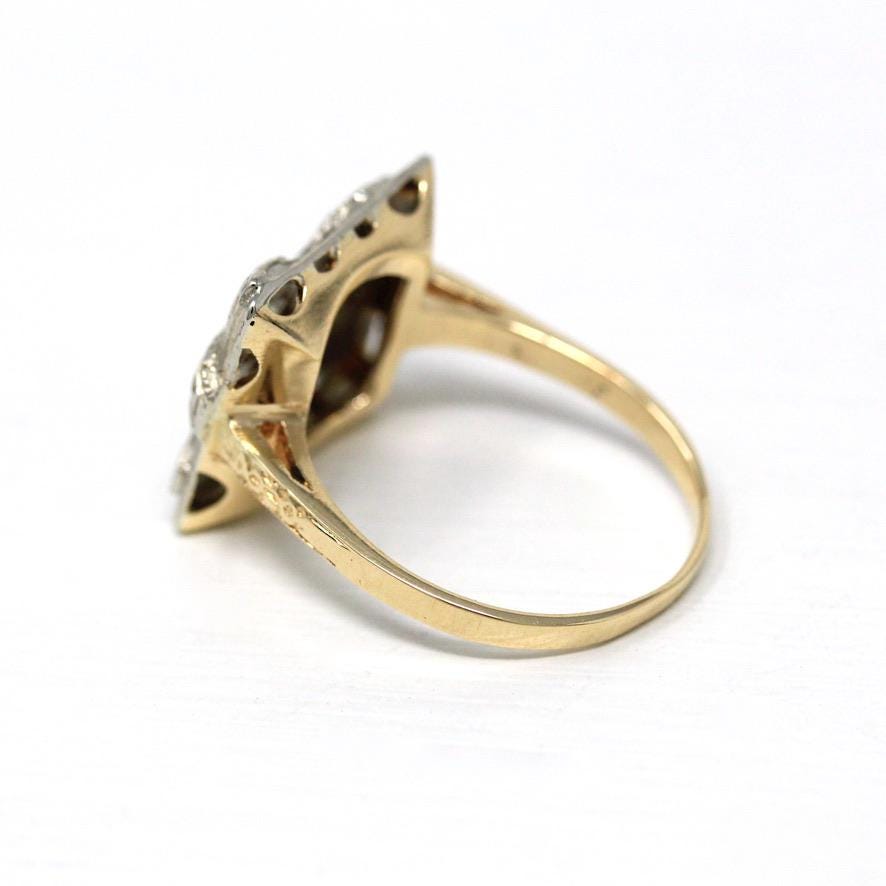 Star Diamond Ring - Retro Era English 18k Yellow Gold & Platinum Natural .03 CT Engagement Ring - Circa 1970s Size 5 3/4 Fine Bridal Jewelry