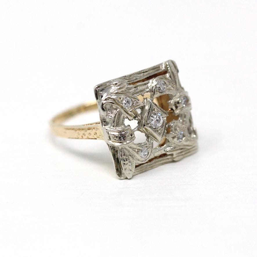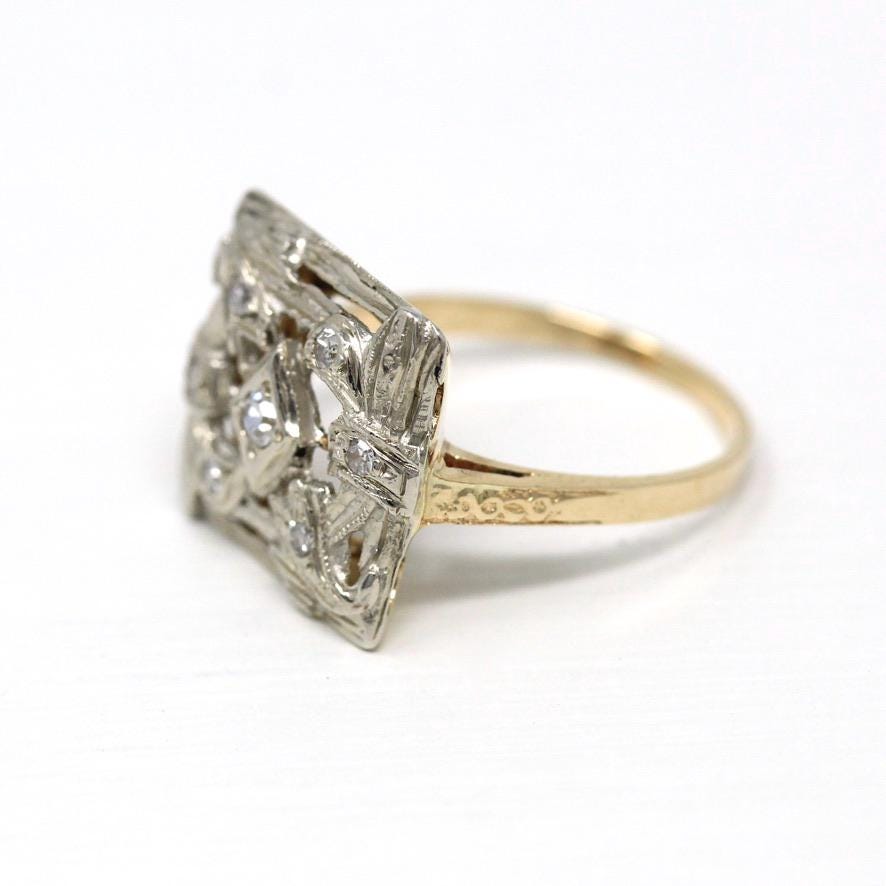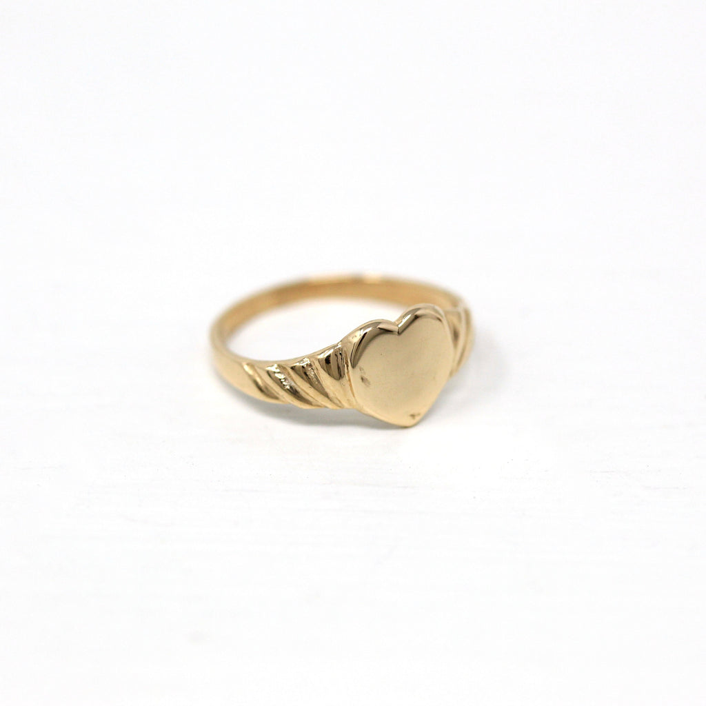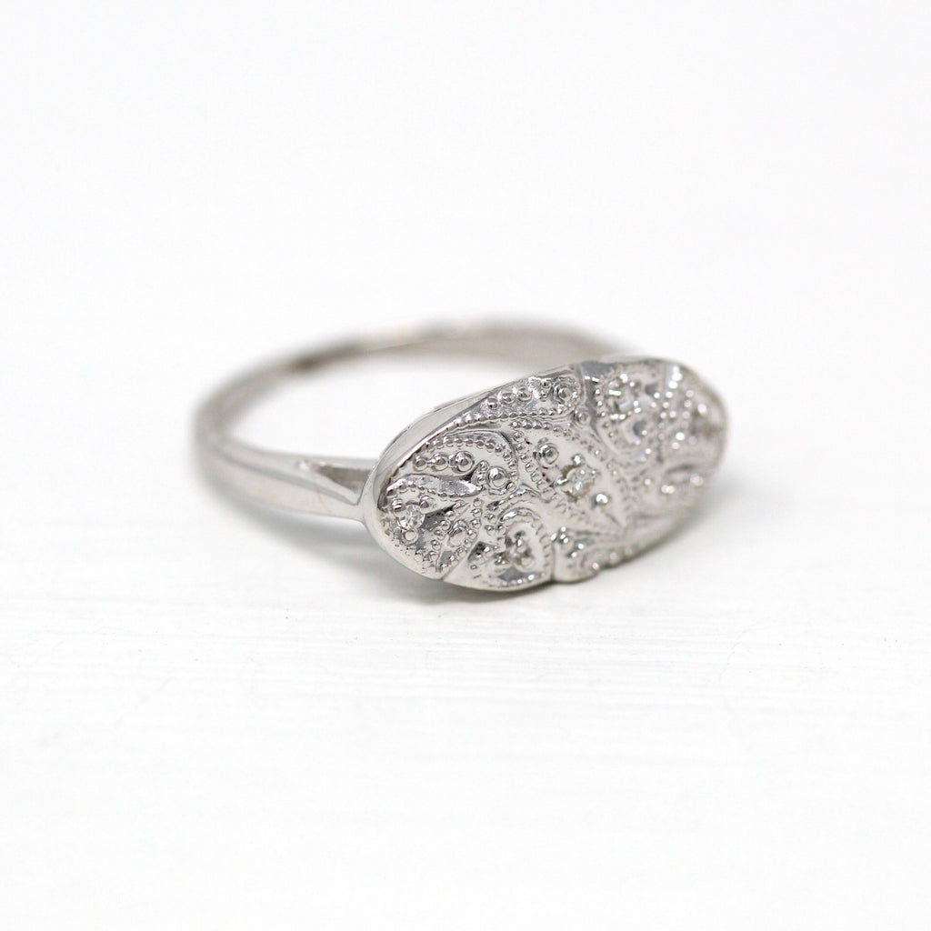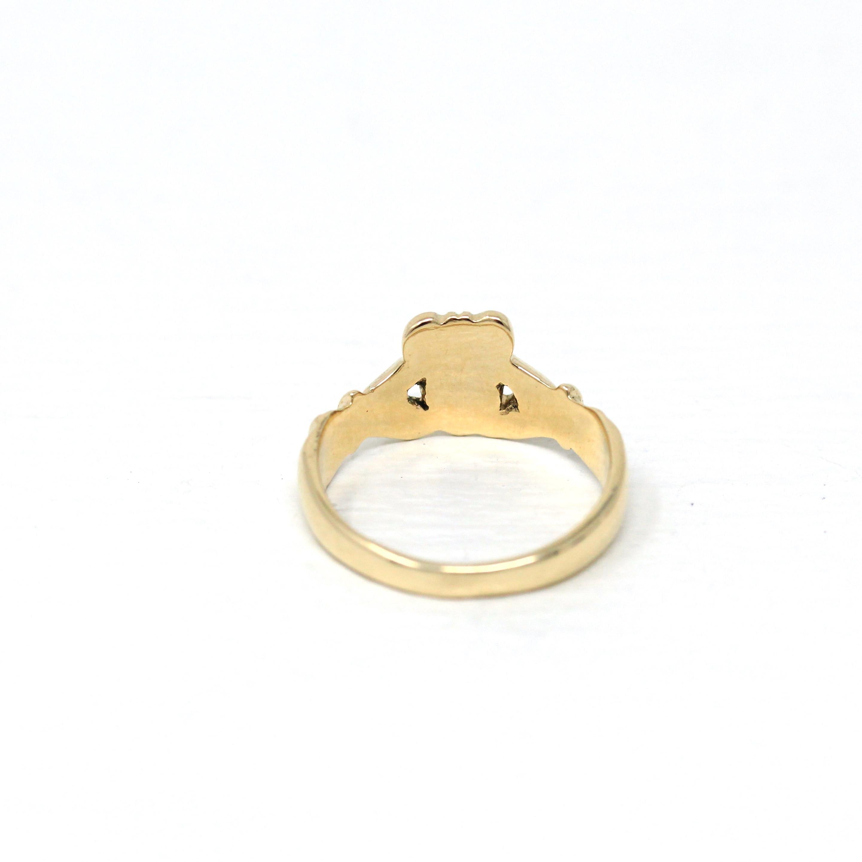 Letter "R" Ring - Retro 14k Yellow White Two Tone Gold Engraved Initial Signet - Vintage Circa 1940s Era Size 2 1/2 Pinky Midi Fine Jewelry