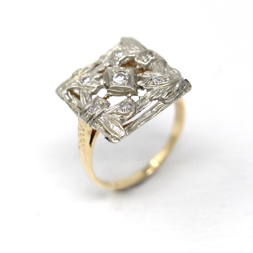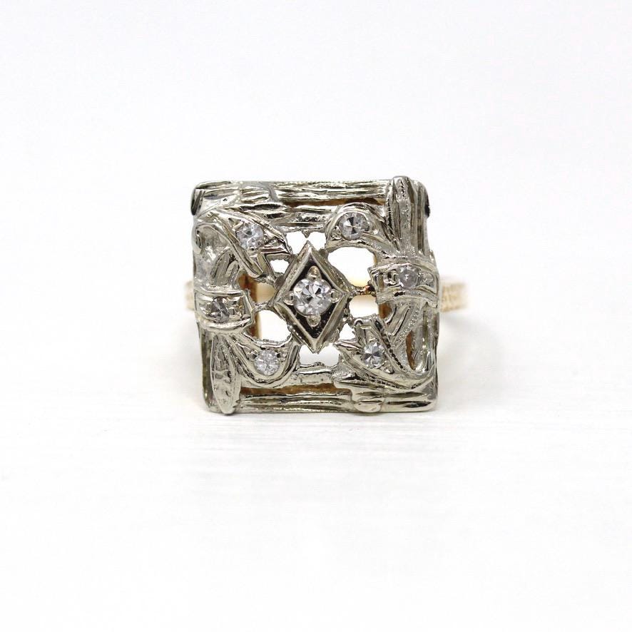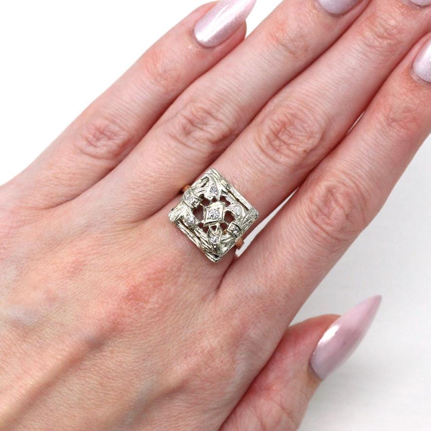 Vintage Engagement Ring - Platinum Retro Era 1.45 CTW Natural Diamonds - Circa 1950s Era Size 4.75 Fine Filigree Qualitative Report Jewelry