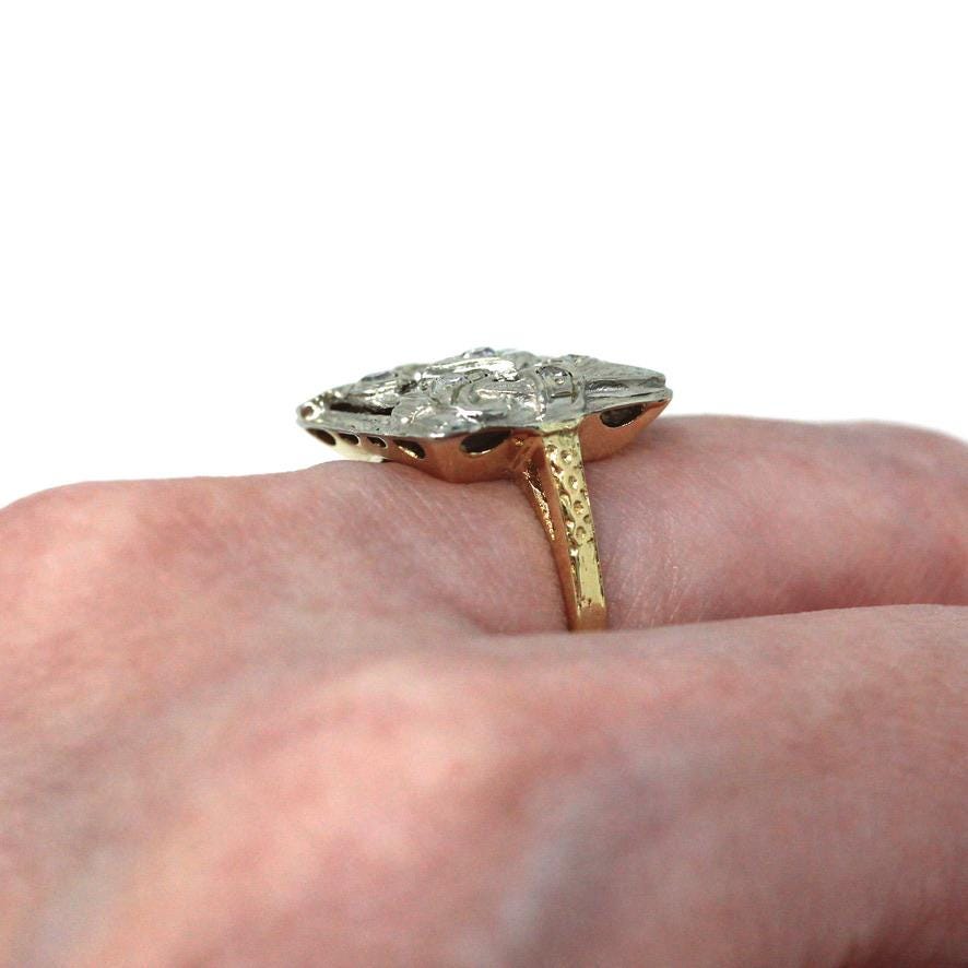 Diamond Flower Ring - Retro 18k Yellow Gold & Platinum Natural Gemstones - Vintage Circa 1940s Era Size 5 3/4 Cluster Fine Floral Jewelry