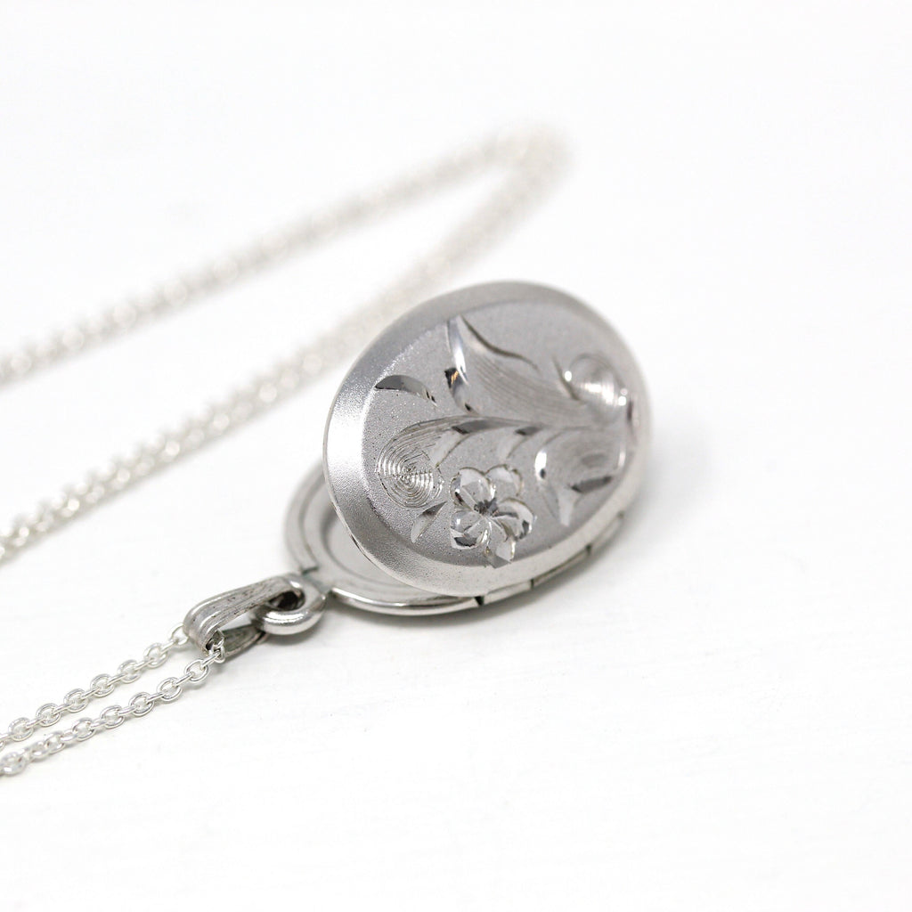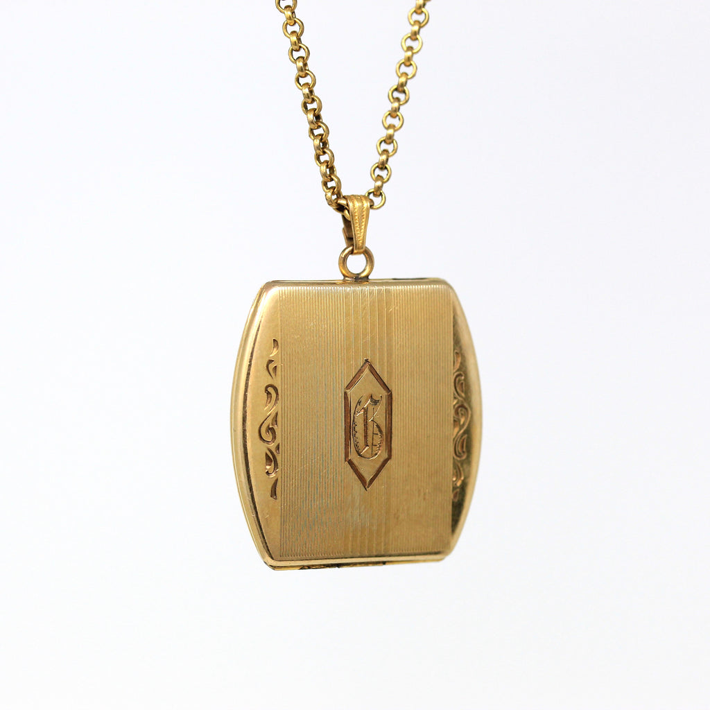 Vintage Heart Locket - Retro 9ct Yellow Gold Keepsake Pendant Necklace - Circa 1960s Era Engraved Designs Photograph Fine Flower Jewelry