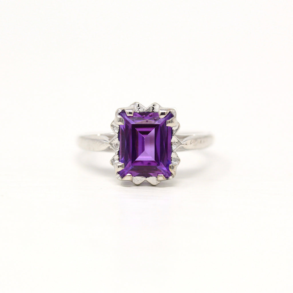 Mid Century Cluster Ring - Vintage 14k White Gold Natural Diamond Gemstone Band - Circa 1950s Size 7 3/4 Princess Anniversary Fine Jewelry