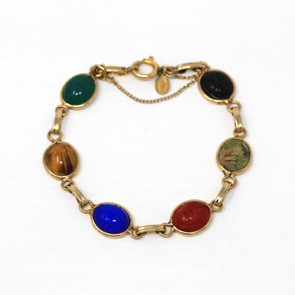Vintage Agate Ring - Retro Era 10k Yellow Gold Oval Cabochon Cut Banded Natural Gemstone - Circa 1940s Era Size 7 1/4 Statement Fine Jewelry