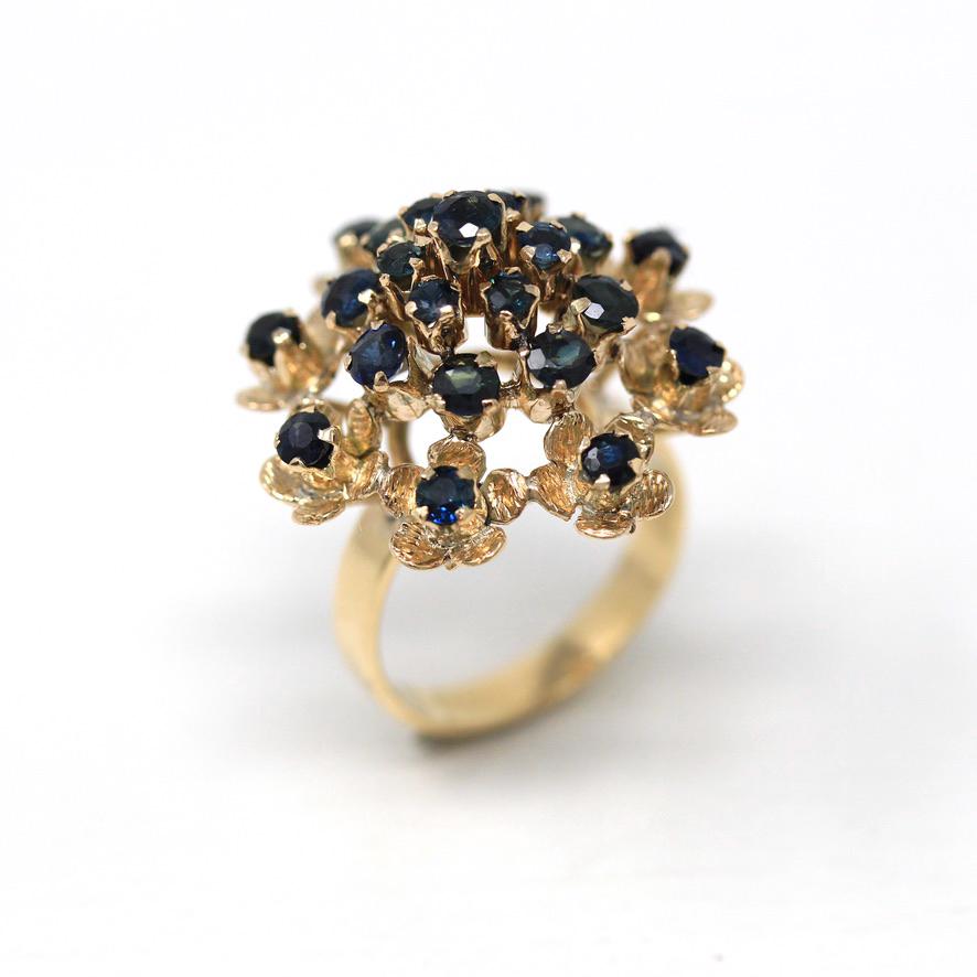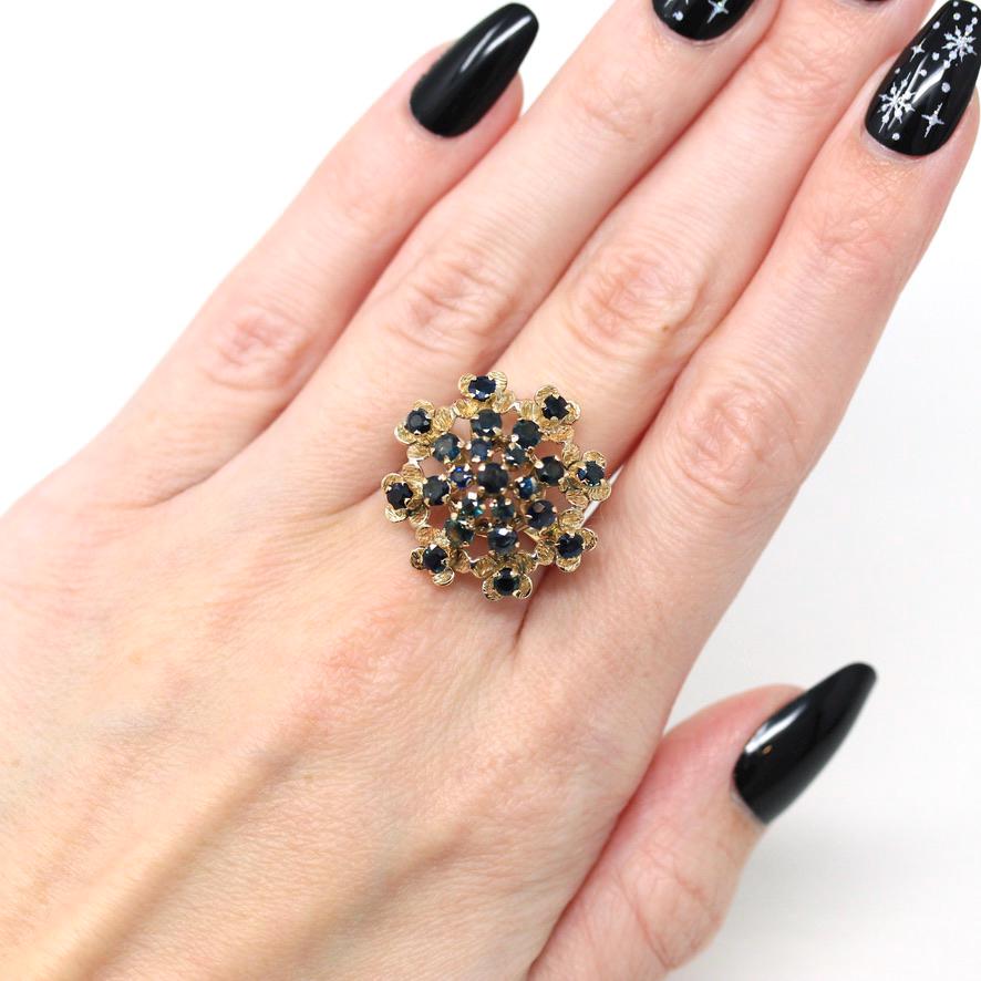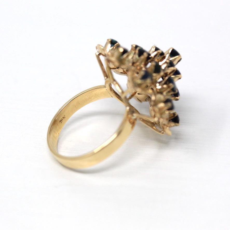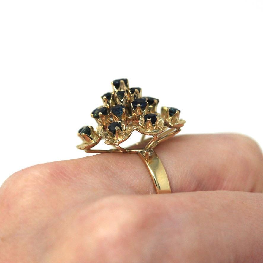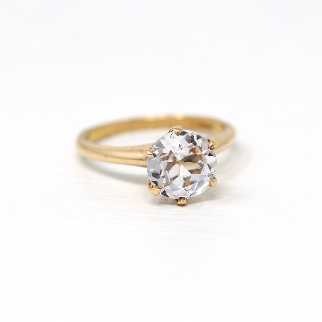 Created Spinel Ring - Retro 10k Yellow Gold Emerald Cut 4.41 CT Blue Stone - Vintage Circa 1940s Era Size 4 1/2 Statement Fine 40s Jewelry