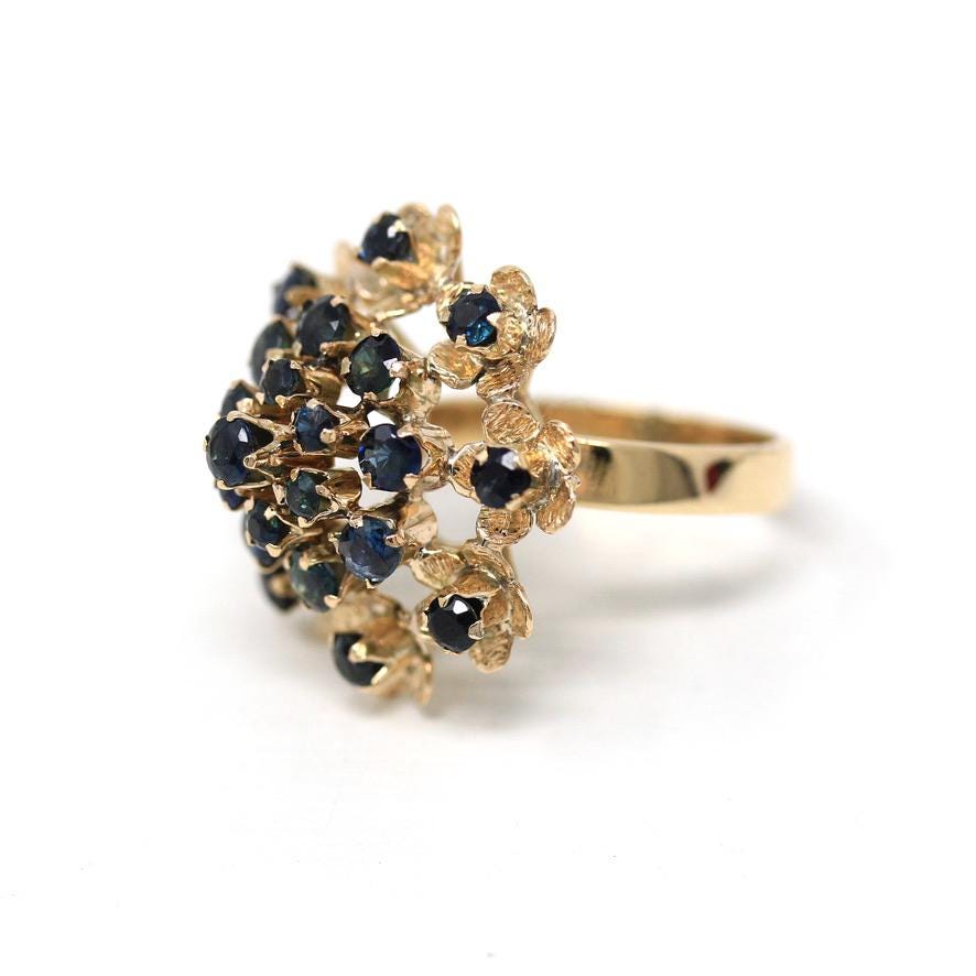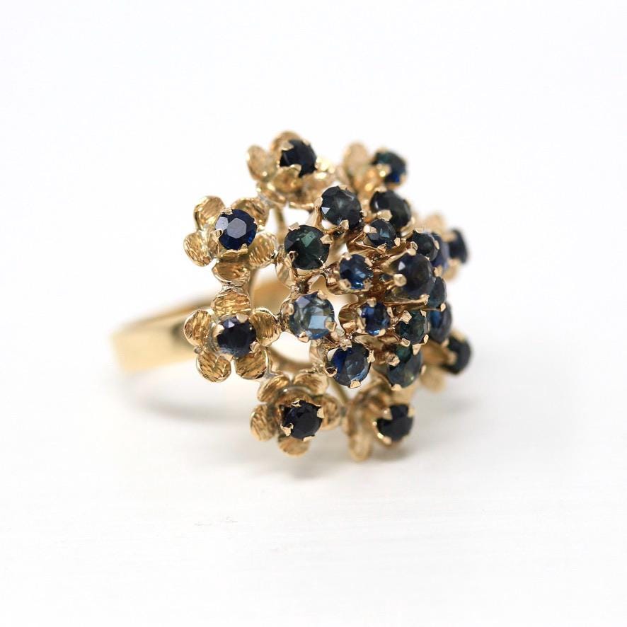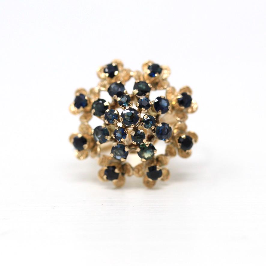 Created Sapphire Ring - Retro 10k Yellow Gold Oval Color Changing Gemstone - Circa 1940s Era Size 5 3/4 Solitaire Fine Statement Jewelry